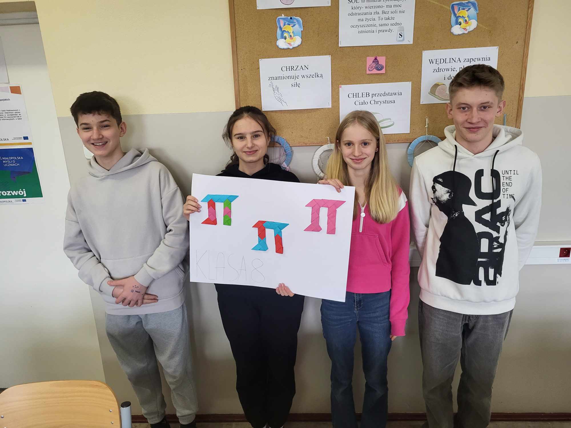 Również w naszej szkole obchodziliśmy Dzień Liczby Pi. Uczniowie klas IV i V wykonali plakaty, które udekorowały szkolny korytarz. Na lekcjach matematyki w klasach IV – VIII została przeprowadzona specjalna lekcja o liczbie Pi. Uczniowie obejrzeli krótki film dotyczący ciekawostek na temat tej liczby, wypełniali karty pracy, kodowali oraz tworzyli symbol liczby Pi techniką origami. Święto Pi, niewątpliwie, miało walory dydaktyczne, ale to także ciekawy sposób uatrakcyjnienia naszego szkolnego życia. Myślimy, że od tej pory Światowy Dzień Liczby Pi stanie się w naszej szkole tradycją. Organizatorem wydarzenia była pani Ewelina Cieśla.
