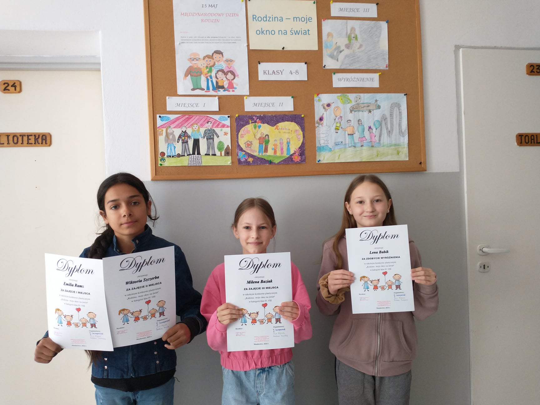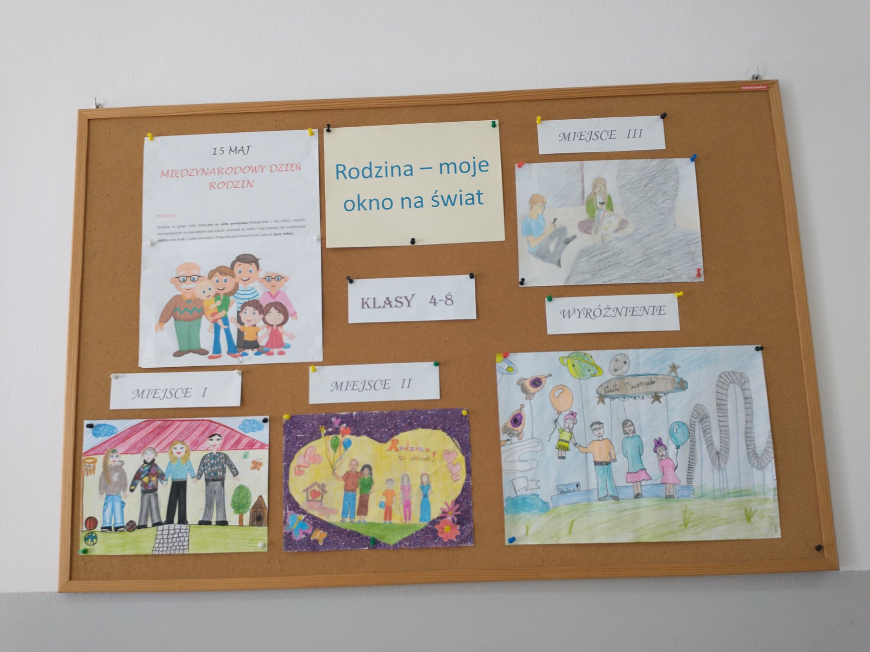 „Rodzina – tu zaczyna się życie, a miłość nigdy się nie kończy.”❤️ 15 maja jak co roku obchodzimy Międzynarodowy Dzień Rodzin. To wspaniała okazja do przypomnienia sobie, jak ważna jest rodzina i do podziękowania za obecność swoim najbliższym – dzieciom, rodzicom, rodzeństwu, dziadkom. To właśnie rodzina jest kręgiem, zarówno społecznym, jak i osobistym, to w niej wychowują się i dorastają dzieci, czerpiąc z niej wyznawane w dorosłym życiu wartości, wzorce zachowań i styl życia. Z tej okazji w naszej szkole został zorganizowany konkurs plastyczny pt:” Rodzina – moje okno na świat”. Celem konkursu było promowanie roli rodziny i jej wartości, kształtowanie i umacnianie więzów rodzinnych, rozwijanie umiejętności wyrażania własnych uczuć. Adresatem byli uczniowie klas I-III i IV-VIII. Wyniki konkursu przedstawiają się następująco: Kategoria klas I-III miejsce I – Wiktoria Miśtak- kl. III miejsce II – Nadia Szczerba- Bona- kl. I miejsce III- Jan Nykun- kl. II wyróżnienie- Piotr Gromala kl. II Kategoria klas IV- VIII miejsce I- Emilia Rams- kl. V miejsce II- Wiktoria Szczerba- kl. V miejsce III- Milena Baziak- kl. V wyróżnienie- Lena Babik- kl. IV Dziękujemy wszystkim uczestnikom konkursu, a autorom nagrodzonych prac serdecznie gratulujemy. Organizatorzy: Ewa Hybel, Joanna Szczepaniak, Barbara Sumecka