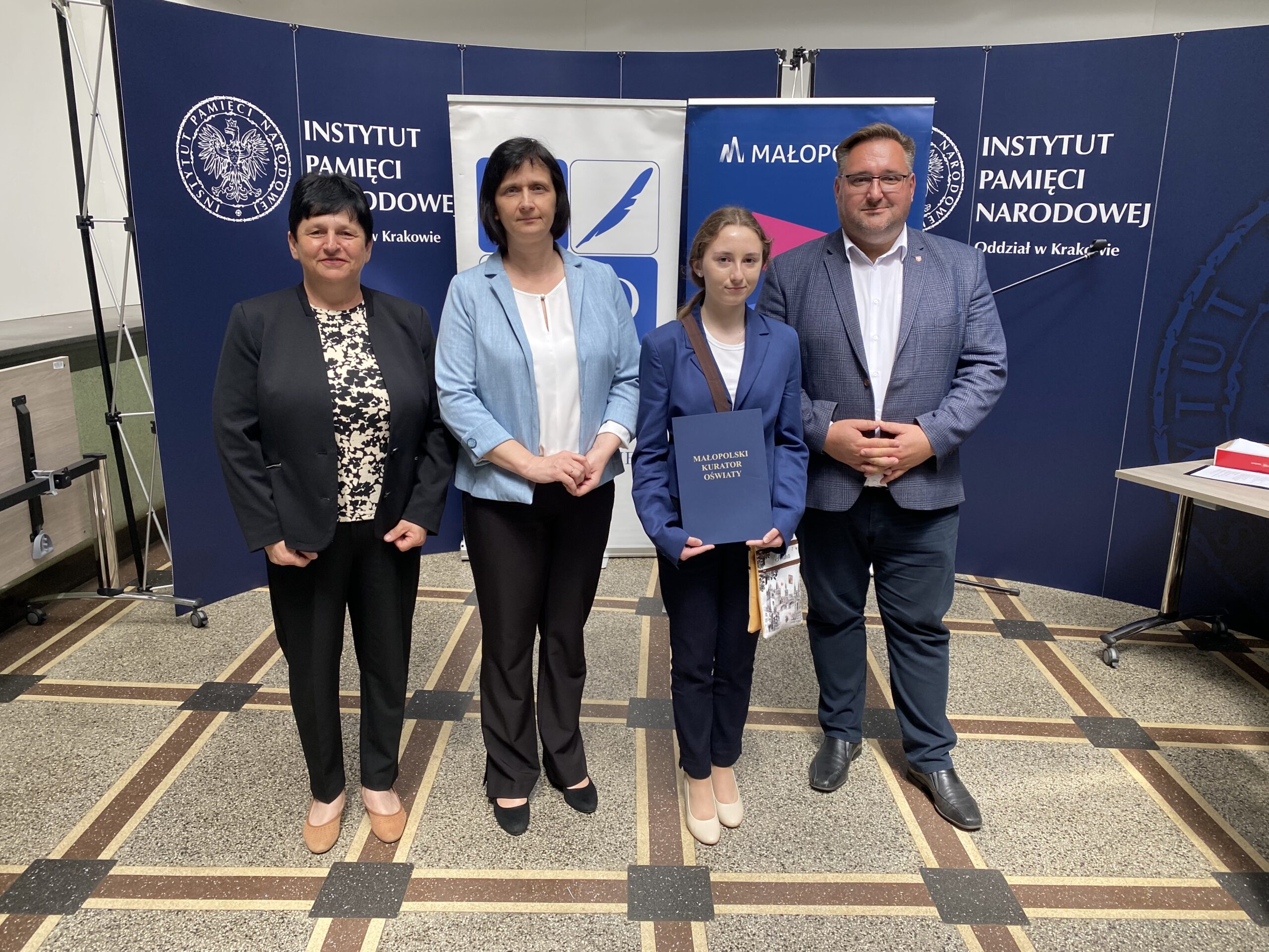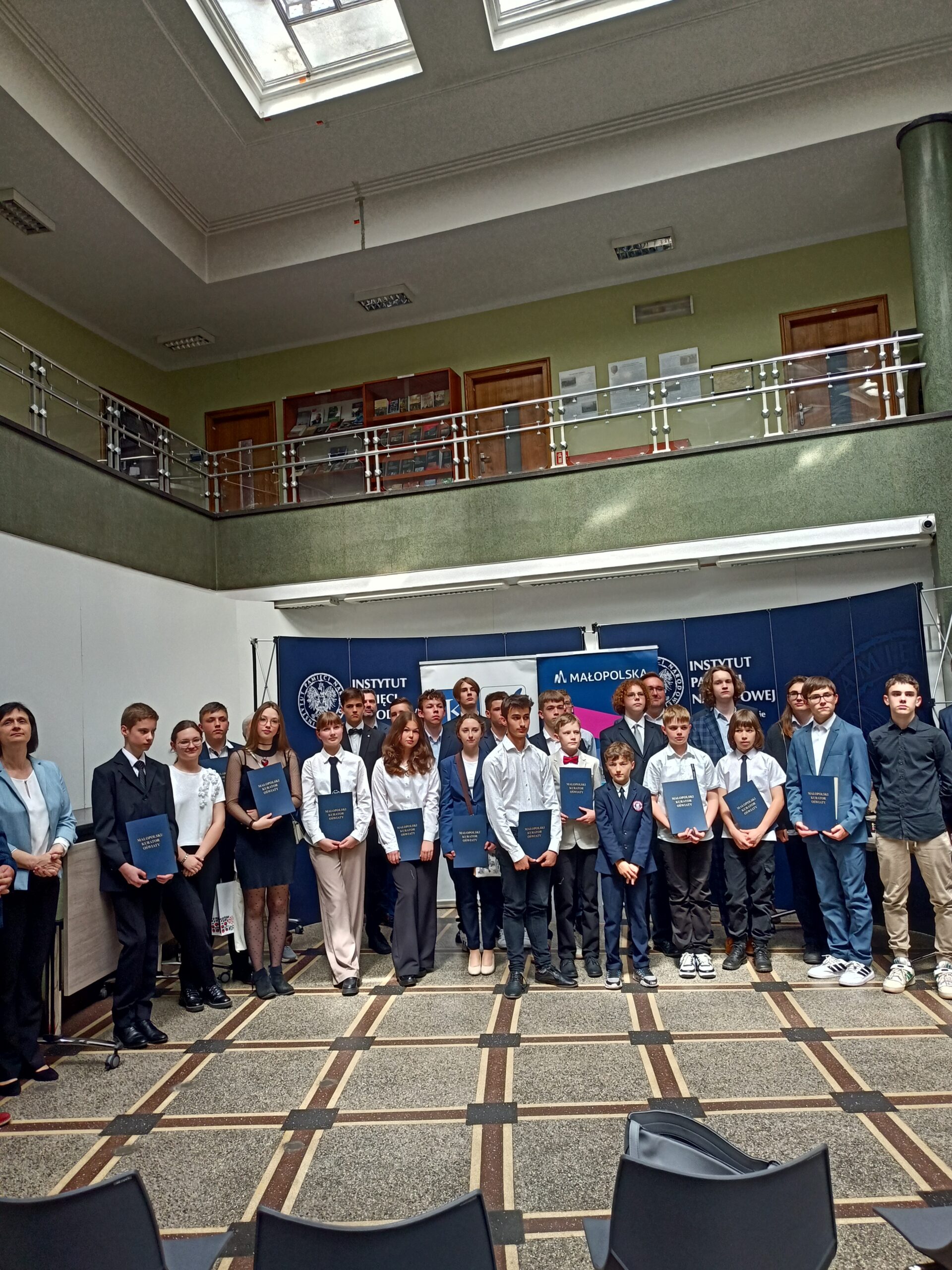 W ramach eliminacji szkolnych konkursu 20 listopada 2023 r. uczniowie szkół podstawowych pisali test sprawdzający wiedzę na zadany temat. Przystąpiły doń 484 osoby ze 140 szkół. Do etapu rejonowego zakwalifikowało się 168 uczestników konkursu. W dniu 24.05.2024 r. odbyła się gala finałowa z udziałem 26 laureatów, w tym naszej uczennicy, Agnieszki Kaliniecki. Zwycięzcom pogratulowali obecni na uroczystości przedstawiciele organizatorów: dr hab. Filip Musiał dyrektor Oddziału Instytutu Pamięci Narodowej w Krakowie, Edyta Stradomska – zastępca dyrektora Wydziału Nadzoru Pedagogicznego Kuratorium Oświaty w Krakowie, Dariusz Gawęda – zastępca dyrektora Departamentu Kultury i Dziedzictwa Narodowego Województwa Małopolskiego oraz prof. Tomasz Gąsowski reprezentujący Fundację Centrum Dokumentacji Czynu Niepodległościowego, który wygłosił również okolicznościowy wykład.