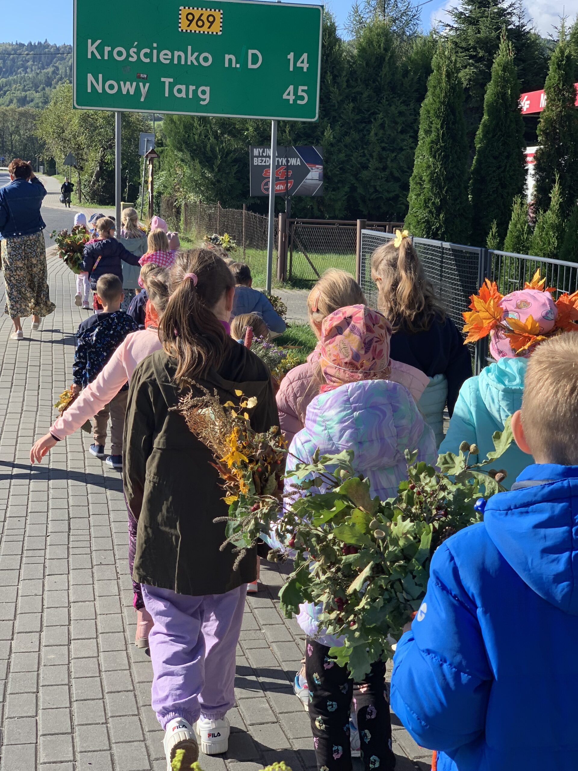 30 września klasa 2 i zerówka wybrały się na jesienny spacer po najbliższej okolicy. Wspólnie powitaliśmy jesień ciesząc się pięknymi darami tej pory roku.