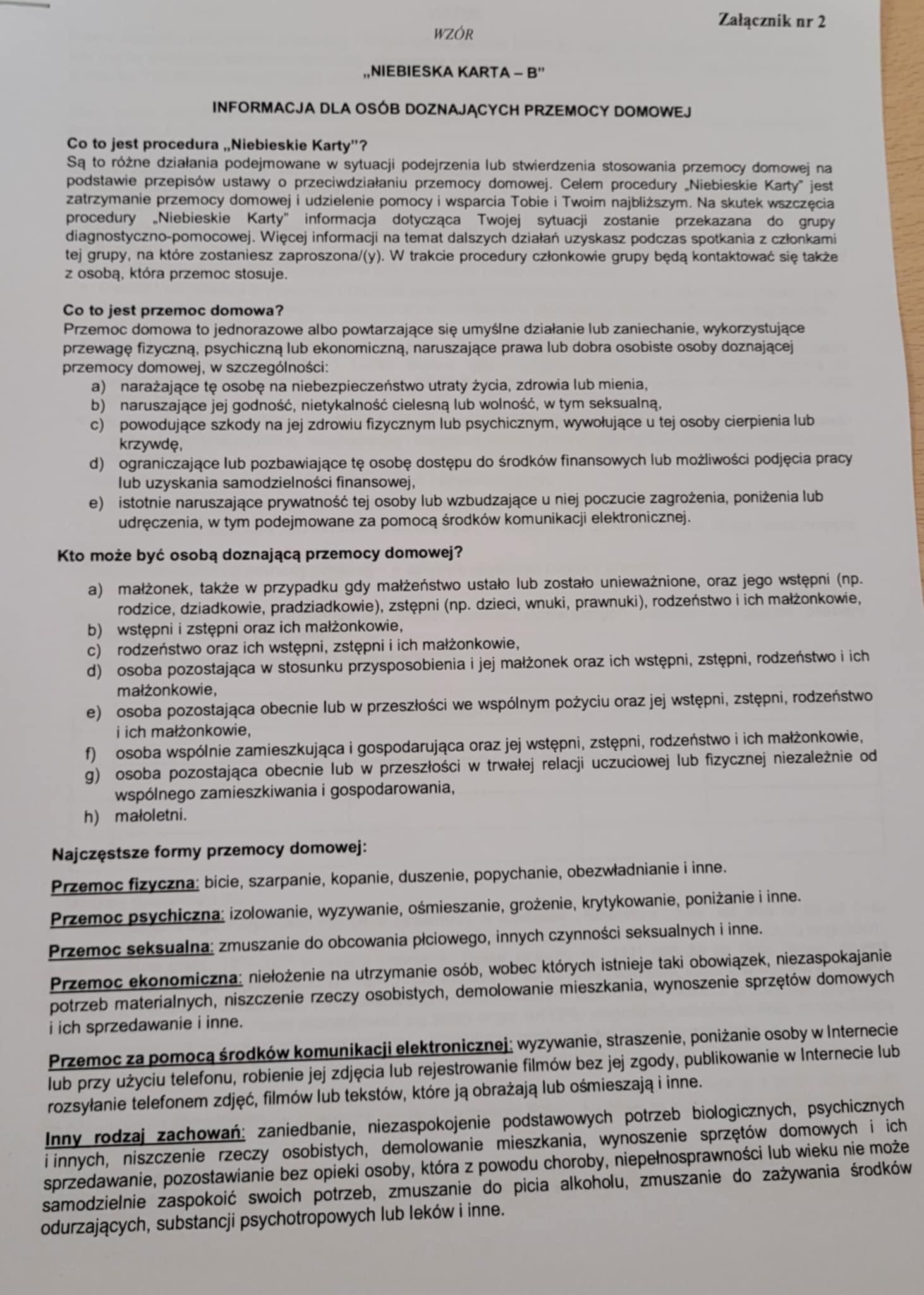 Prelekcja przemocy domowej i procedury Niebieskiej Karty