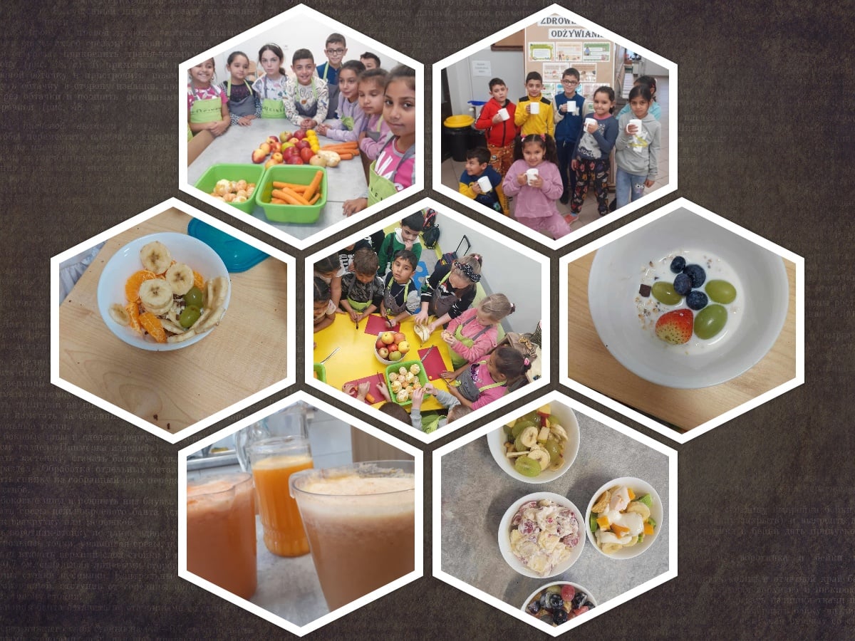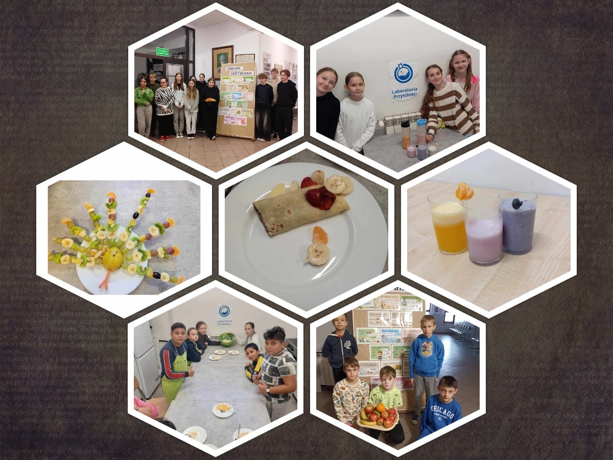 W każdej klasie zostały przeprowadzone zajęcia kulinarne z wykorzystaniem sprzętu kuchennego z programu Laboratoria Przyszłości. Uczniowie przygotowali zdrowe przekąski z prostych, naturalnych składników.