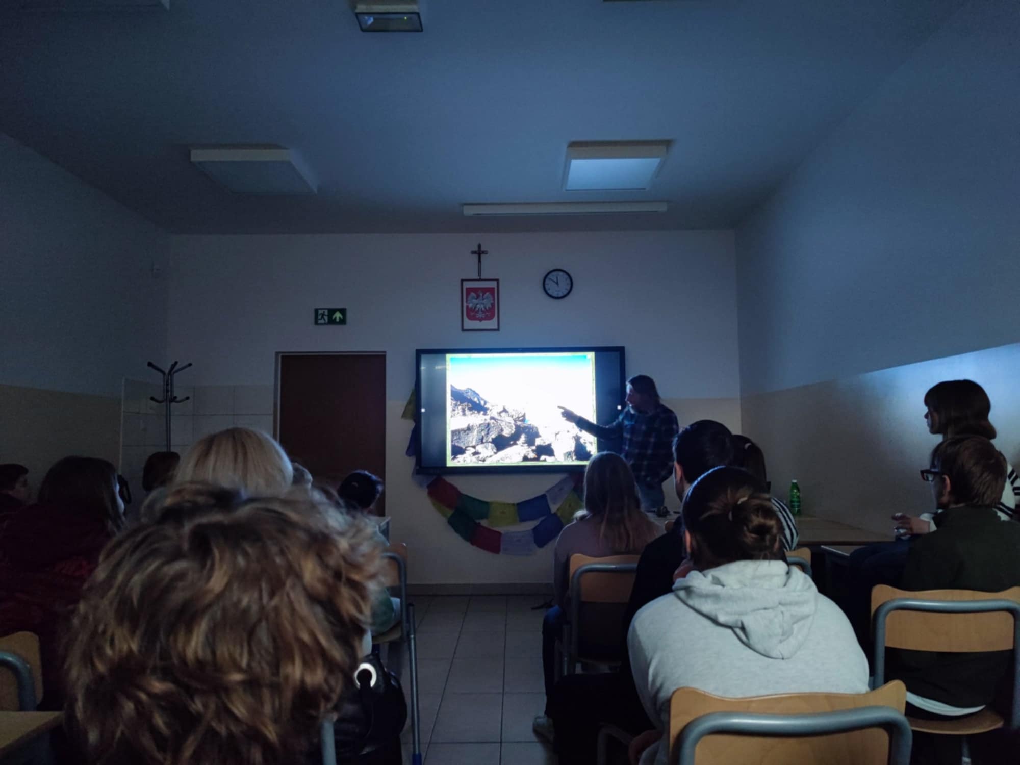 5 grudnia 2024 r. w naszej szkole odbyło się spotkanie prowadzone przez dyplomowanego geografa, niebanalnego podróżnika, bezkompromisowego miłośnika górskich przygód i poszukiwacza miejsc niezwykłych – Marcina Janika „Yeti”. Podróżnik zabrał uczniów w fascynującą wyprawę do najbardziej wysokogórskiego kraju świata – Nepalu. Podczas spotkania opowiadał o swoich wrażeniach z wyprawy, a swoją relację wzbogacił pokazem slajdów. Uczniowie bardzo chętnie i aktywnie uczestniczyli w wykładzie. Spotkanie z podróżnikiem było ciekawą formą popularyzacji wiedzy o świecie. Mamy nadzieję, że zachęciło naszych wychowanków do poznawania tradycji, kultury oraz zwyczajów innych państw.