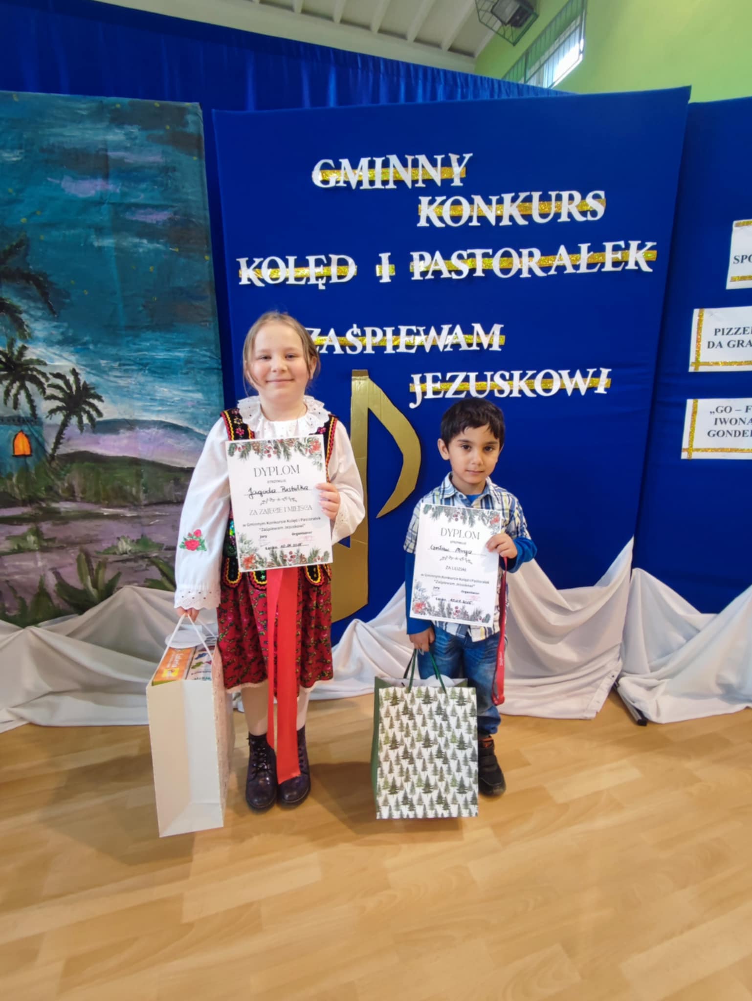 Dnia 10 stycznia 2024 r. odbył się Gminny Konkurs Kolęd i Pastorałek „Zaśpiewam Jezuskowi” organizowany przez Samorządowe Przedszkole Nr1 przy Zespole Szkolno-Przedszkolnym w Łącku. Był on skierowany do dzieci z oddziałów przedszkolnych. Młodzi artyści swoimi występami dostarczyli wielu wzruszeń i emocji. Naszą szkołę reprezentowali: Jagoda Pustułka, która zajęła I miejsce oraz Czesiu Mirga, który zdobył wyróżnienie. Wszyscy uczestnicy otrzymali pamiątkowe dyplomy i nagrody. Przedszkolakom biorącym udział w konkursie gratulujemy i życzymy dalszych sukcesów.