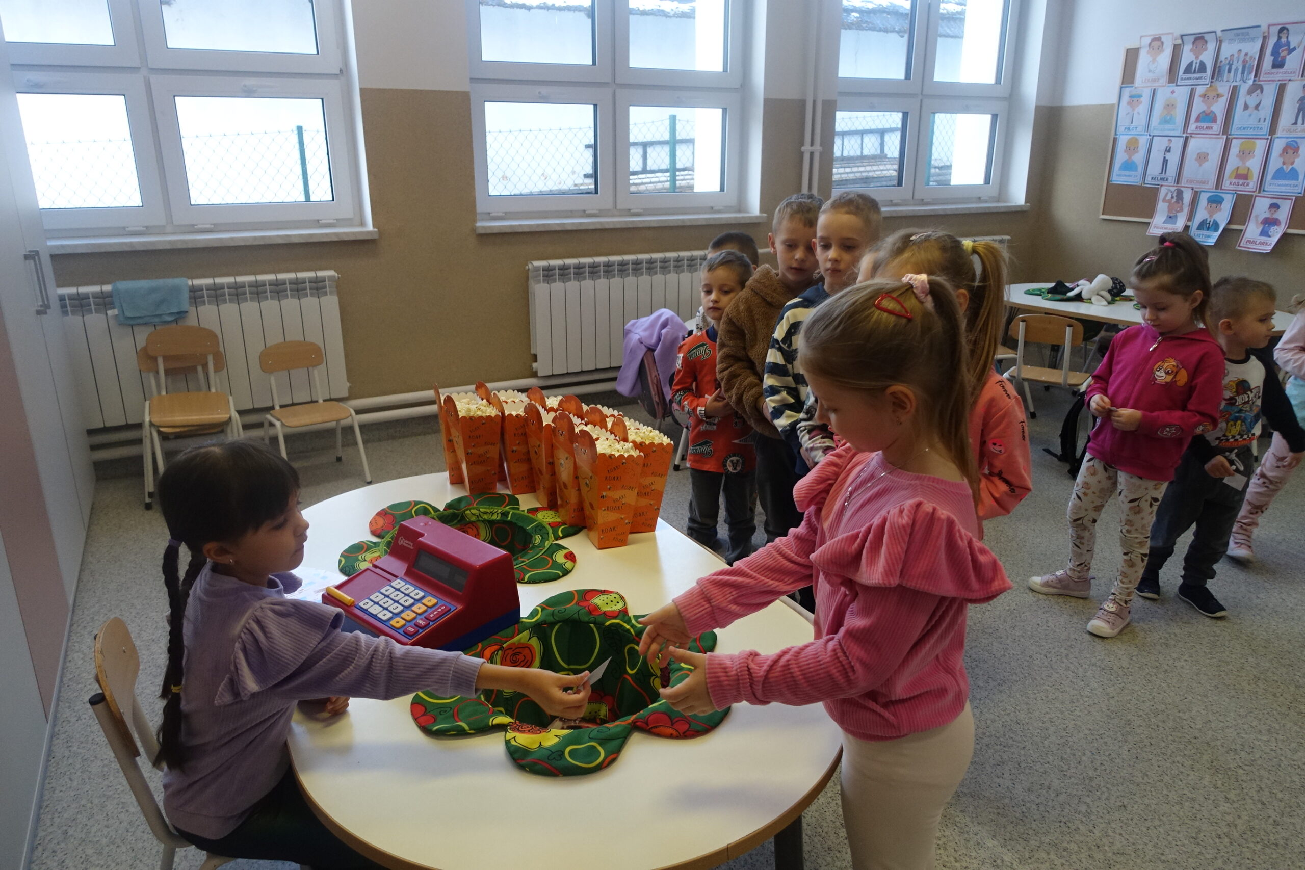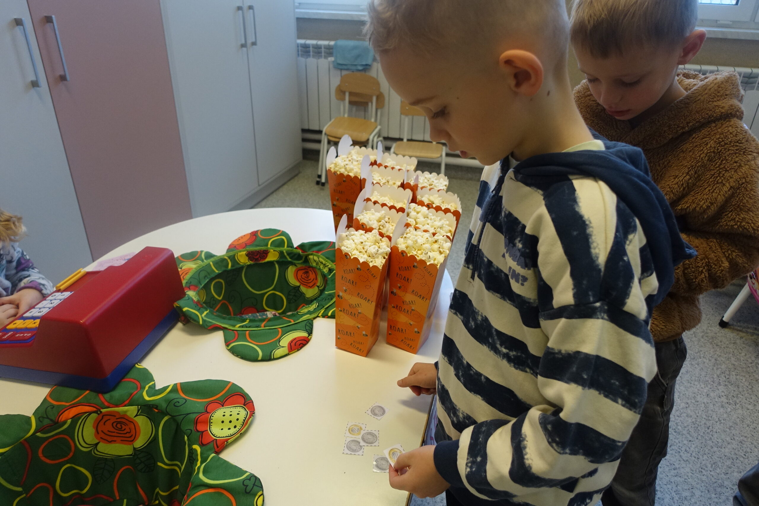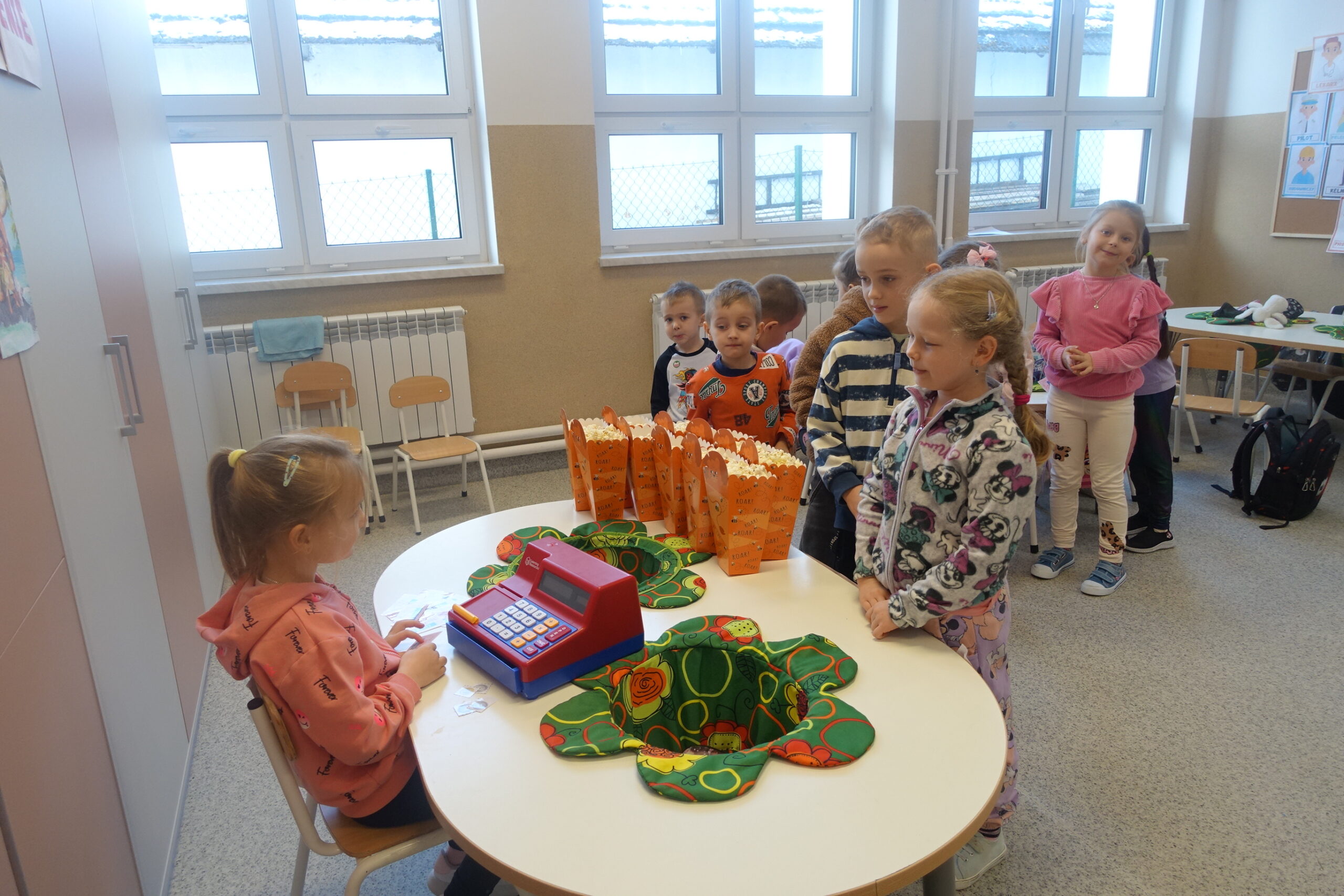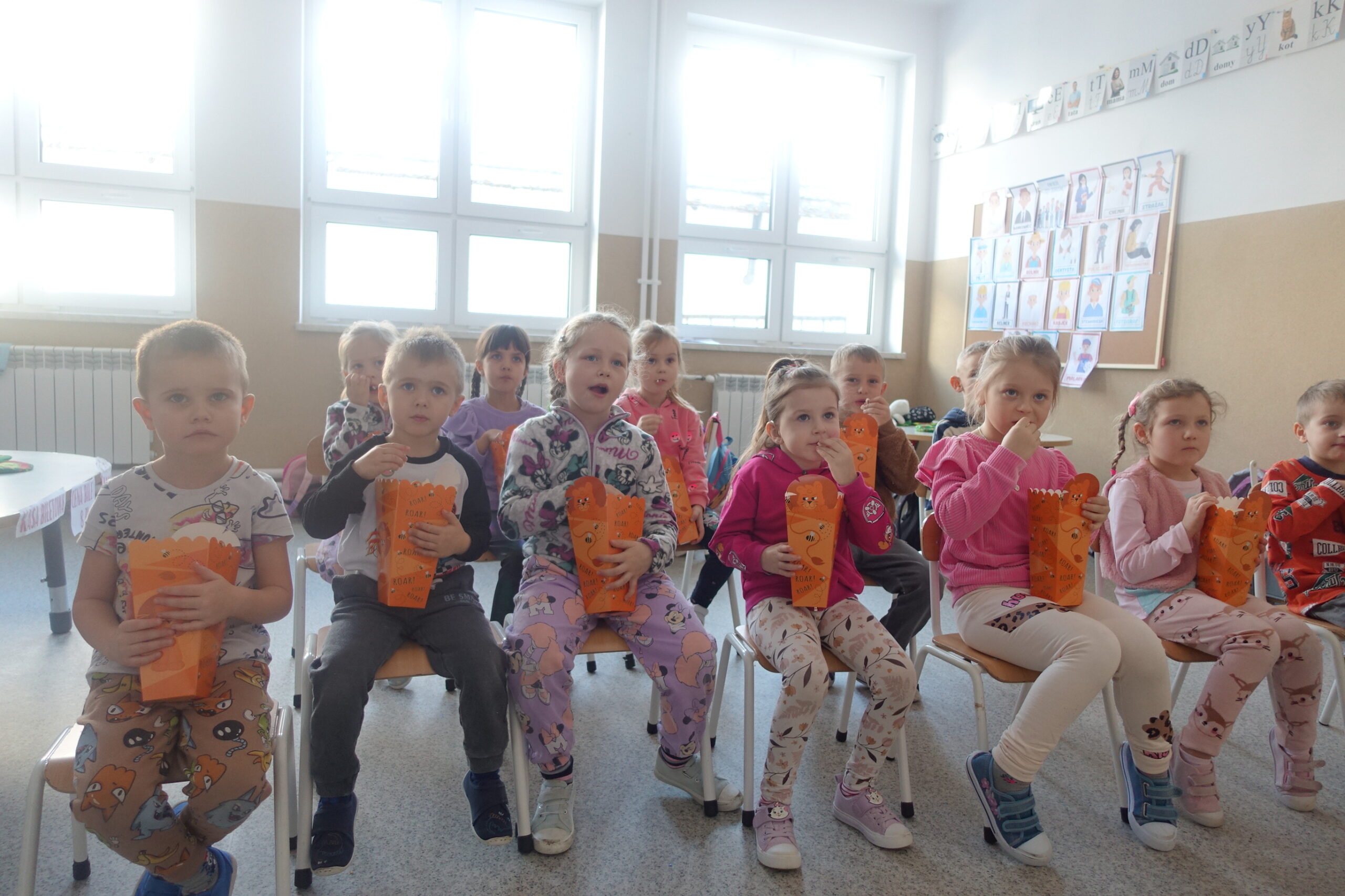 17 stycznia obchodziliśmy w naszym przedszkolu kolejne nietypowe święto – Dzień Popcornu. Dzieci dowiedziały się, z czego powstaje popcorn i jak go przygotować. Dzień ten stał się doskonałą okazją do zabawy w kino, które nieodłącznie kojarzy się z popcornem. Przedszkolaki poznały słownictwo związane z kinem, a także doskonaliły umiejętności matematyczne podczas zabawy w kasę biletową. Była to też doskonała okazja do treningu używania zwrotów grzecznościowych oraz zasad zachowania w miejscu publicznym. Zwieńczeniem dnia był wspólny seans z przysmakiem dnia w roli głównej.