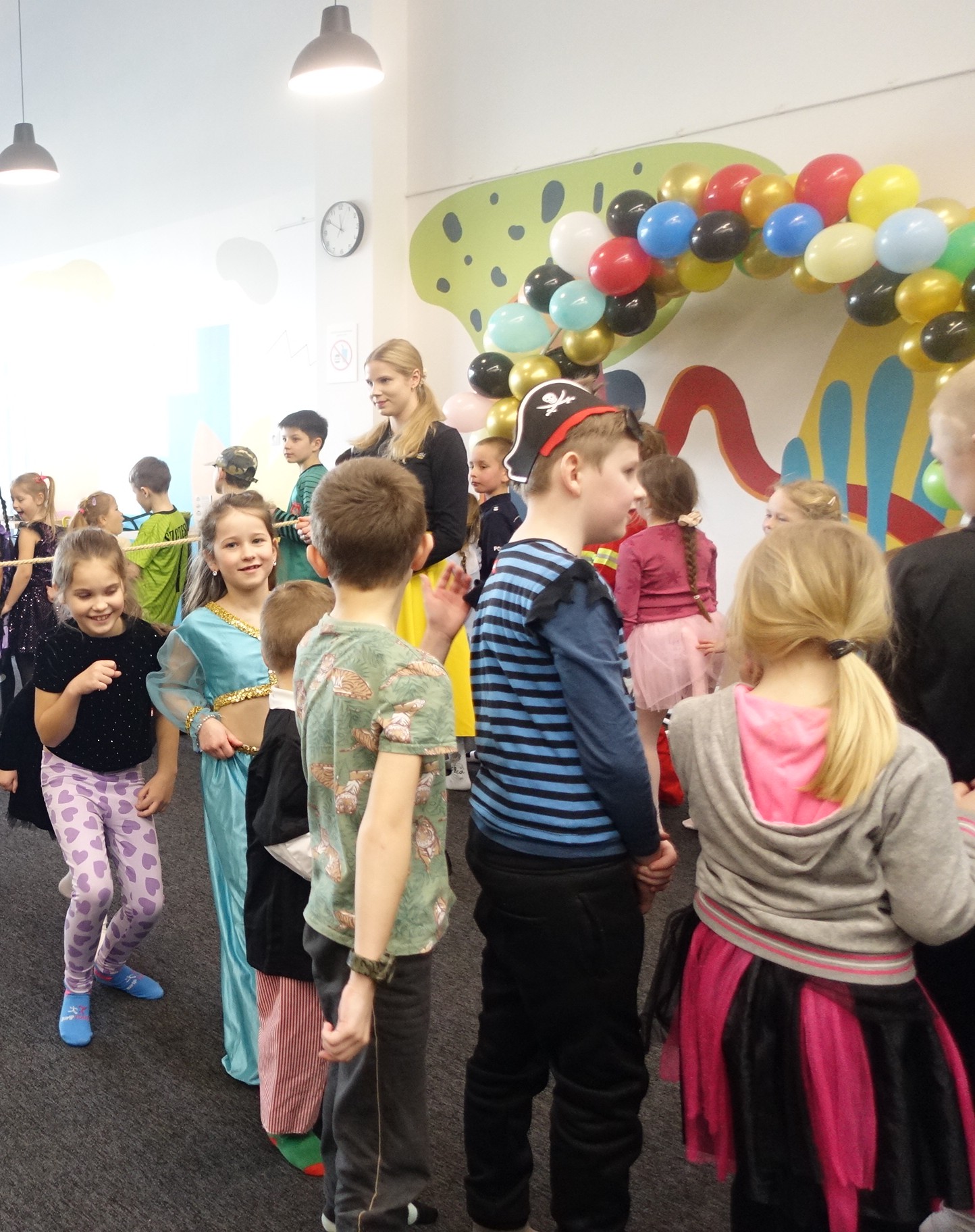 We wtorek 4 lutego dzieci z oddziału przedszkolnego i I-III wzięły udział w ,,Zabawie Karnawałowej’’ zorganizowanej na sali zabaw ,,Nibylandia’’ w Zawadzie. Po zapoznaniu się z zasadami bezpieczeństwa, wszyscy z dużym zapałem uczestniczyli w grach i zabawach na konstrukcji. Chętnie korzystali ze zjeżdżalni, kącików konstrukcyjnych, ścianki wspinaczkowej, itp. Jednak najbardziej byli zainteresowani tańcami i ciekawymi zabawami prowadzonymi przez animatorki. Doskonale naśladowali układy rytmiczne i wykonywali pląsy z użyciem różnych przyborów. Po wspólnym posiłku i krótkim odpoczynku, każde dziecko miało okazję zaprezentowania się w karnawałowym stroju na czerwonym dywanie. Wszyscy bardzo dobrze się bawili, była to doskonała lekcja integrująca zespoły klasowe.