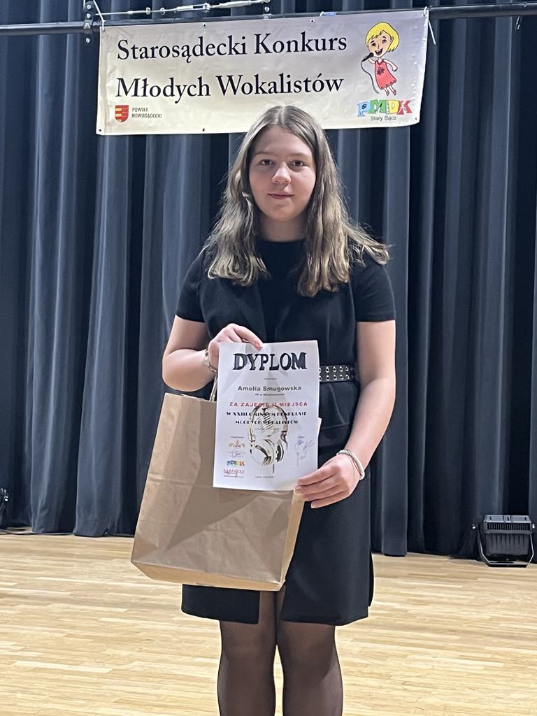 Dnia 14 marca w Centrum Kultury i Edukacji Muzycznej w Łącku odbył się Gminny Konkurs Młodych Wokalistów. Naszą szkołę reprezentowały uczennice Emilia Poparda oraz Amelia Smugowska. Dziewczyny zaprezentowały się z bardzo dobrej strony pokazując swój talent i zamiłowanie do muzyki. Amelia Smugowska zdobyła wysokie II miejsce w swojej bardzo mocnej i licznej kategorii. Obydwu dziewczynom gratulujemy i liczymy na udział w kolejnym etapie konkursu jakim jest XXX Starosądecki Konkurs Młodych Wokalistów pod patronatem Starosty Nowosądeckiego Tadeusza Zaremby.
