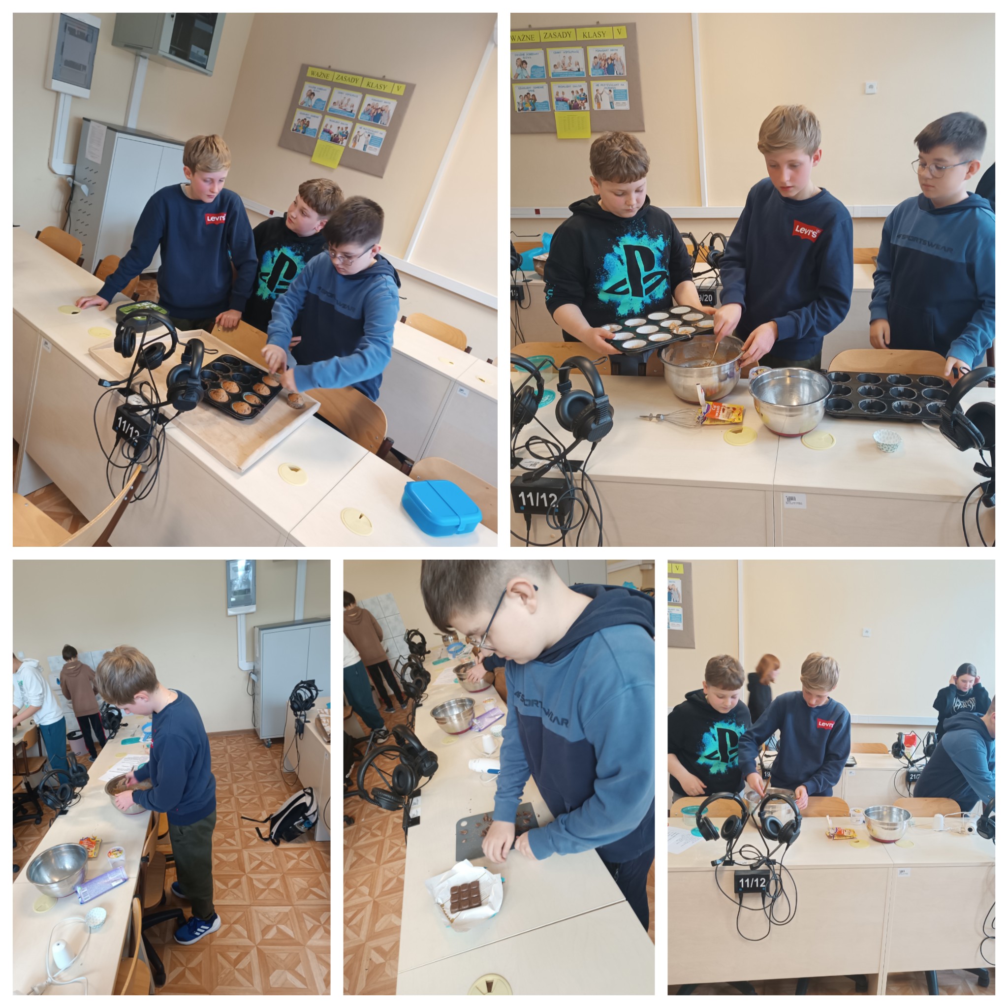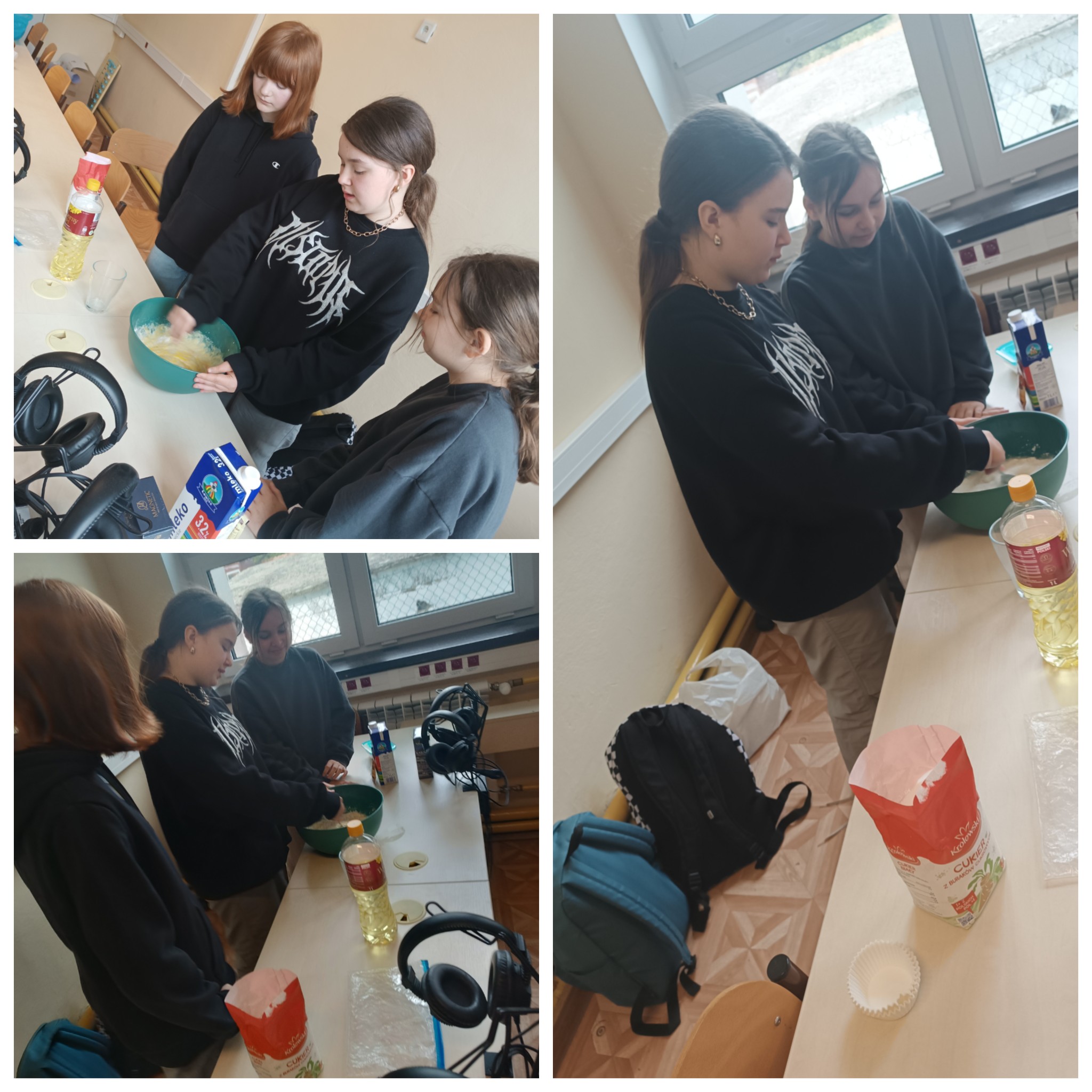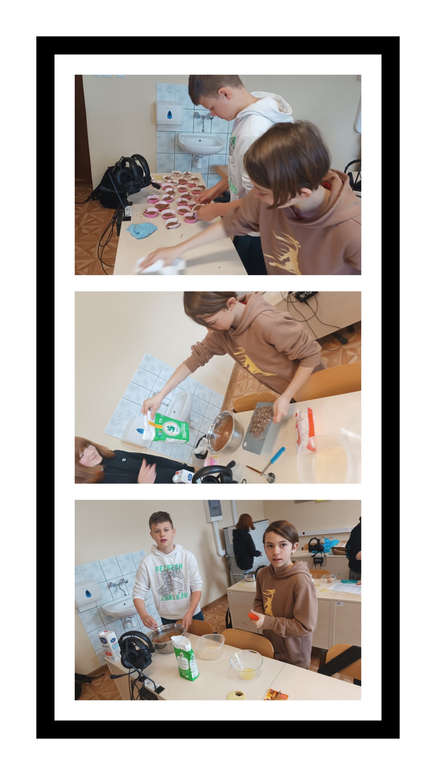 W ramach zajęć rozwijających z języka angielskiego 11 kwietnia 2025 r. klasa VI doskonaliła zdolności kulinarne. Uczniowie piekli popularne w Wielkiej Brytanii „cupcakes” wykorzystując przepisy napisane w języku angielskim.