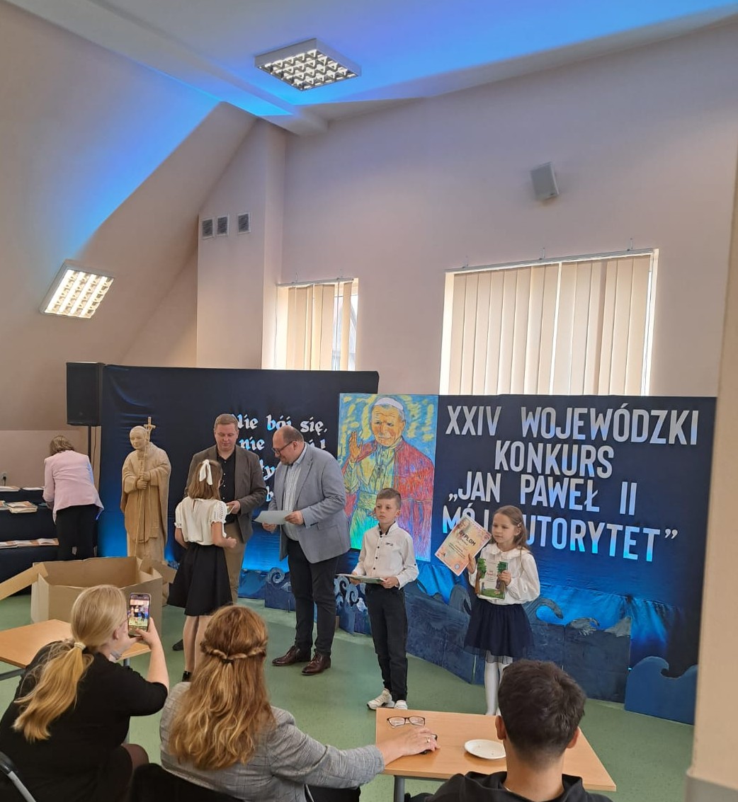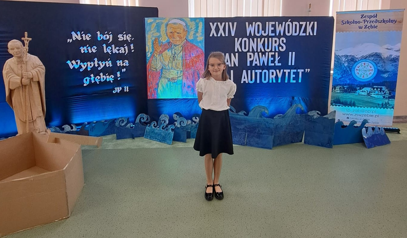 Uczennica klasy II Joanna Zygadło zdobyła wyróżnienie w XXIV wojewódzkim konkursie ,,Jan Paweł II Mój Autorytet’’. W dniu 23.05.2025r. uczestniczyła w uroczystym  rozdaniu nagród w Szkole Podstawowej w Zębie. Składamy gratulacje i życzymy dalszych sukcesów.