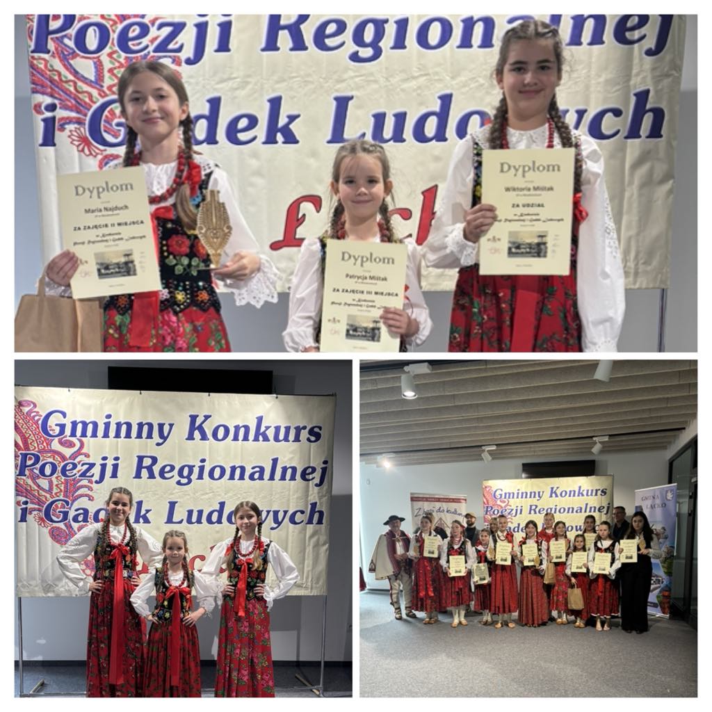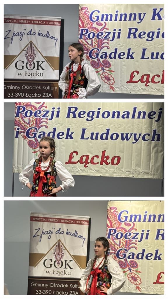 Uczennice naszej szkoły wzięły udział w Gminnym Konkursie Poezji Regionalnej i Gadek Ludowych, który miał na celu popularyzację lokalnej kultury, tradycji oraz gwary Górali Białych. W konkursie zaprezentowały się: Patrycja Miśtak z klasy I, Wiktoria Miśtak z klasy IV oraz Maria Najduch z klasy VI.