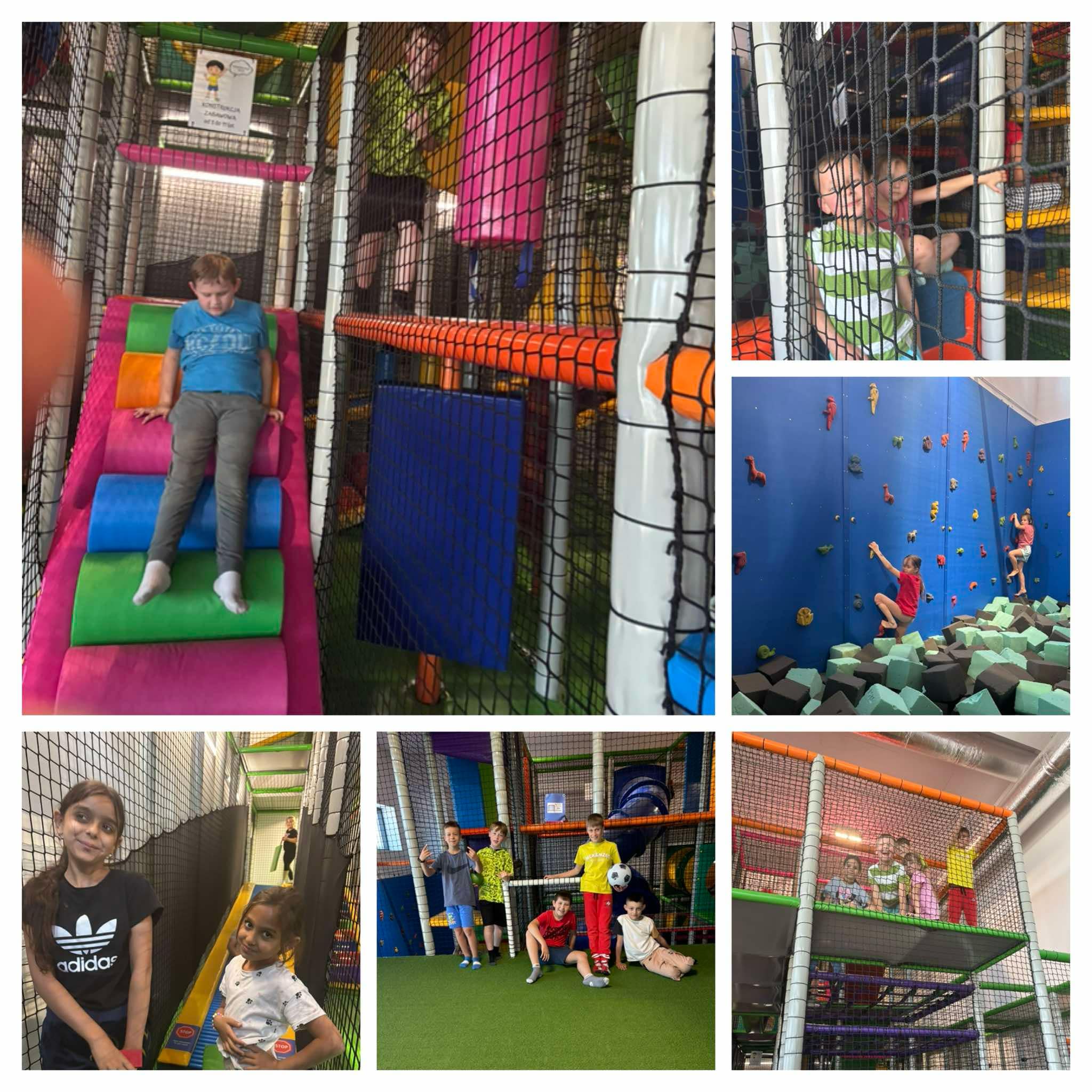 Uczniowie klasy 1 i 3 mieli okazję spędzić niezapomniany czas w sali zabaw Nibylandia w Brzeznej. Wycieczka była pełna radości, śmiechu i aktywnej zabawy – dzieci mogły korzystać z różnorodnych atrakcji, takich jak zjeżdżalnie, baseny z piłeczkami, trampoliny i tory przeszkód.