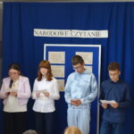 8 września nasza szkoła włączyła się w akcję Narodowego Czytania. Uczniowie przedstawili społeczności szkolnej życiorys Jana Kochanowskiego, a następnie wybrane utwory z bogatej twórczości pisarza. Nie zabrakło fraszek, pieśni i trenów. Spotkanie z mistrzem pióra poszerzyło wiedzę uczniów na temat literatury renesansowej i zachęciło do poprawnego posługiwania się rodzimym językiem.