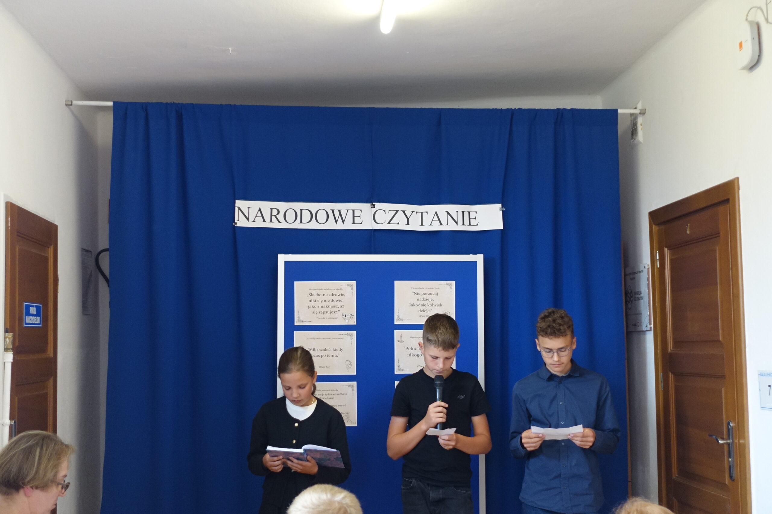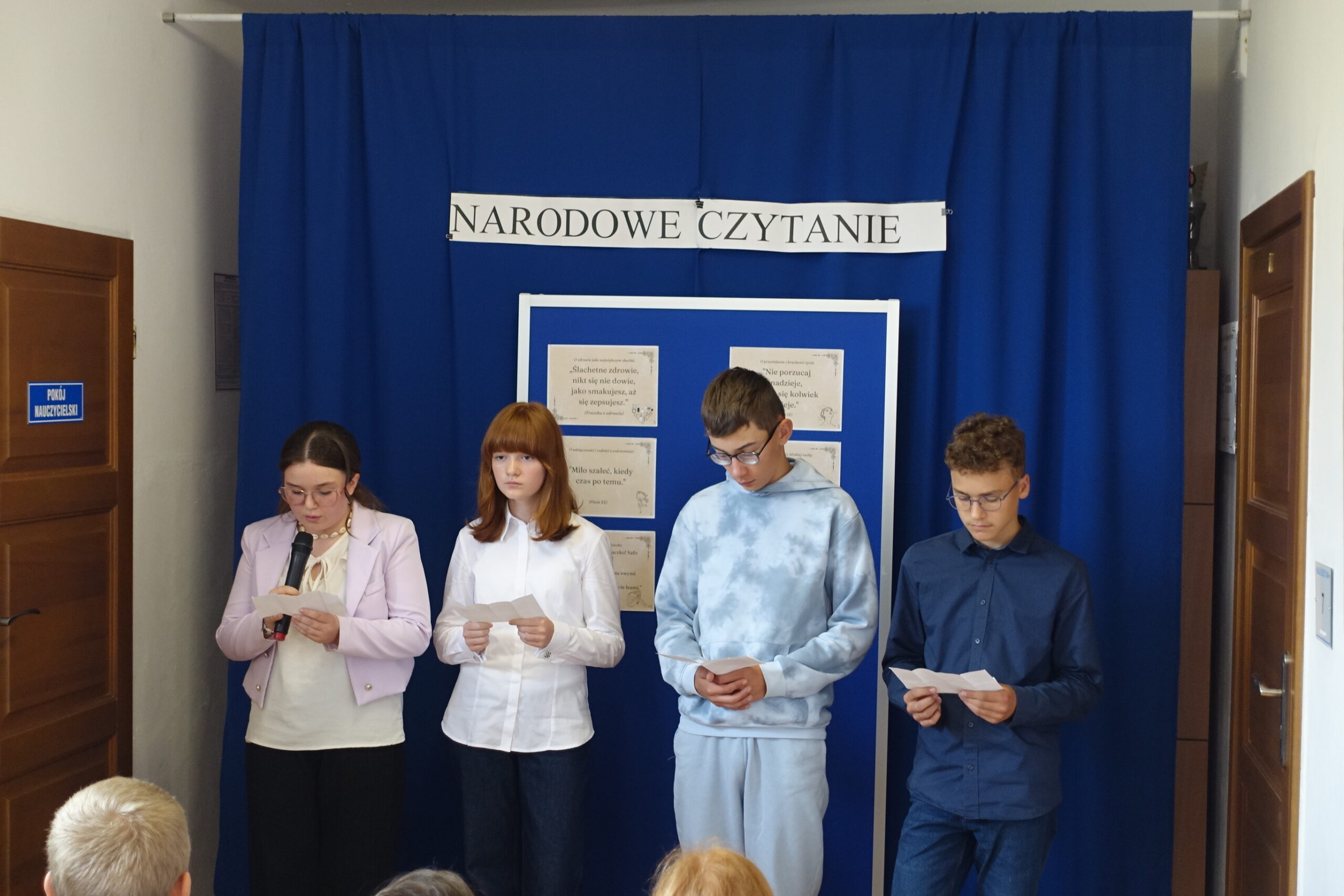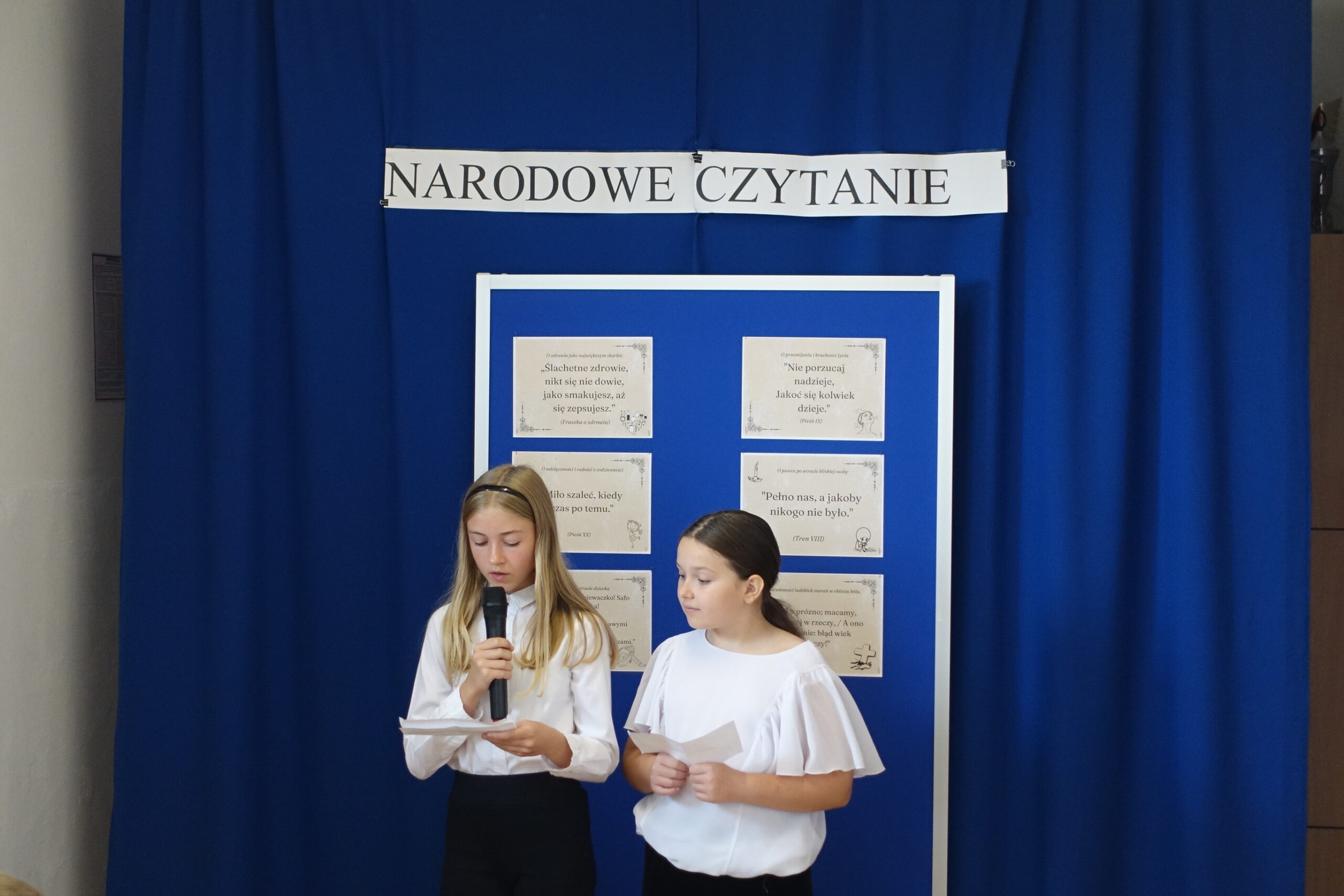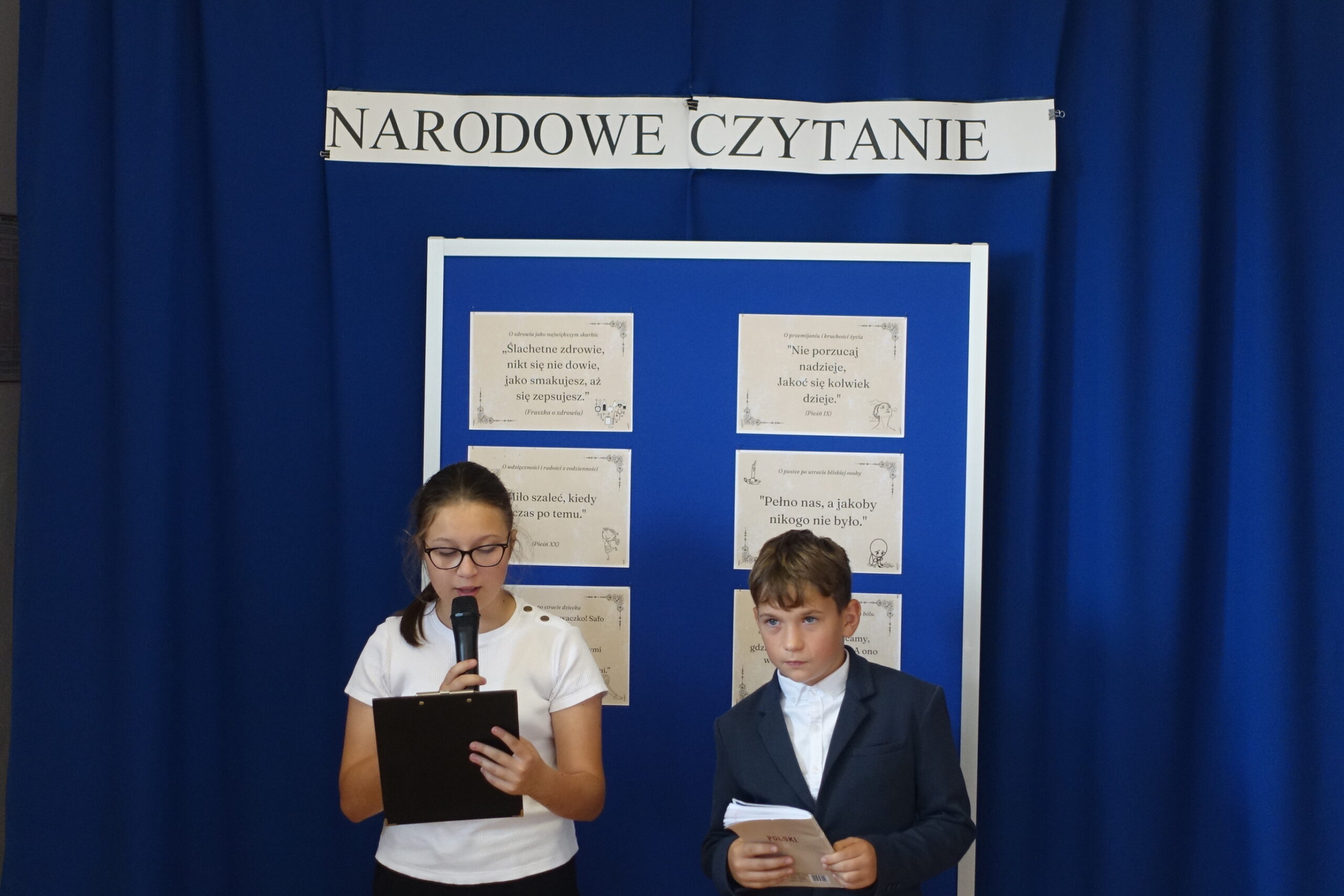 8 września nasza szkoła włączyła się w akcję Narodowego Czytania. Uczniowie przedstawili społeczności szkolnej życiorys Jana Kochanowskiego, a następnie wybrane utwory z bogatej twórczości pisarza. Nie zabrakło fraszek, pieśni i trenów. Spotkanie z mistrzem pióra poszerzyło wiedzę uczniów na temat literatury renesansowej i zachęciło do poprawnego posługiwania się rodzimym językiem.