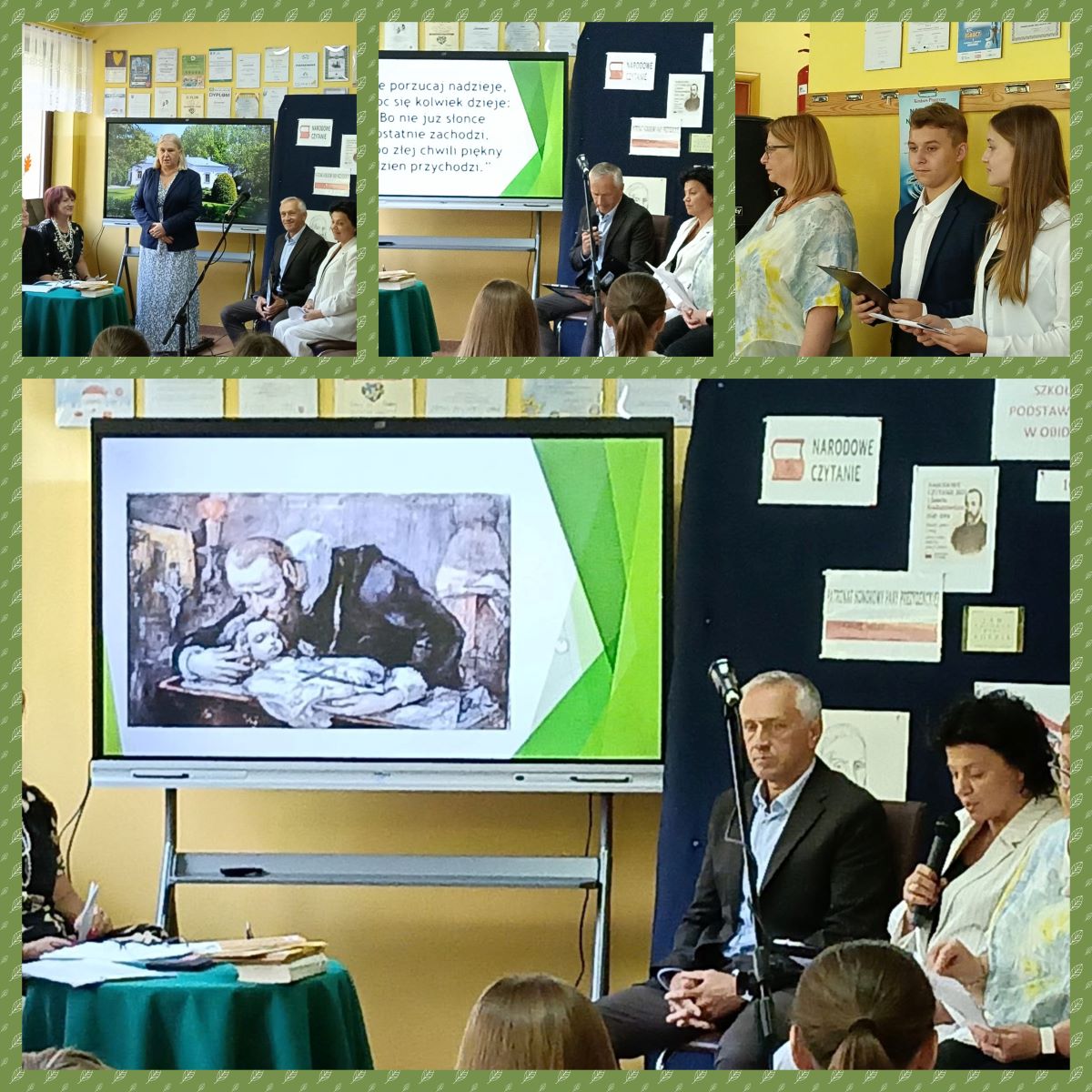 Uroczystość zaszczycili swą obecnością i włączyli się do naszej szkolnej akcji: p. Jan Dziedzina, wójt Gminy Łącko, p. Lucyna Citak, dyrektor Samorządowego Centrum Usług Wspólnych Gminy Łącko, p. Elżbieta Majerska, przewodnicząca Rady Gminy Łącko, p. Agnieszka Botor, sołtys naszej wsi, p. Barbara Szczepaniak, bibliotekarz Biblioteki Publicznej w Obidzy, p. Ewelina Kołodziej, przewodnicząca Rady Rodziców szkoły. Naszą społeczność szkolną reprezentowali: p. Dorota Bazielich oraz uczniowie kl. VI i VIII: Hanna Kurzawa, Arleta Tomasiak, Honorata Obrzud, Marta Tomasiak, Artur Kiklica, Szymon Majerski i Mikołaj Majerski.
