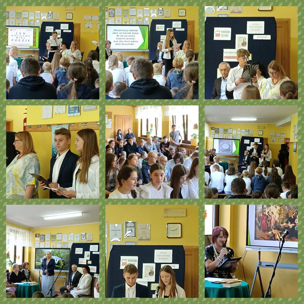 Dzięki dzisiejszemu spotkaniu odbyliśmy literacką podróż i przenieśliśmy się w czasy polskiego renesansu. Prowadzący uczniowie, Hania i Artur, przybliżyli najważniejsze fakty z życia wybitnego poety z Czarnolasu. Recytatorzy zaprezentowali wybrane fraszki, pieśni i treny. Na koniec Marta, przy akompaniamencie p. Krzysztofa Kaweckiego, pięknie zaśpiewała hymn „Czego chcesz od nas, Panie”.