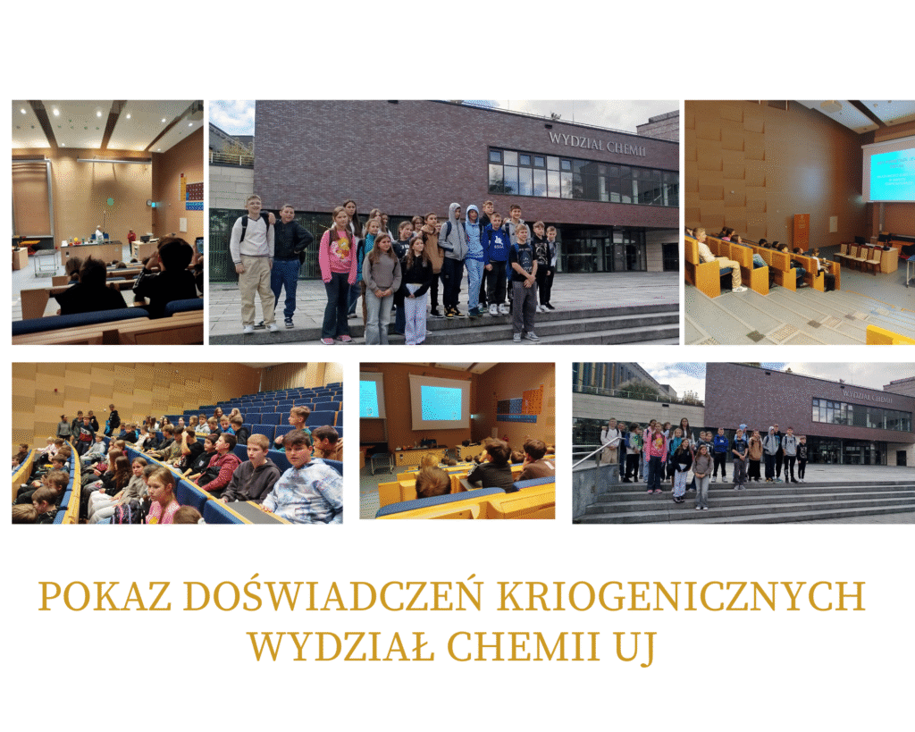 2 października uczniowie klas VII uczestniczyli w pokazach kriogenicznych na Wydziale Chemii Uniwersytetu Jagiellońskiego. Najpierw wysłuchali krótkiego wykładu o historii skraplania gazów i zastosowaniach kriogeniki, a następnie obejrzeli serię niezwykłych doświadczeń z wykorzystaniem ciekłego azotu.