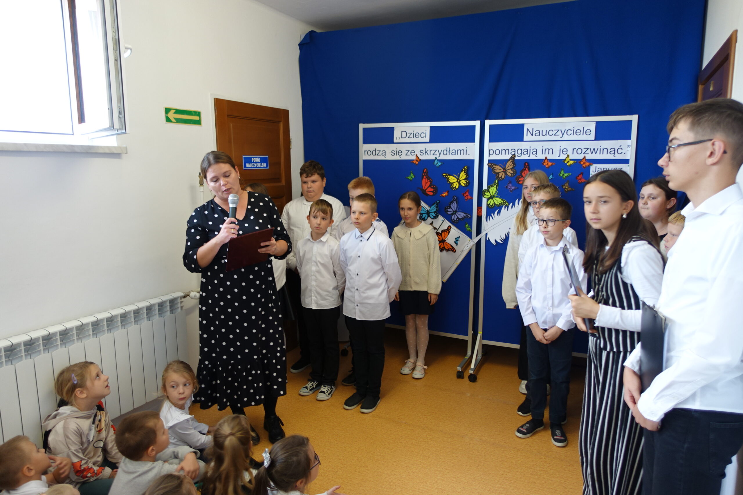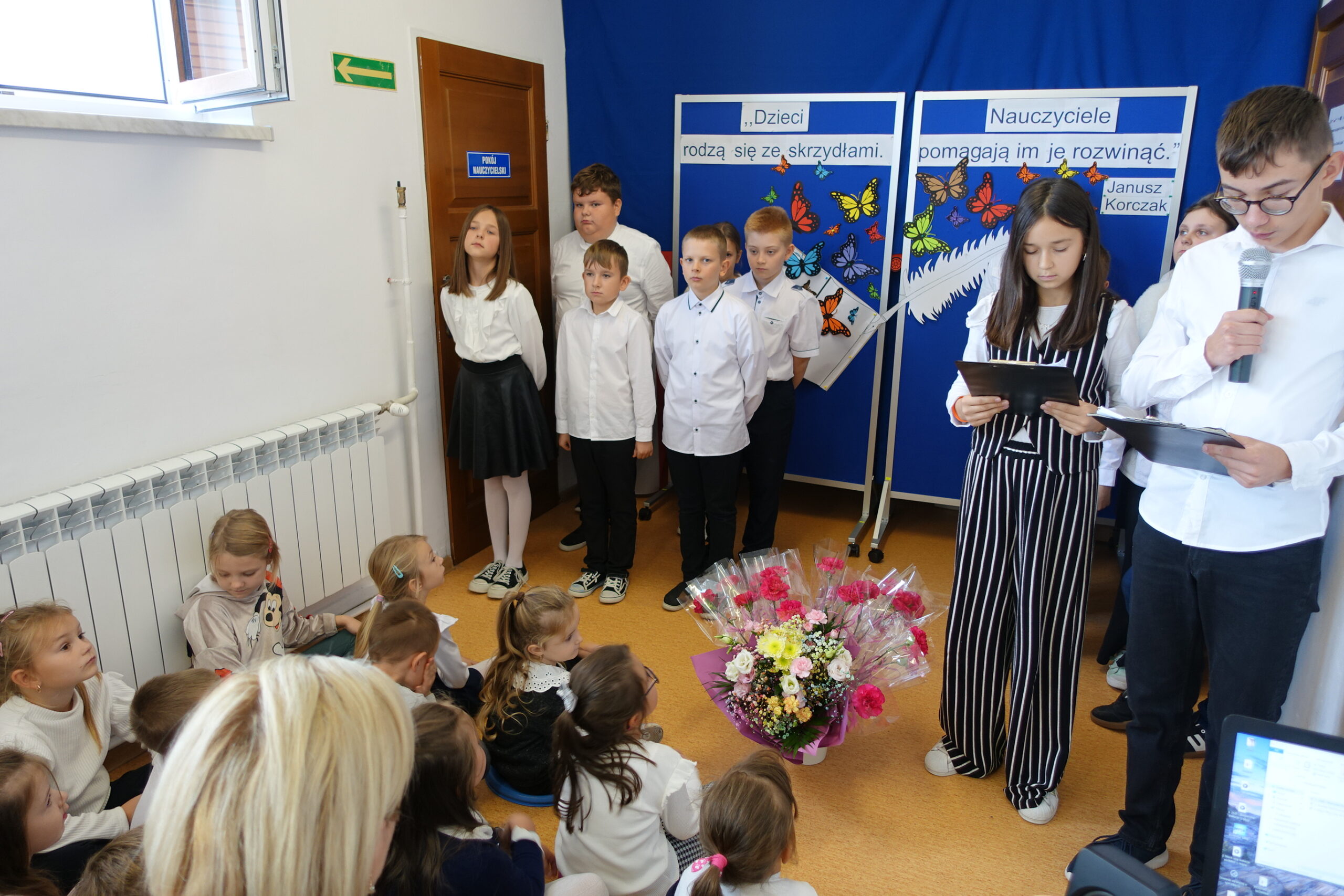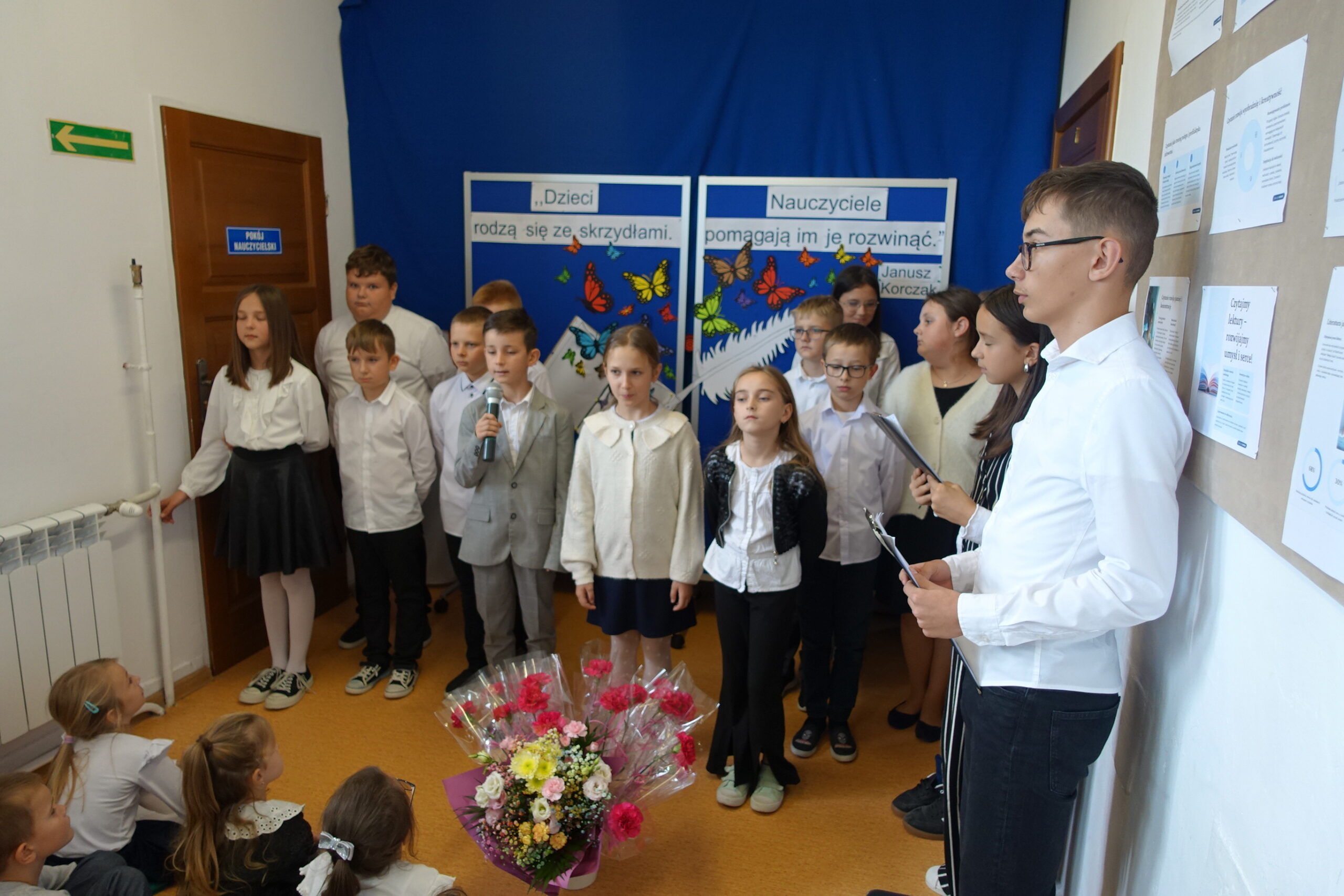 W dniu 16 października społeczność Szkoły Podstawowej w Szczereżu miała przyjemność uczestniczyć w uroczystej akademii z okazji Dnia Edukacji Narodowej, przygotowanej przez uczniów klasy IV oraz przedstawicieli Samorządu Uczniowskiego. Pod czujnym okiem swojej Wychowawczyni oraz Opiekuna Samorządu Uczniowskiego, młodzi artyści stworzyli widowisko, które było hołdem dla wszystkich Pracowników Oświaty – Nauczycieli, Wychowawców, Pedagogów i Pracowników administracyjnych oraz obsługi. Czwartoklasiści zaprezentowali program artystyczny, który łączył w sobie elementy zabawy i nauki. Publiczność mogła usłyszeć piękne piosenki w wykonaniu uczniów, które wprowadziły radosny i świąteczny nastrój. Oprócz muzyki, pojawiły się również ciekawy program artystyczny, który nie tylko bawił zgromadzonych, ale także przekazywał ważne wartości i refleksje na temat roli edukacji w życiu każdego człowieka. Po wystąpieniu młodych artystów, życzenia przekazała Przewodnicząca Rady Rodziców oraz Dyrektor Szkoły. Była to piękna lekcja szacunku i wdzięczności.