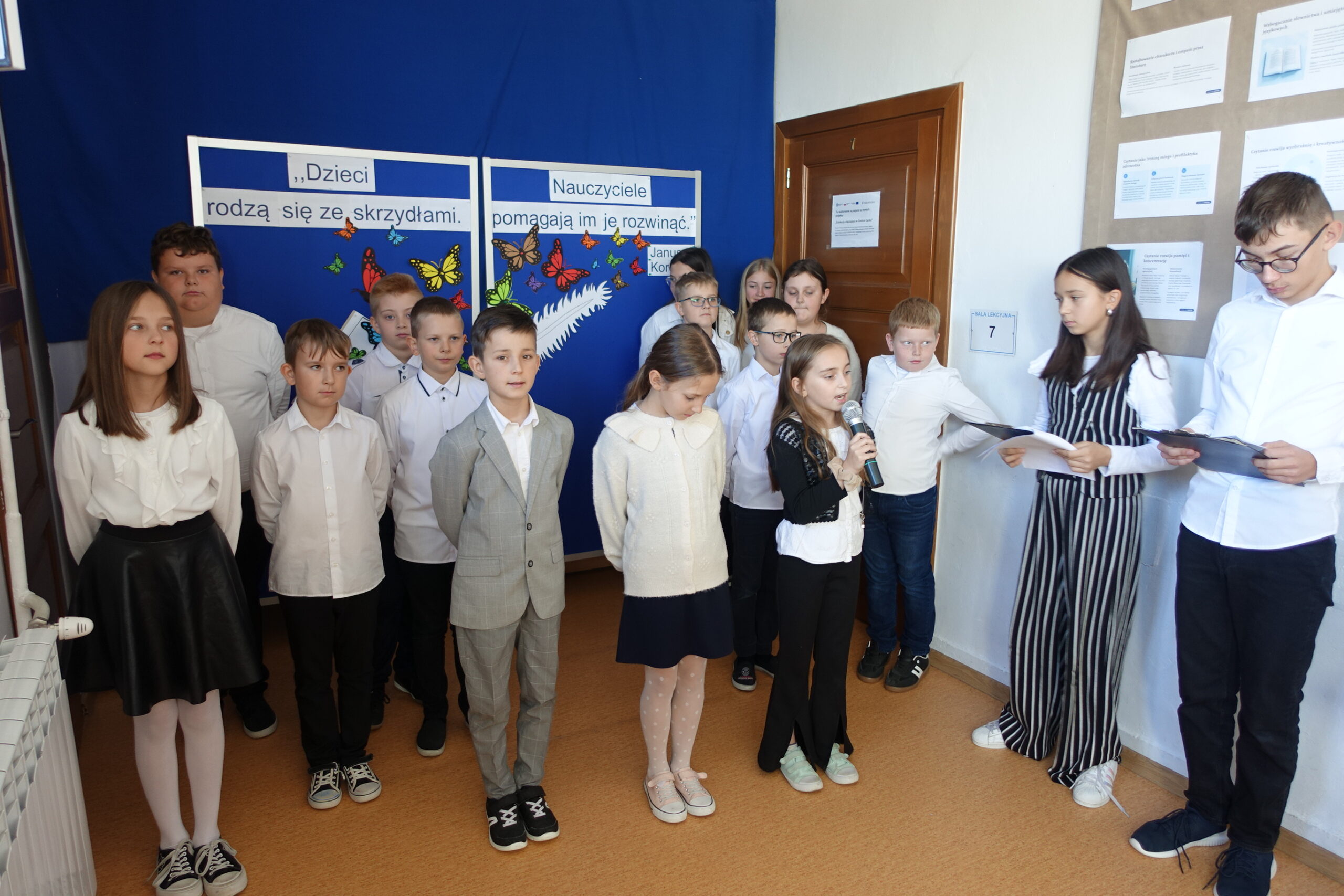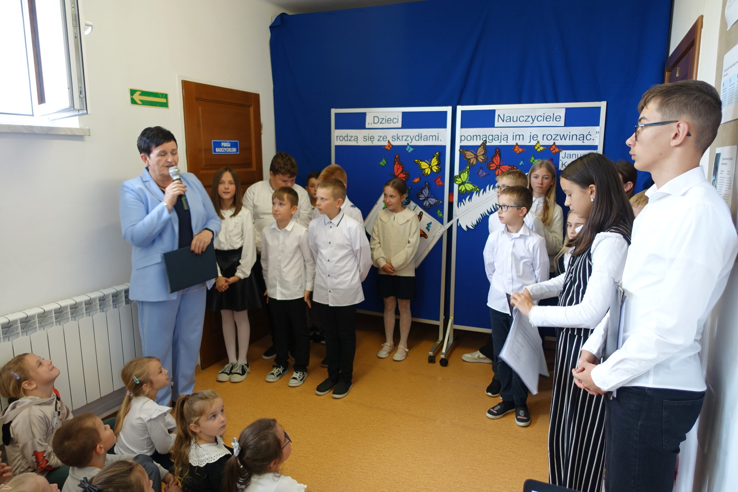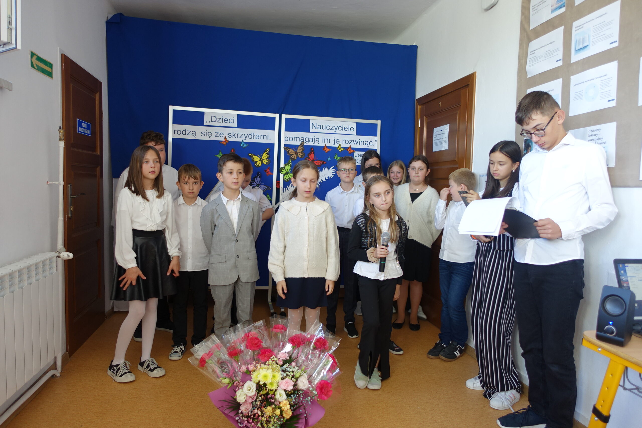 W dniu 16 października społeczność Szkoły Podstawowej w Szczereżu miała przyjemność uczestniczyć w uroczystej akademii z okazji Dnia Edukacji Narodowej, przygotowanej przez uczniów klasy IV oraz przedstawicieli Samorządu Uczniowskiego. Pod czujnym okiem swojej Wychowawczyni oraz Opiekuna Samorządu Uczniowskiego, młodzi artyści stworzyli widowisko, które było hołdem dla wszystkich Pracowników Oświaty – Nauczycieli, Wychowawców, Pedagogów i Pracowników administracyjnych oraz obsługi. Czwartoklasiści zaprezentowali program artystyczny, który łączył w sobie elementy zabawy i nauki. Publiczność mogła usłyszeć piękne piosenki w wykonaniu uczniów, które wprowadziły radosny i świąteczny nastrój. Oprócz muzyki, pojawiły się również ciekawy program artystyczny, który nie tylko bawił zgromadzonych, ale także przekazywał ważne wartości i refleksje na temat roli edukacji w życiu każdego człowieka. Po wystąpieniu młodych artystów, życzenia przekazała Przewodnicząca Rady Rodziców oraz Dyrektor Szkoły. Była to piękna lekcja szacunku i wdzięczności.