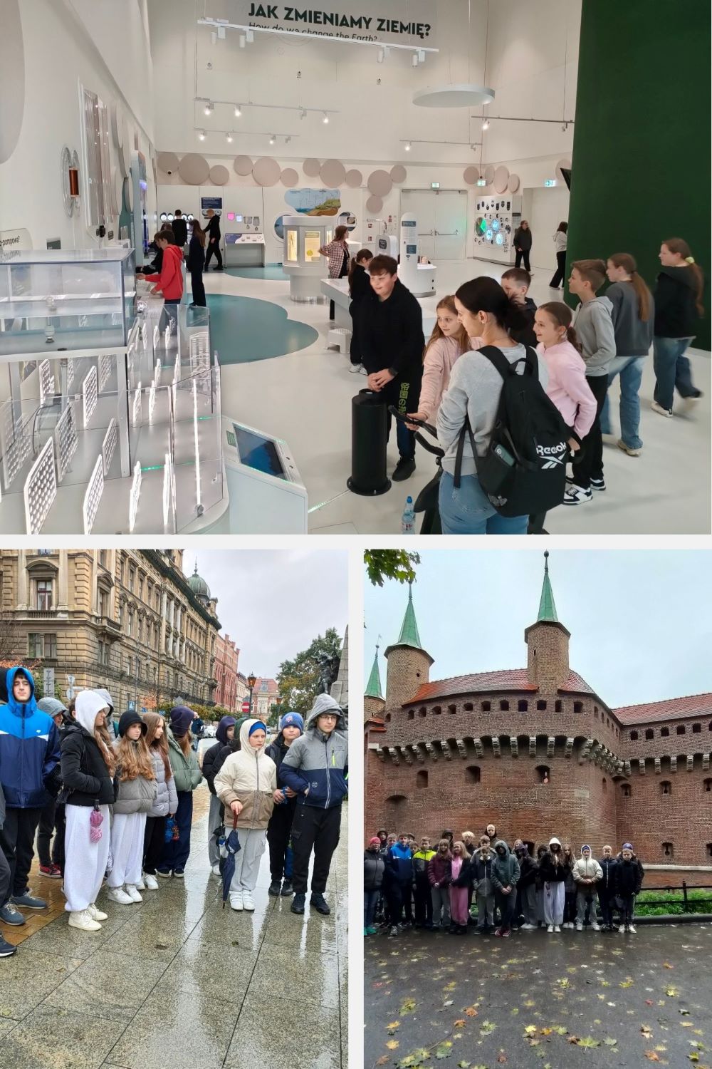Wyjechaliśmy o godzinie szóstej. Kraków przywitał nas zachmurzonym niebem i deszczem. Mimo to, wypatrując przez szyby pierwszych atrakcji, nie mogliśmy się doczekać, aby móc je zobaczyć z bliska.