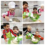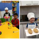 Przedszkolaki zamieniły się w małych piekarzy – założyły fartuszek i czapkę kucharską, a następnie wspólnie przygotowały składniki potrzebne do wypieku chleba. Z zapałem wsypywały składniki, obserwując, jak należy ugniatać ciasto a następnie jak powoli rośnie i nabiera kształtu. Najwięcej emocji wzbudziło oczywiście pieczenie chleba. Gdy chleb był gotowy, dzieci z dumą degustowały swoje małe dzieła – smakował wyśmienicie! To popołudnie było pełne ciepła, radości i wspólnego działania.