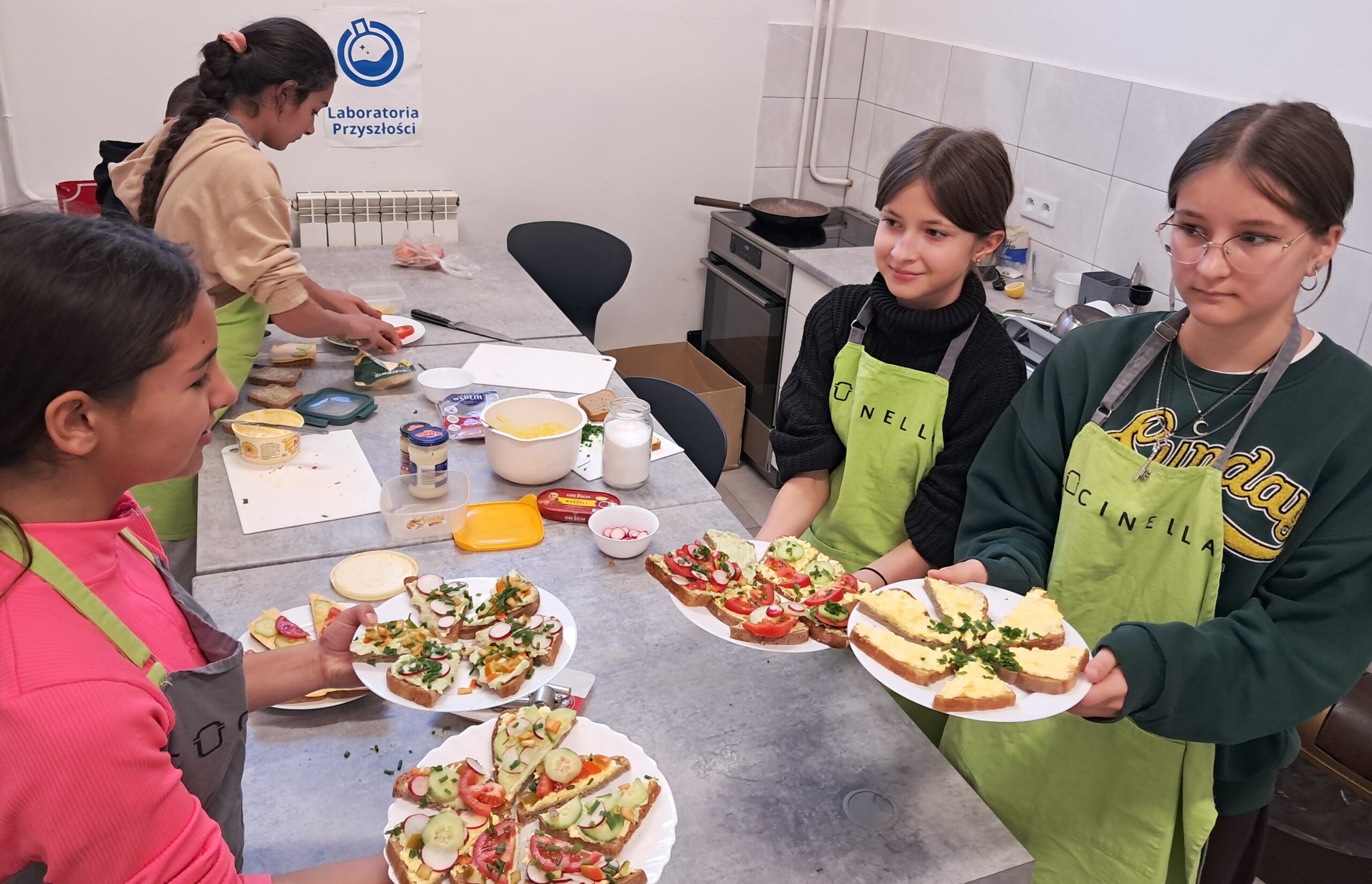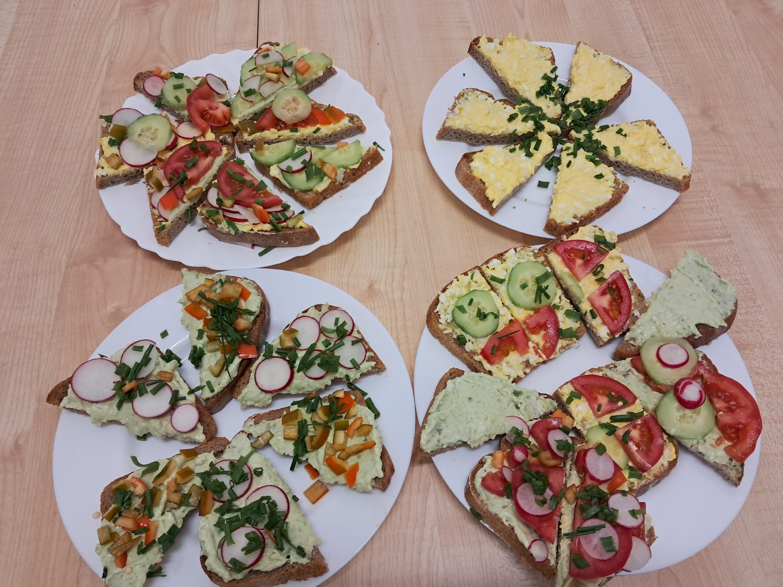 Pod okiem nauczyciela uczniowie przygotowywali kolorowe, pełne witamin kanapki, które nie tylko pięknie wyglądały, ale przede wszystkim smakowały wyśmienicie. Na stołach pojawiły się różnorodne warzywa, sery, sałaty, pomidory, ogórki oraz świeże zioła – wszystko po to, by stworzyć smaczne i pożywne kompozycje.