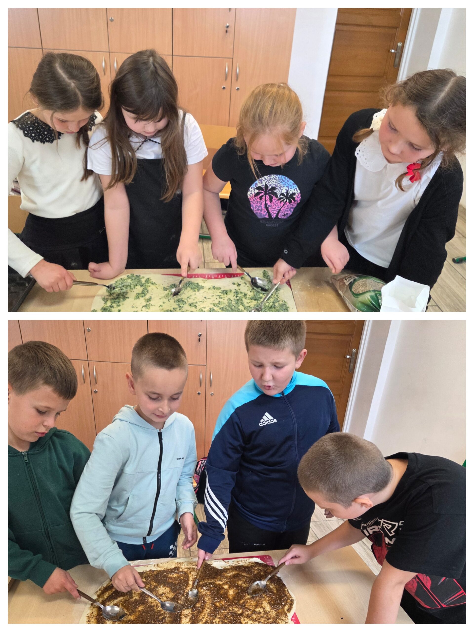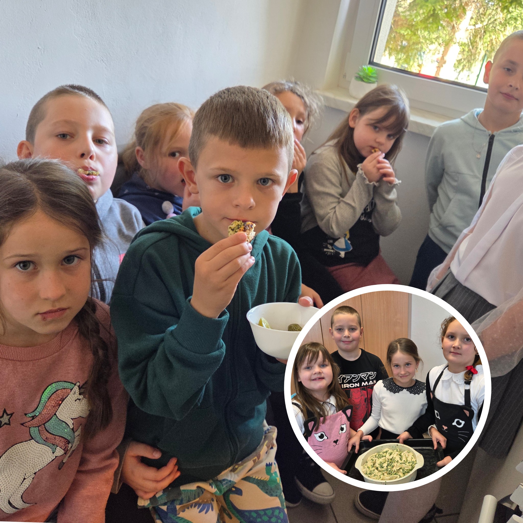Jednym z modułów zajęć rozwijających w klasie II są zajęcia kulinarne. Podczas ostatnich, uczniowie mieli okazję piec chleby ziołowe- pachnące bazylią, tymiankiem, cząbrem, czosnkiem oraz cebulą. Przygotowania do wypieków połączono z realizacją treści programowych z zakresu edukacji społecznej, polonistycznej, matematycznej oraz technicznej (rozwijanie współpracy, tworzenie pozytywnych relacji, wagi i miary, analiza przepisu i instrukcji, wspólne przygotowanie składników- zakupy, porządkowanie stanowiska pracy).  Wypieki poprzedziła rozmowa na temat bezpiecznego korzystania z urządzeń RTV i AGD takich jak termomix, kuchenka elektryczna (piekarnik i płyta indukcyjna), które były używane w ramach zajęć kulinarnych. Na koniec odbyła się degustacja wypieków,  aromatyczne, chrupiące chlebki ziołowe wszystkim bardzo smakowały! Zajęcia pokazały, że nauka przez działanie i łączenie różnych dziedzin oraz nowoczesne technologie, może być nie tylko pouczająca, ale też bardzo apetyczna!