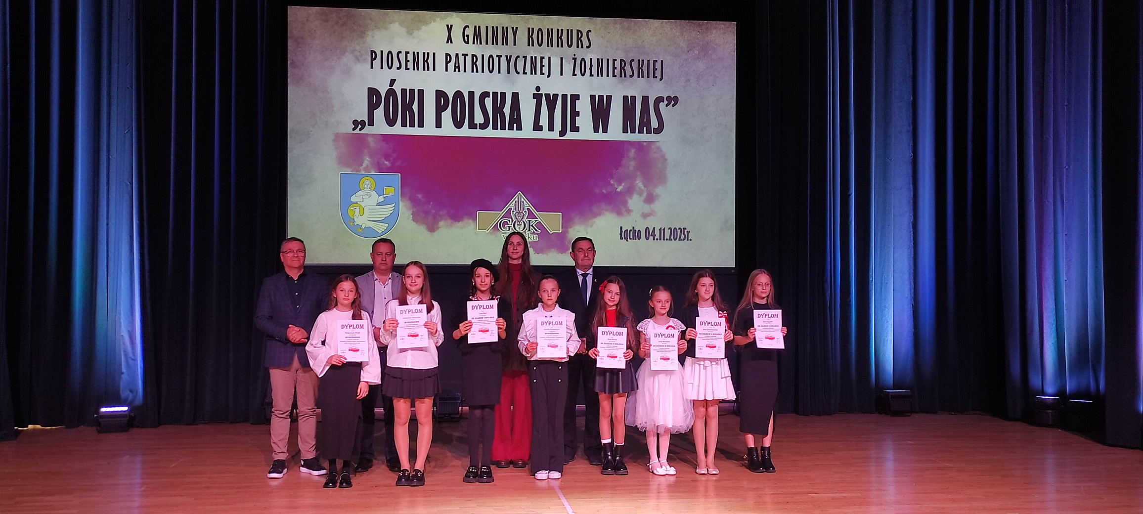 4 listopada 2025 roku w sali widowiskowej CKiEM w Łącku odbyła się X edycja Gminnego Konkursu Piosenki Patriotycznej i Żołnierskiej „Póki Polska żyje w nas…”