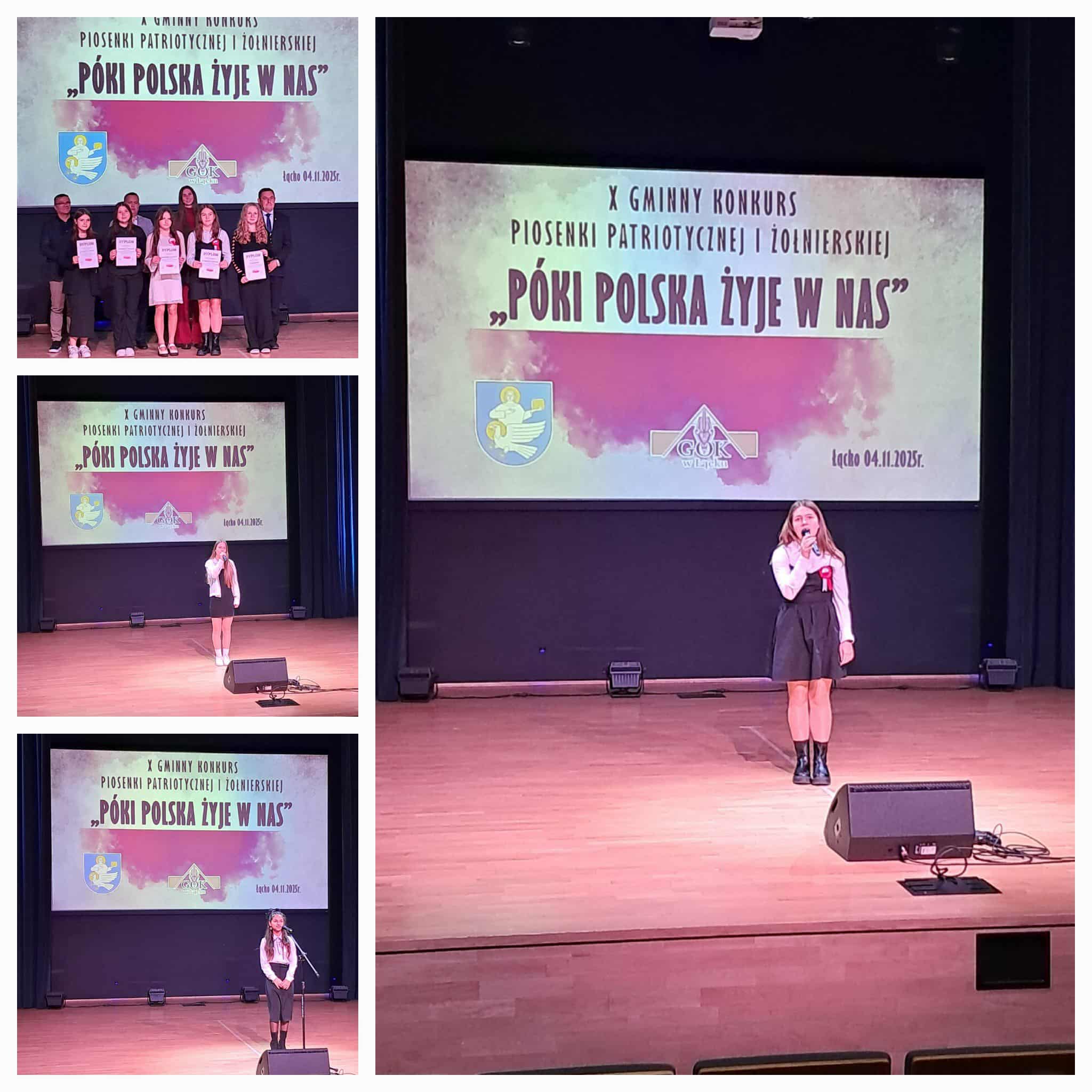 4 listopada 2025 roku w Centrum Kultury w Łącku odbył się X Gminny Konkurs Piosenki Patriotycznej i Żołnierskiej „Póki Polska żyje w nas”. Wydarzenie to, organizowane corocznie z okazji zbliżającego się Święta Niepodległości, zgromadziło w tym roku ponad 70 uczestników z różnych szkół naszej gminy.
