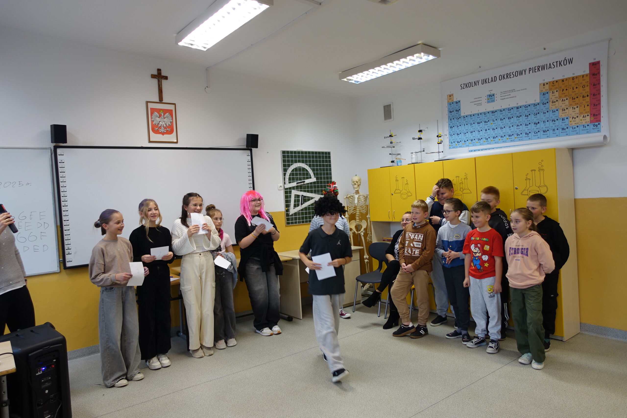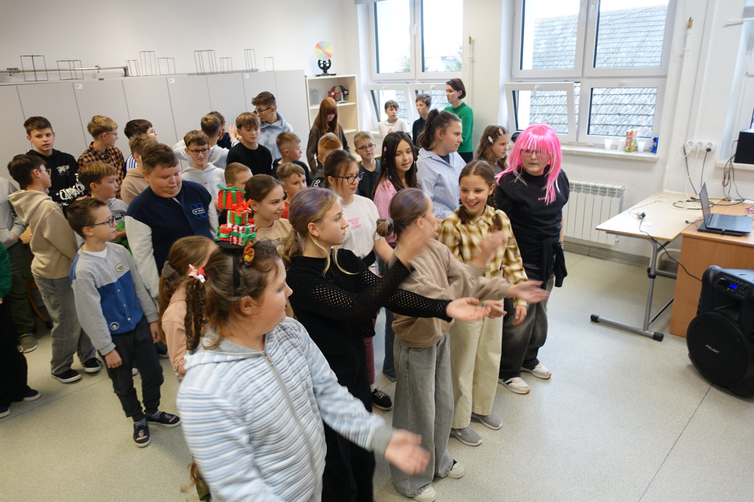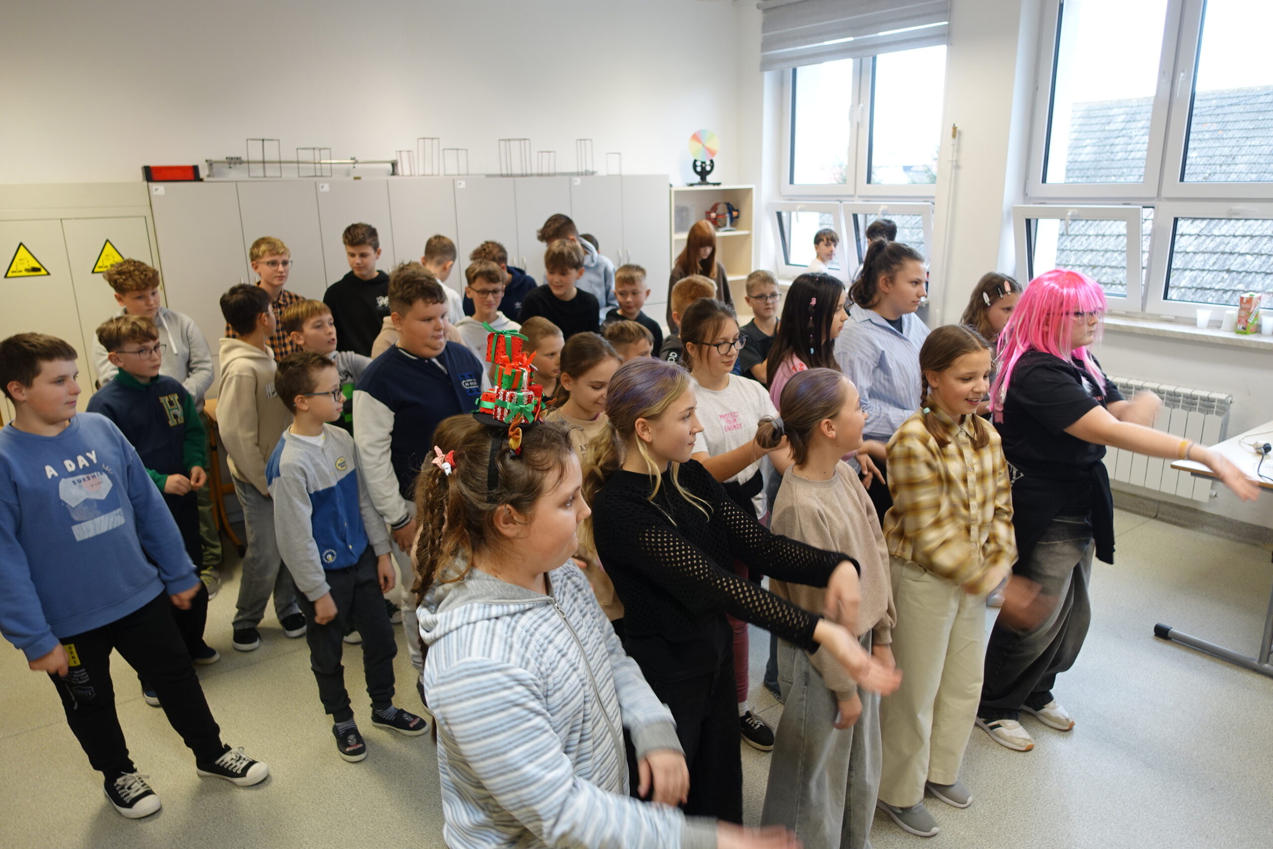 Tego samego dnia również uczniowie klas IV-VIII udowodnili, że Andrzejki to idealna okazja do połączenia dobrej zabawy, intelektualnej rywalizacji i integracji! Impreza andrzejkowa była pełna nietypowych wyzwań i energetycznych tańców. Na początek chętni uczniowie wzięli udział w konkursie zwariowanych fryzur. Gratulacje dla odważnych! Z kolei podczas turnieju wiedzy nietypowej uczniowie wykazali się bystrością umysłu i duchem rywalizacji zgodnie z zasadami fair play. Po emocjonalnym wysiłku umysłowym przyszedł czas na rozładowanie energii. Uczniowie z entuzjazmem ruszyli do wspólnych zabaw ruchowych i tanecznych! Zwieńczeniem udanej zabawy był zasłużony poczęstunek. Panowała swobodna i radosna atmosfera, która jest najlepszym dowodem na to, że wspólne świętowanie i małe sukcesy budują silną i zgraną społeczność szkolną.