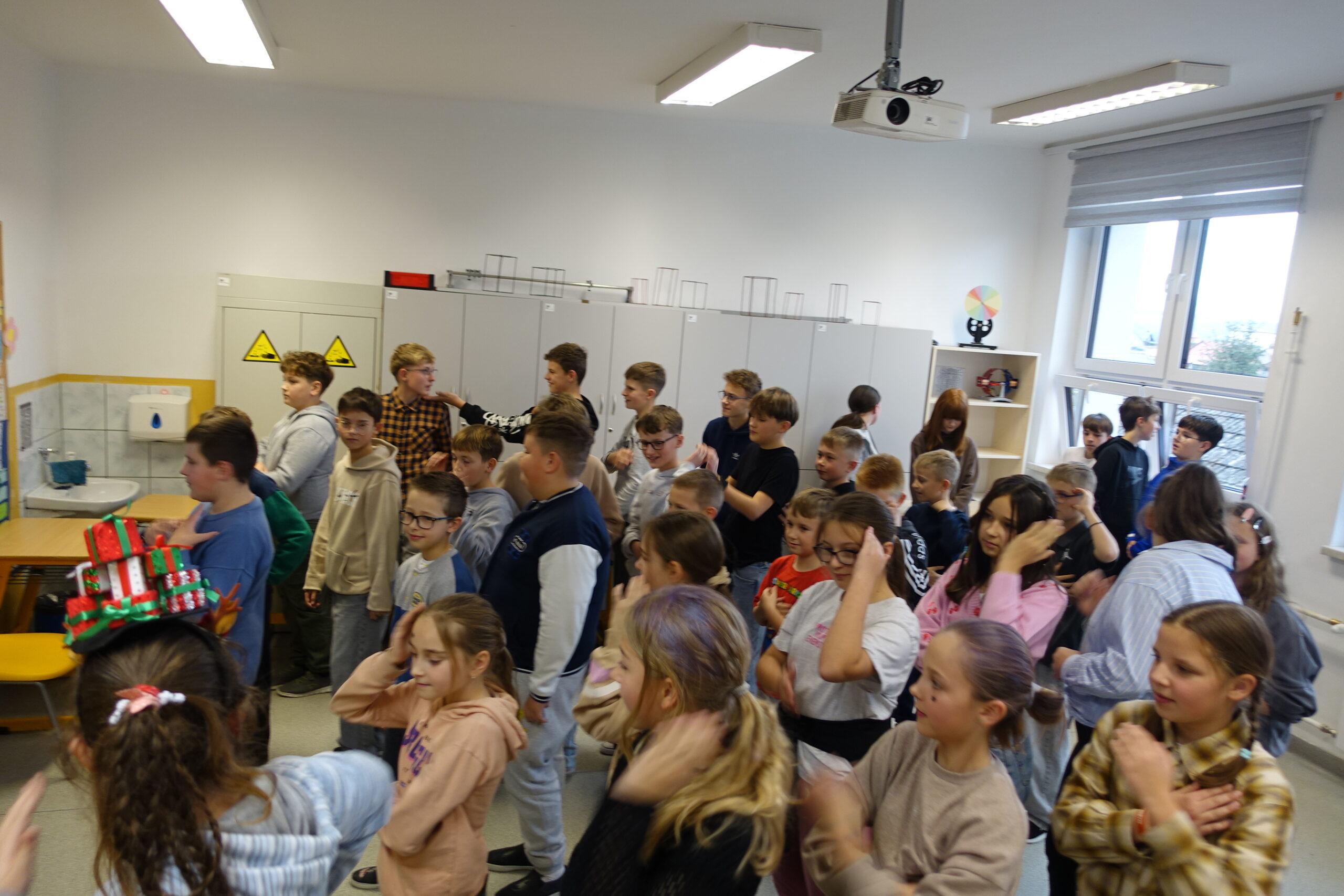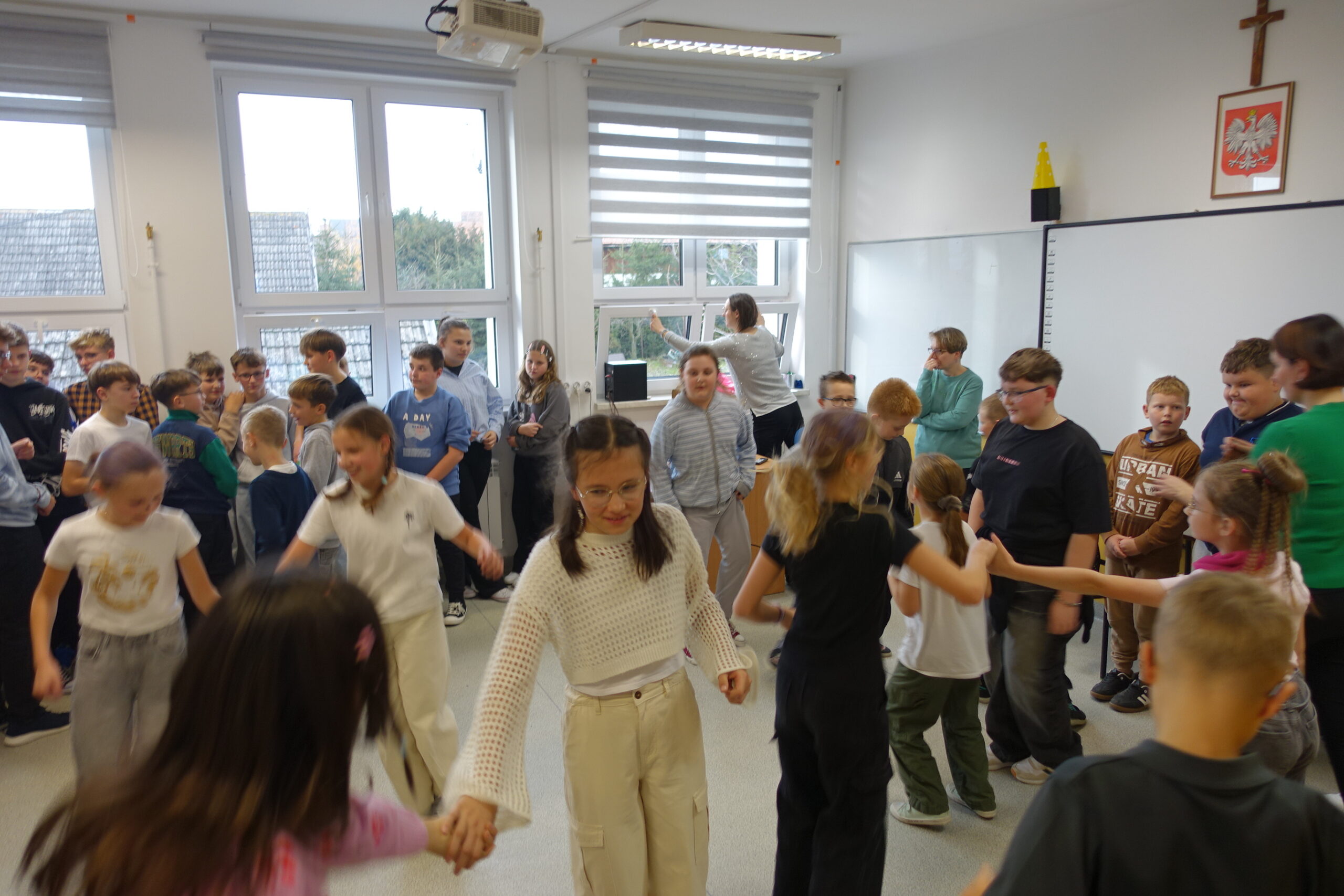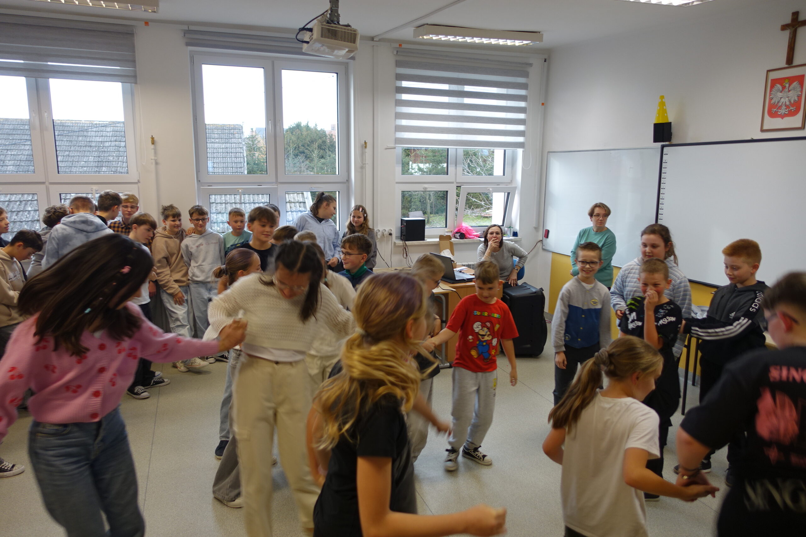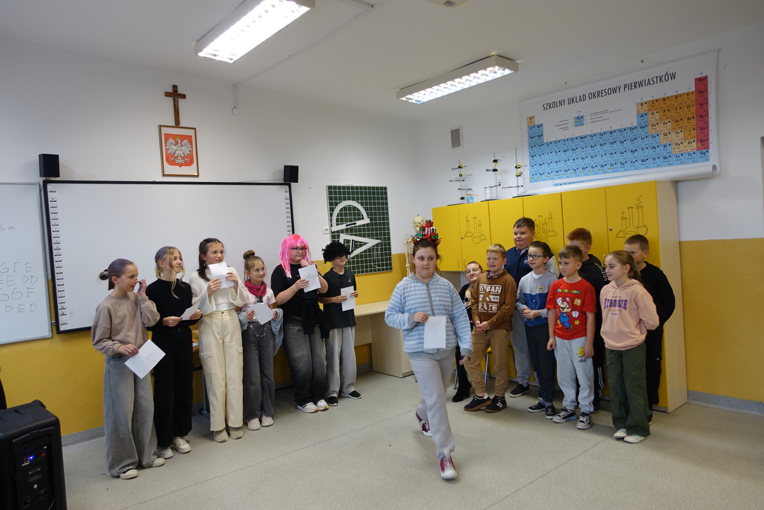 Tego samego dnia również uczniowie klas IV-VIII udowodnili, że Andrzejki to idealna okazja do połączenia dobrej zabawy, intelektualnej rywalizacji i integracji! Impreza andrzejkowa była pełna nietypowych wyzwań i energetycznych tańców. Na początek chętni uczniowie wzięli udział w konkursie zwariowanych fryzur. Gratulacje dla odważnych! Z kolei podczas turnieju wiedzy nietypowej uczniowie wykazali się bystrością umysłu i duchem rywalizacji zgodnie z zasadami fair play. Po emocjonalnym wysiłku umysłowym przyszedł czas na rozładowanie energii. Uczniowie z entuzjazmem ruszyli do wspólnych zabaw ruchowych i tanecznych! Zwieńczeniem udanej zabawy był zasłużony poczęstunek. Panowała swobodna i radosna atmosfera, która jest najlepszym dowodem na to, że wspólne świętowanie i małe sukcesy budują silną i zgraną społeczność szkolną.