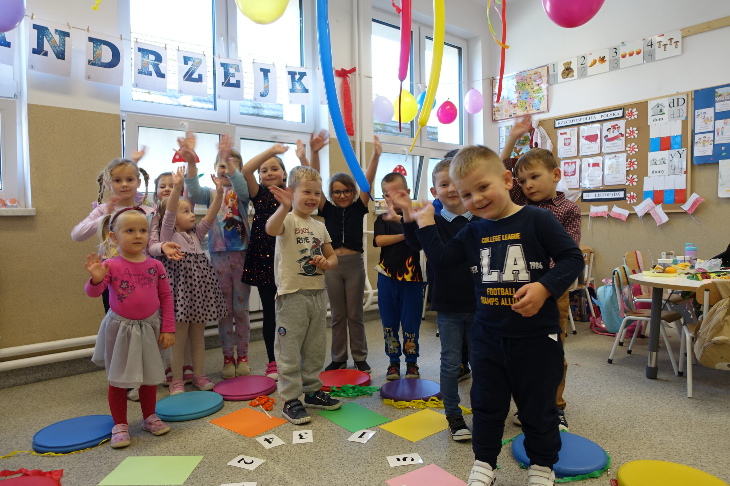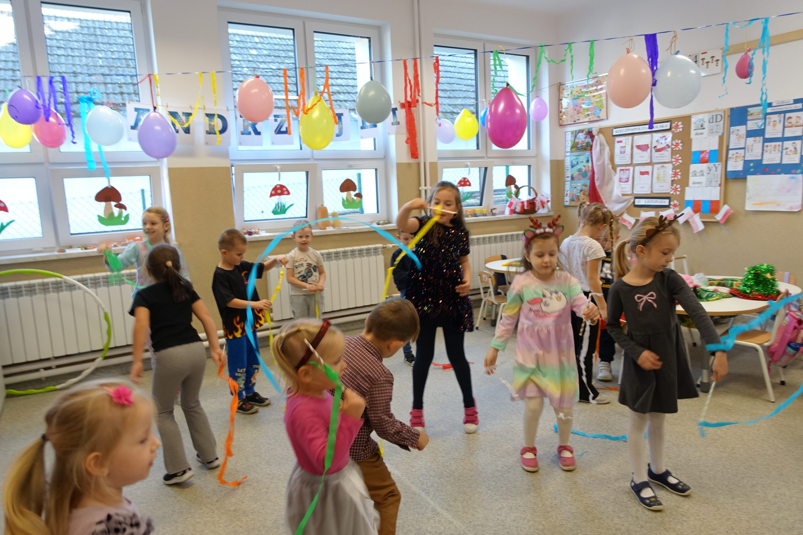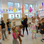 Dnia 20 listopada 2025 roku odbyła się zabawa dla dzieci z oddziału przedszkolnego. Przedszkolaki bawiły się i tańczyły przy ulubionych dziecięcych utworach muzycznych. Malowały balony, rozwiązywały rebusy, zagadki i quizy. Uczestniczyły w zabawach ruchowych z hula- hop, wstążkami, liczbami i kolorami. Rodzice przygotowali różnorodne przekąski i słodycze, które dzieciom bardzo smakowały. Podczas zabawy panowała miła i przyjazna atmosfera. Dzień ten dostarczył przedszkolakom wielu przeżyć i emocji, a przede wszystkim stał się okazją do rozbudzenia dziecięcej ciekawości.