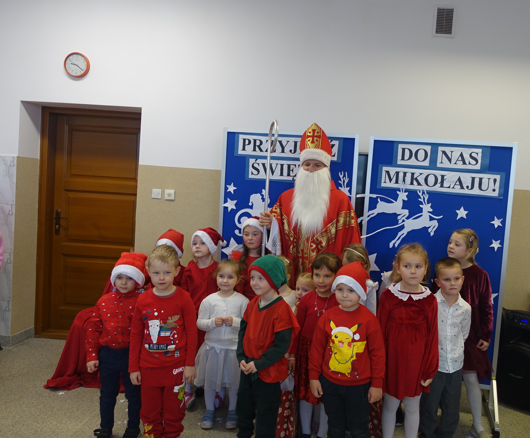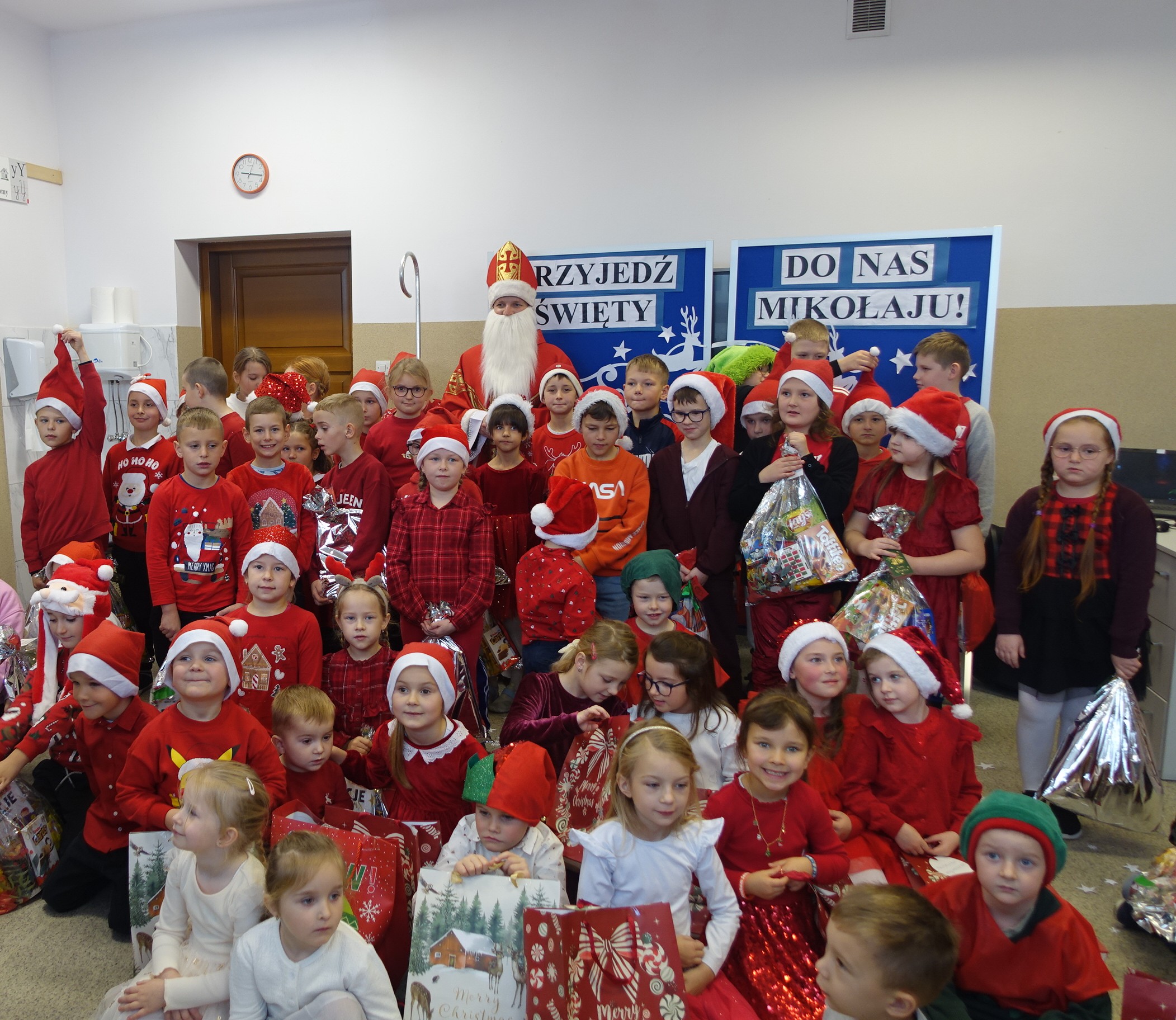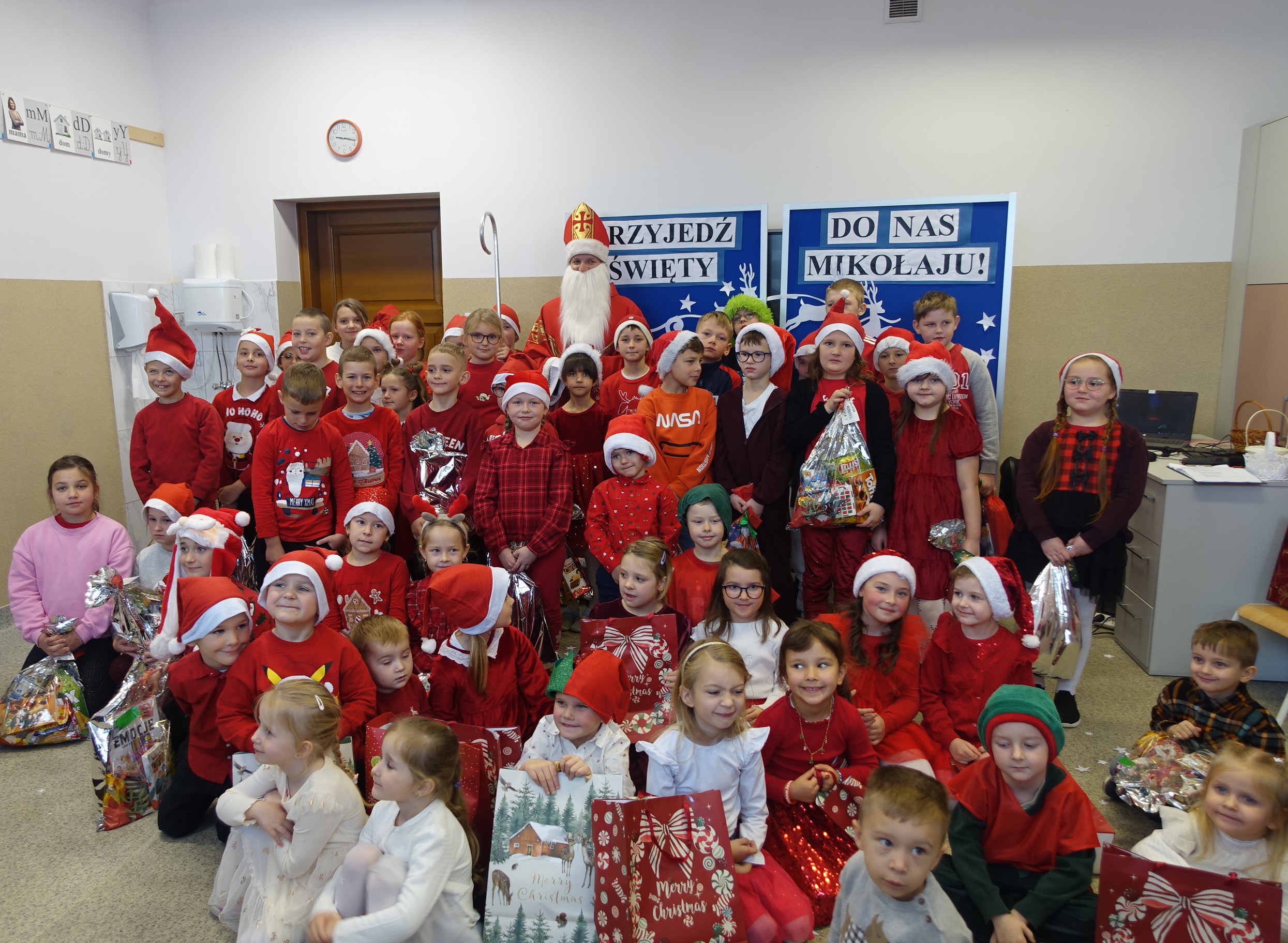 Dzieci z oddziału przedszkolnego i oddziałów I – III 4 grudnia 2025 roku miały okazję przeżyć niezapomniane chwile podczas spotkania ze Świętym Mikołajem. Uroczystość rozpoczęła się przedstawieniem: „Przyjedź do nas Święty Mikołaju” przygotowanym przez dzieci z oddziału przedszkolnego. Dzieci przywitały Mikołaja wierszykami, piosenkami i tańcem. Mikołaj wręczył każdemu dziecku prezent, a dzieci miały okazję porozmawiać z nim i opowiedzieć o swoich marzeniach. Po wykonaniu pamiątkowych zdjęć dzieci podziękowały Mikołajowi i ze śpiewem pożegnały zacnego gościa.