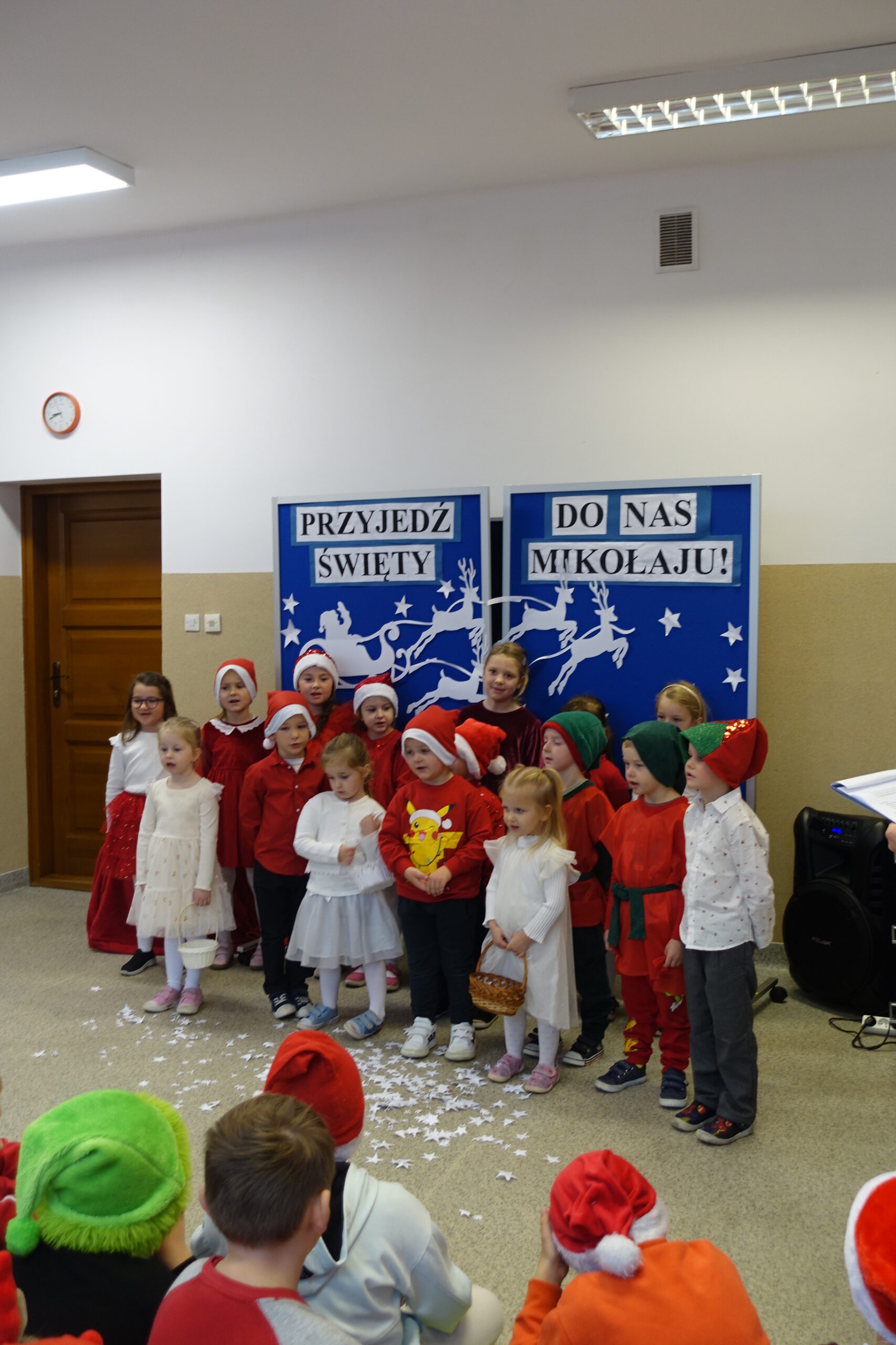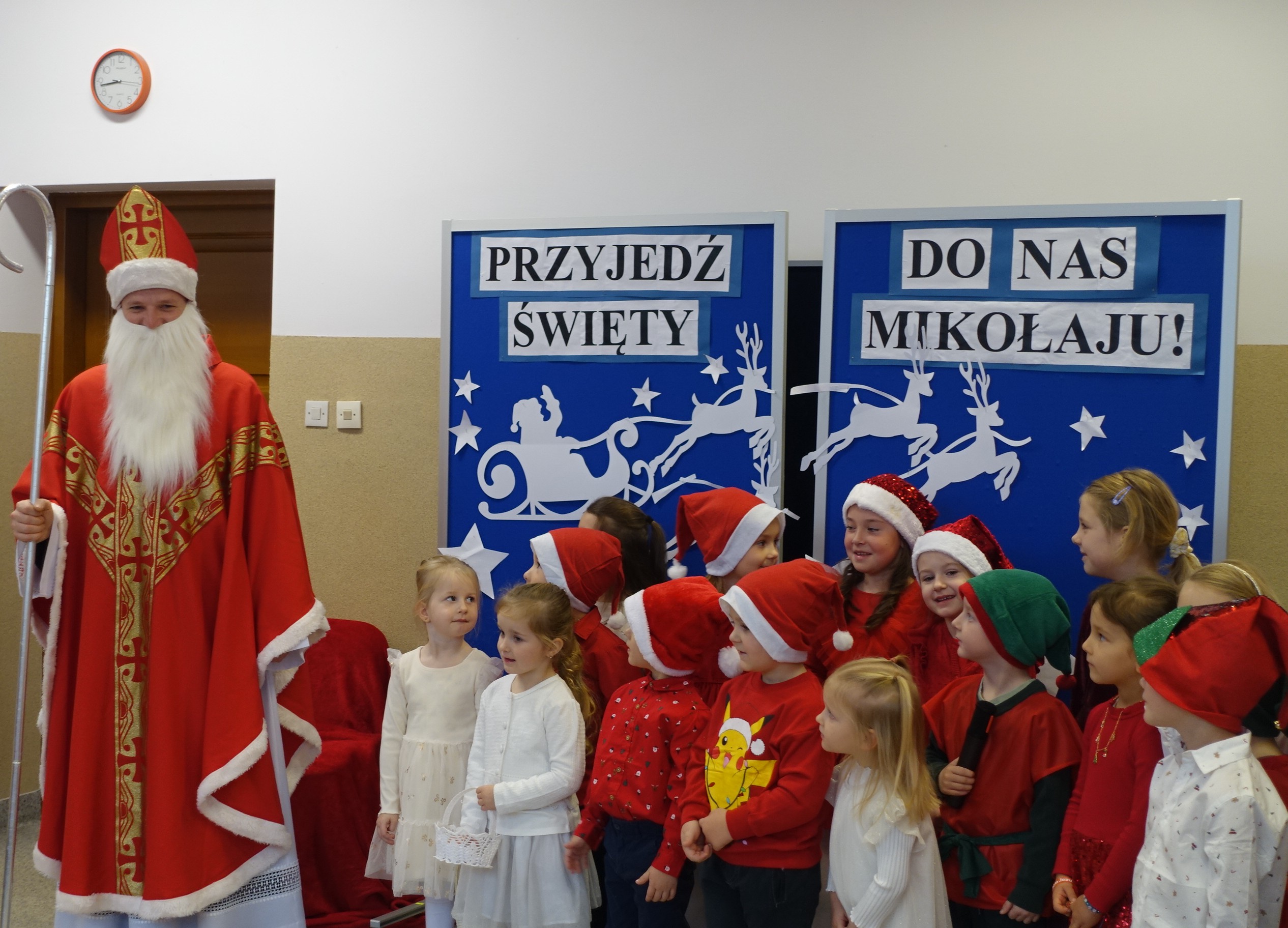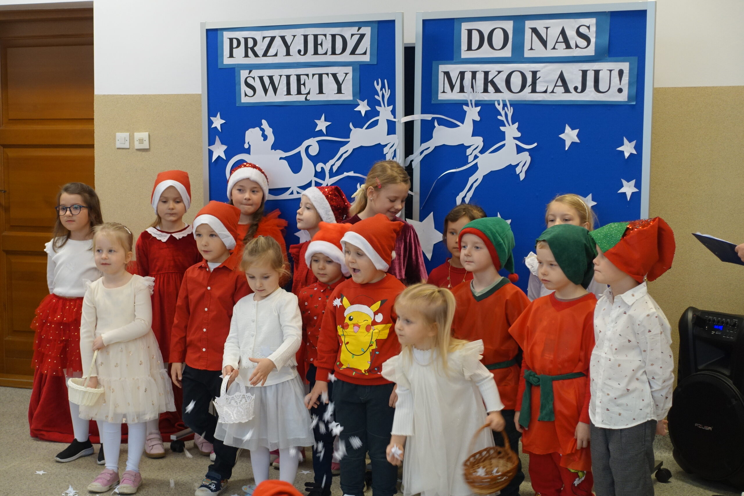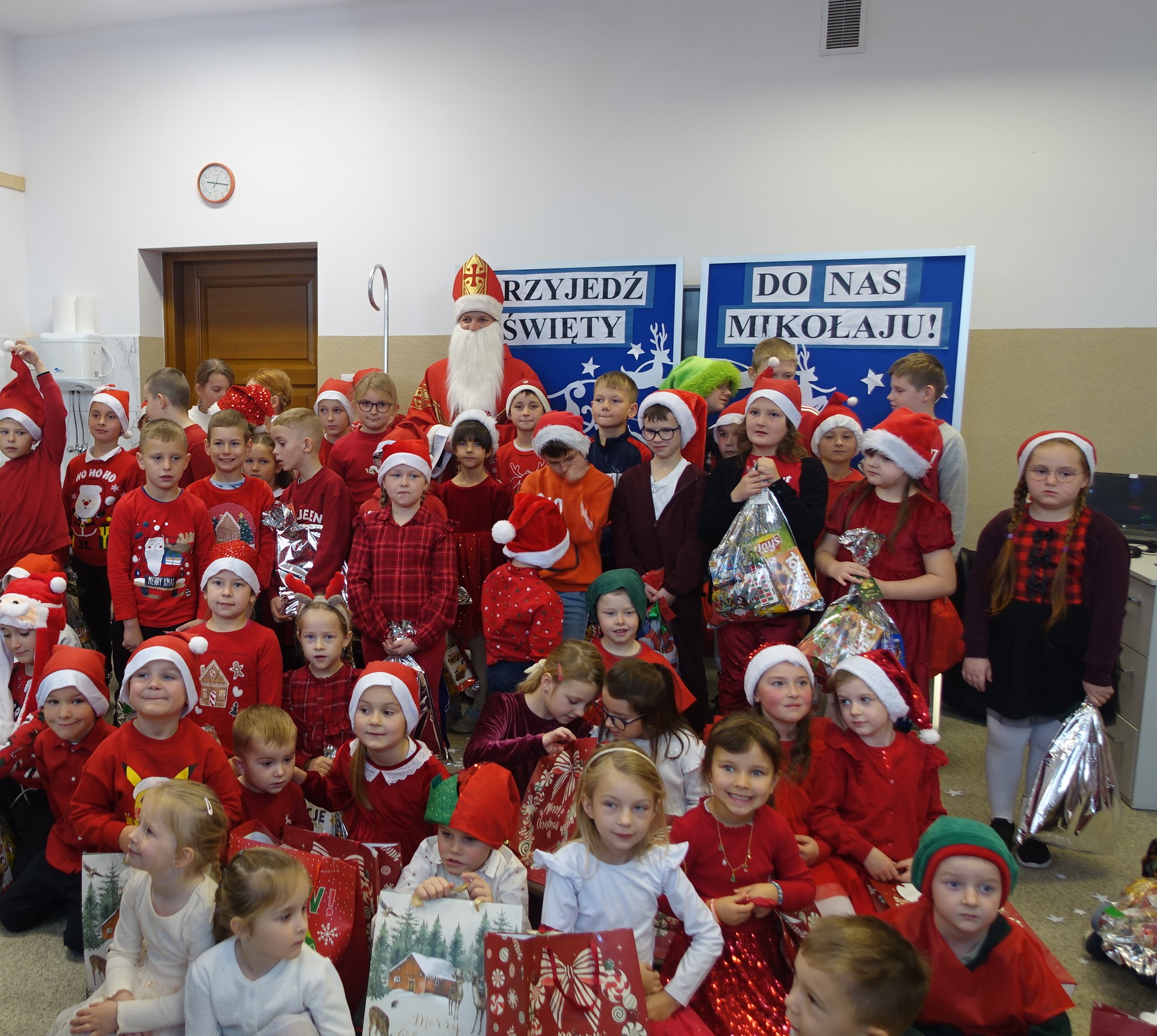 Dzieci z oddziału przedszkolnego i oddziałów I – III 4 grudnia 2025 roku miały okazję przeżyć niezapomniane chwile podczas spotkania ze Świętym Mikołajem. Uroczystość rozpoczęła się przedstawieniem: „Przyjedź do nas Święty Mikołaju” przygotowanym przez dzieci z oddziału przedszkolnego. Dzieci przywitały Mikołaja wierszykami, piosenkami i tańcem. Mikołaj wręczył każdemu dziecku prezent, a dzieci miały okazję porozmawiać z nim i opowiedzieć o swoich marzeniach. Po wykonaniu pamiątkowych zdjęć dzieci podziękowały Mikołajowi i ze śpiewem pożegnały zacnego gościa.