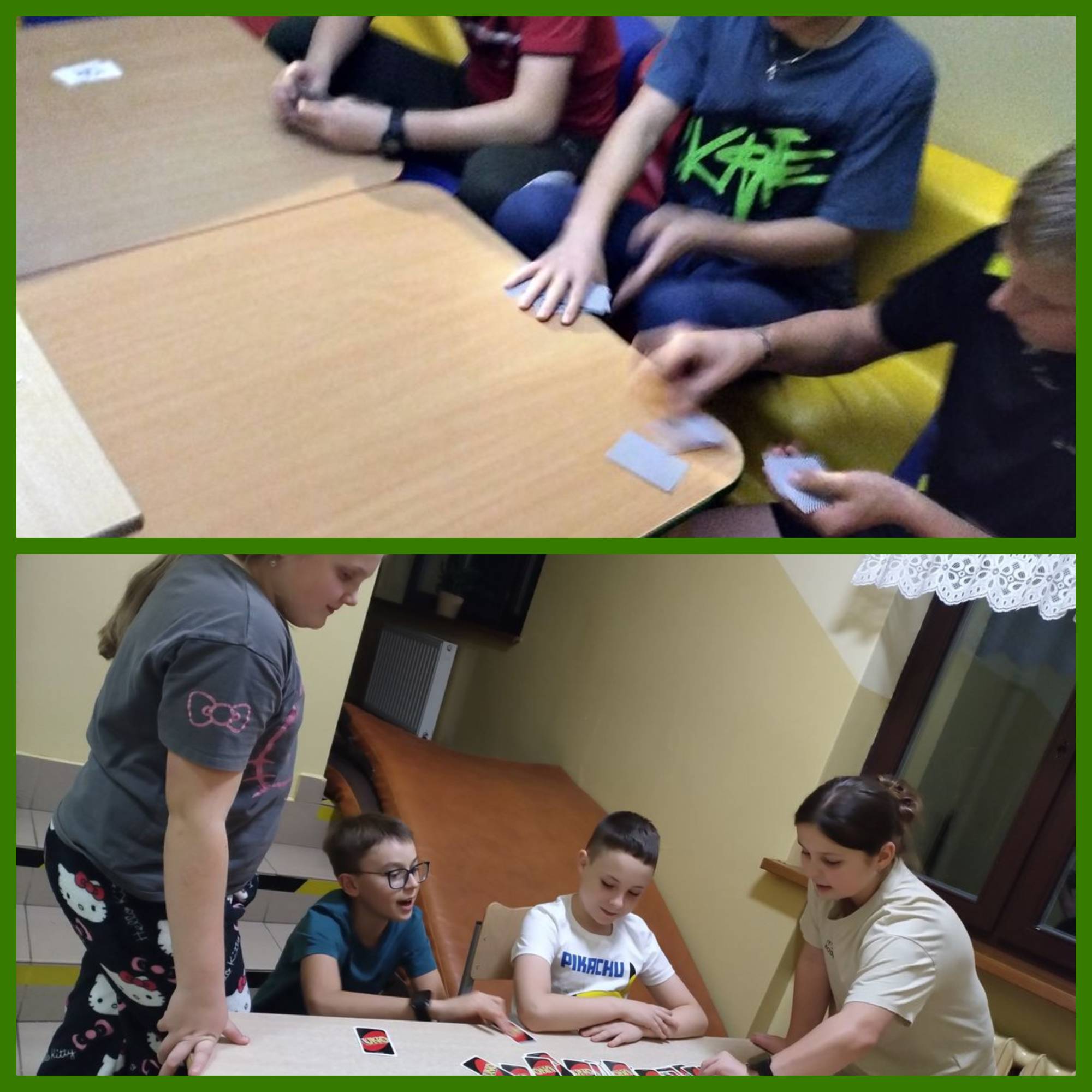 O godzinie 20:00 przyjechała zamówiona pizza, która sprawiła uczniom ogromną radość i dodała energii do kolejnych aktywności. Po kolacji rozpoczęła się seria różnorodnych gier i zabaw integracyjnych, które pozwoliły lepiej się poznać i wspólnie spędzić czas w wesołej atmosferze.