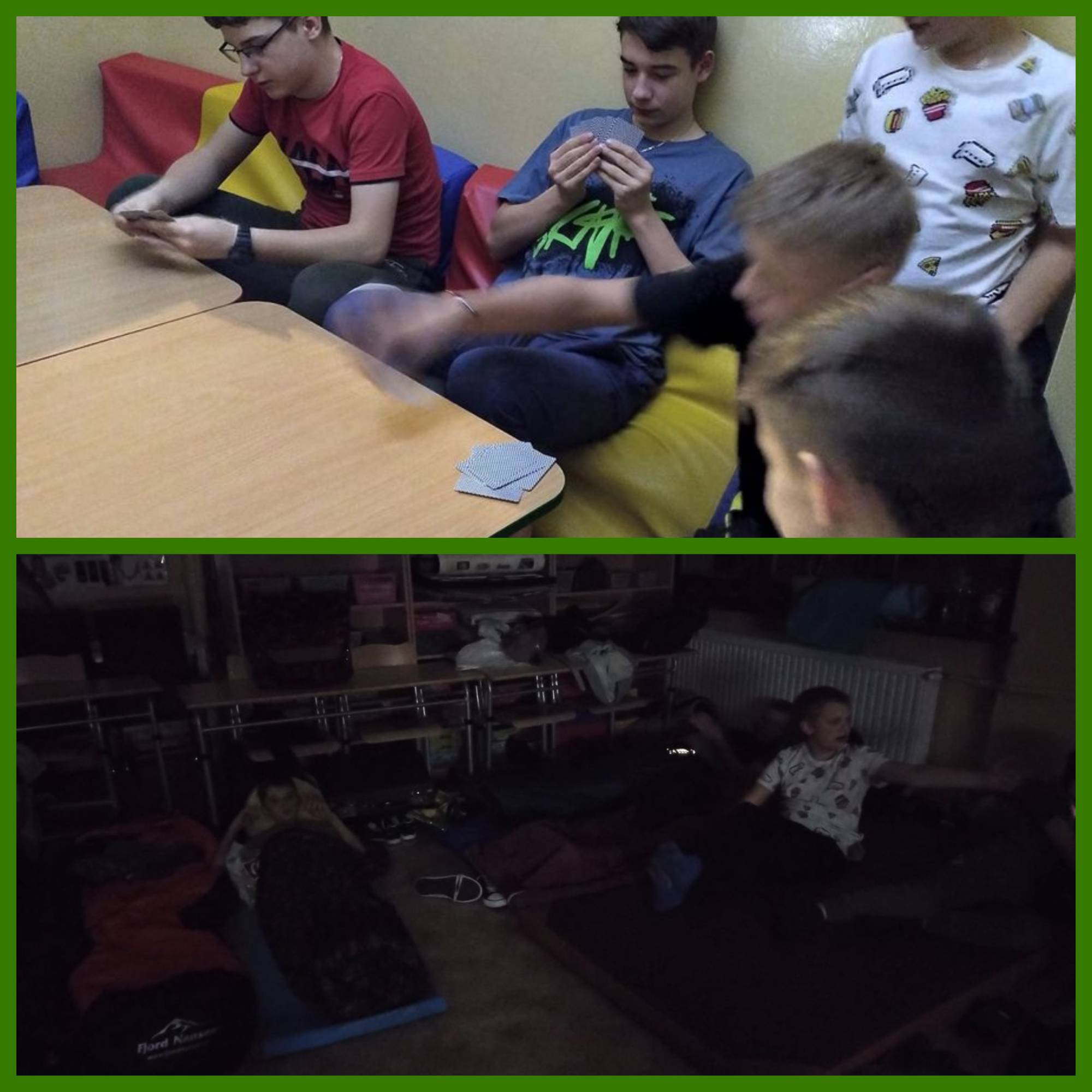 W nocy z 28 na 29 listopada w naszej szkole odbyło się nocowanie uczniów klasy V i VII. W wydarzeniu uczestniczyli chętni uczniowie, którzy z entuzjazmem przystąpili do wspólnej zabawy i integracji.