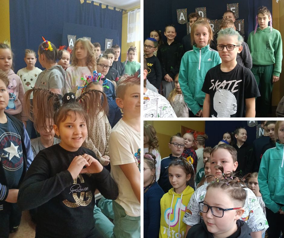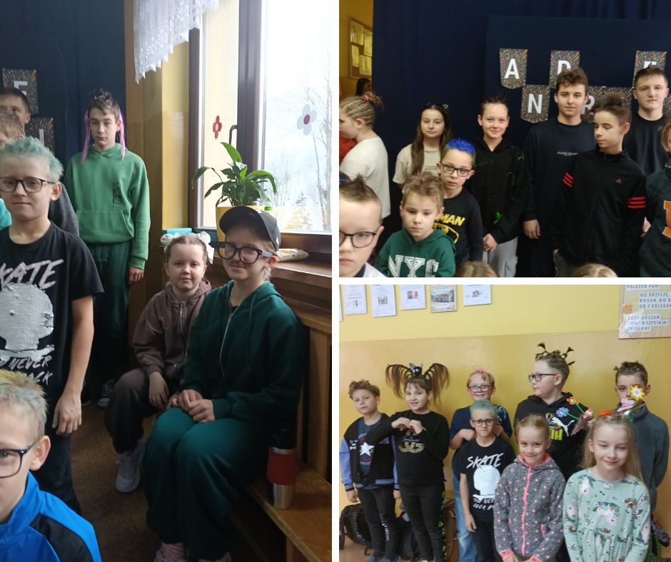 Dodatkową atrakcją tego dnia było to, że wszyscy chętni uczniowie mogli przyjść do szkoły z szaloną fryzurą na głowie – w szkole zapanował więc faktycznie andrzejkowy i fryzurowy zawrót głowy J Oj, działo się na głowach naszych uczniów! Dziękuję wszystkim, którzy przyjęli zaproszenie do zabawy i zaszaleli z fryzurą J