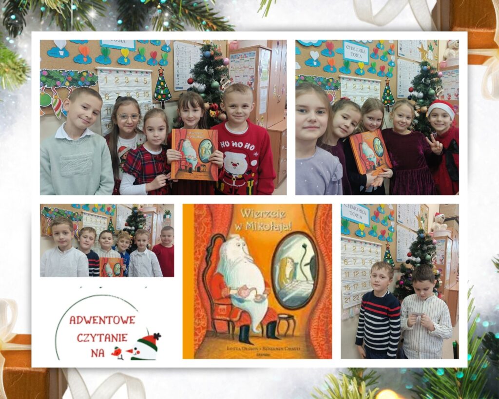 Adwent rozpoczął się od klasowego kalendarza adwentowego, który każdego dnia dostarczał uczniom drobnych zadań, niespodzianek i powodów do uśmiechu. Równolegle dzieci, już po raz drugi, włączyły się w Ogólnopolską Akcję Czytelniczą „Adwentowe Czytanie na święta”. Przez cały okres adwentu uczniowie z uwagą i zaangażowaniem czytali książkę „Wierzcie w Mikołaja”, rozwijając nie tylko umiejętności czytelnicze, ale także wrażliwość i wyobraźnię.