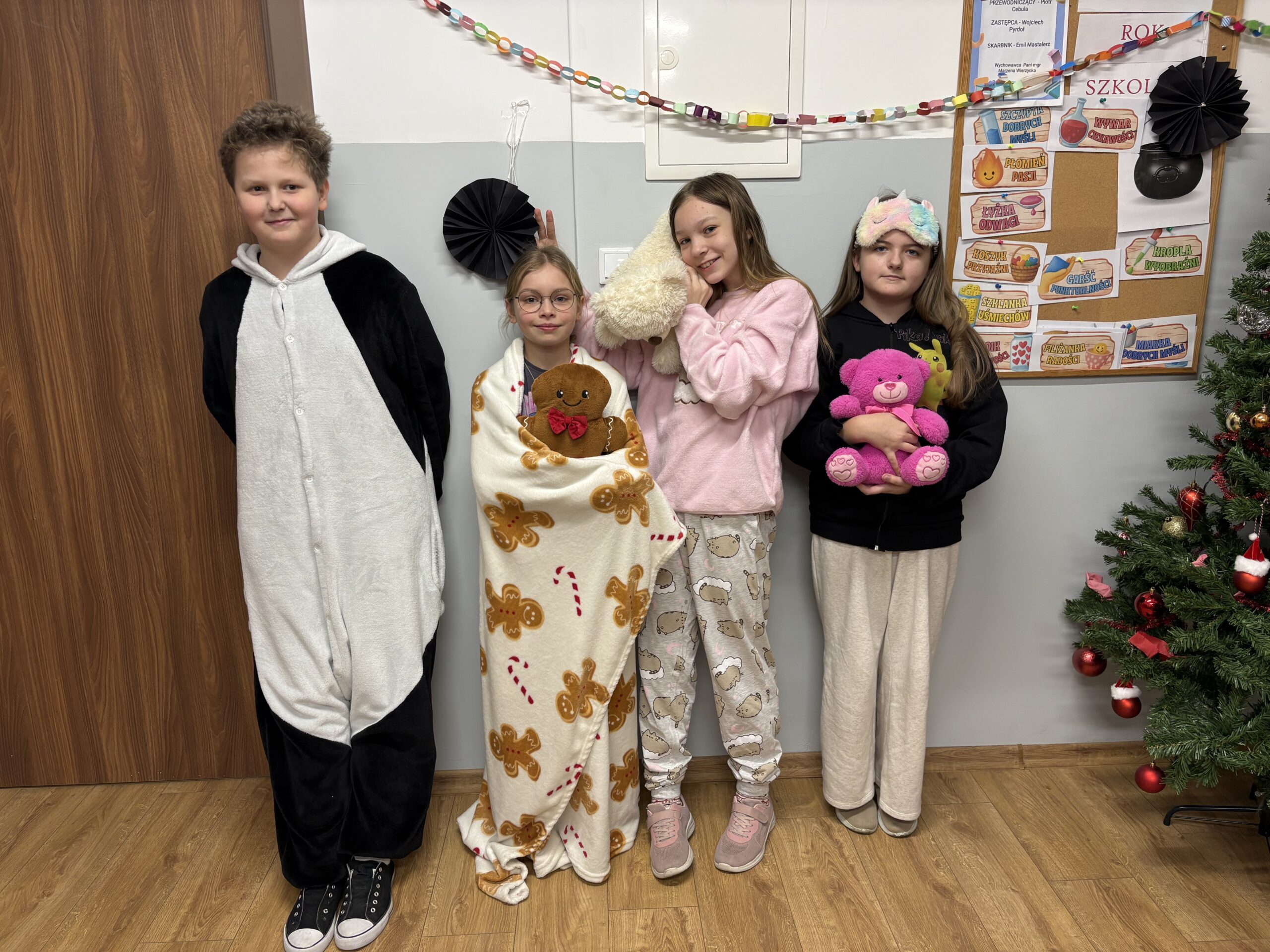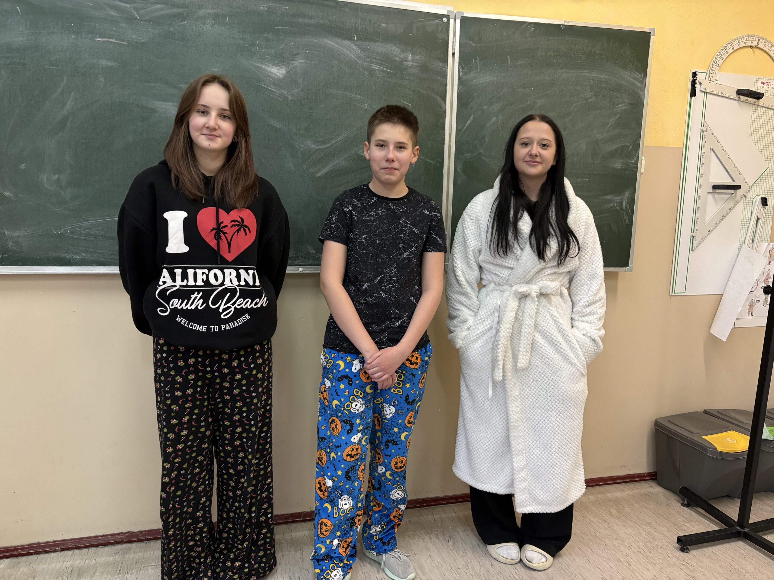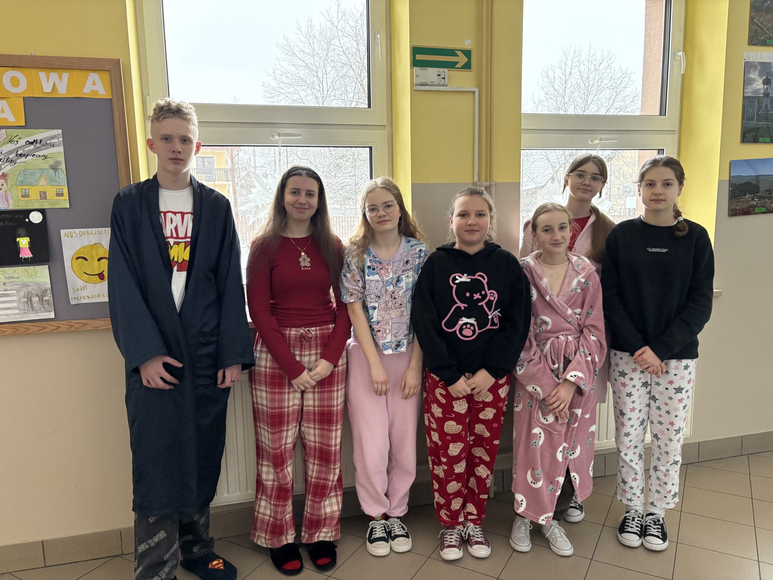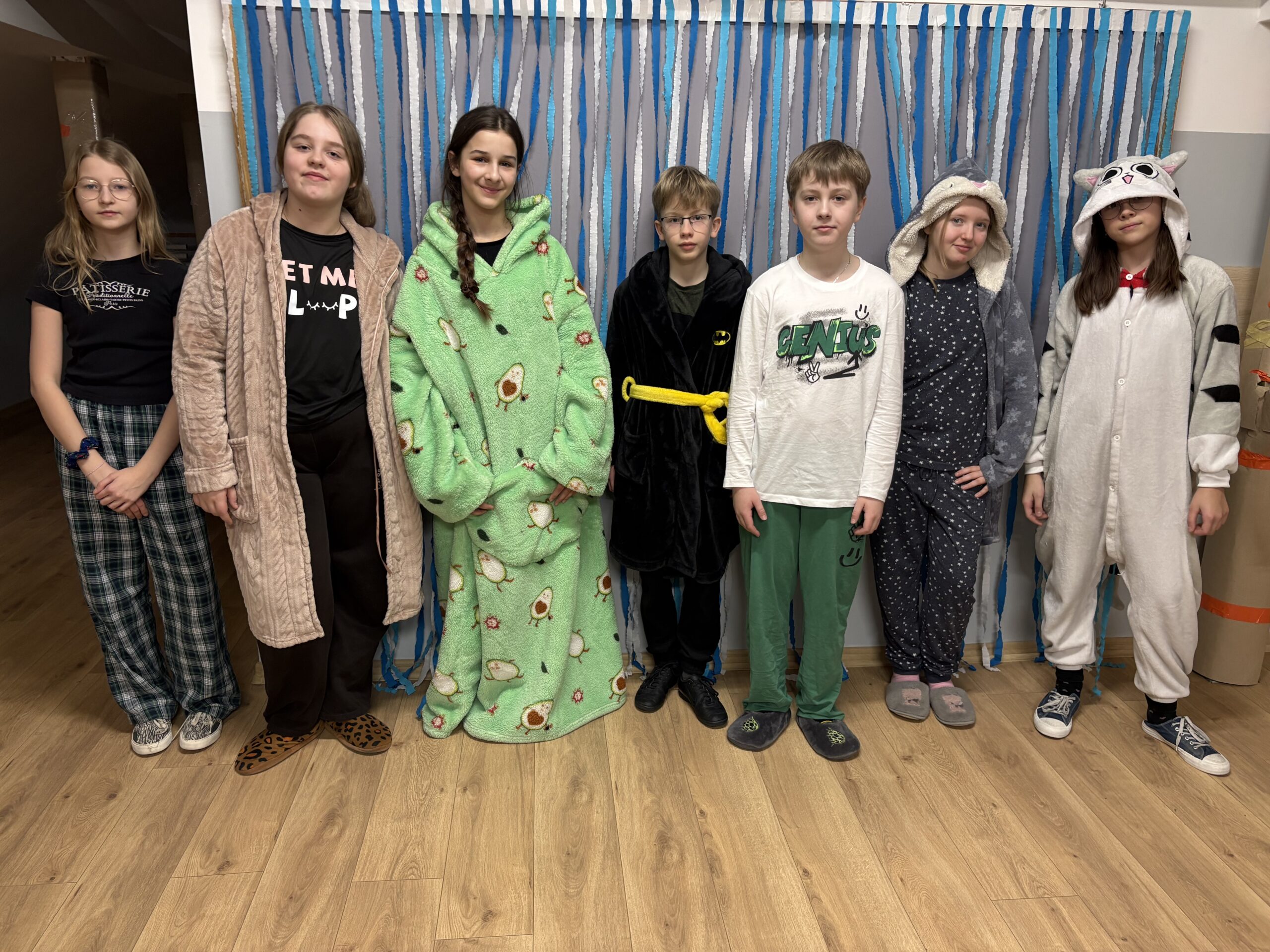 29 stycznia w naszej szkole odbył się Dzień Piżamy i Szlafroka, który dostarczył wszystkim wielu uśmiechów i pozytywnej energii. Tego dnia uczniowie zamienili codzienne szkolne stroje na piżamy, szlafroki, kapcie oraz inne zabawne „nocne” stylizacje. Wydarzenie miało na celu integrację społeczności szkolnej oraz wprowadzenie luźniejszej, radosnej atmosfery w szkolne mury. Kreatywność uczestników przerosła oczekiwania, a wspólna zabawa sprawiła, że ten dzień na długo pozostanie w naszej pamięci.
