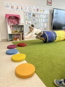 Poznały ciekawostki z życia kociaków, oglądały ilustracje z różnymi rasami, karmiły wygłodniałego szarego kocura rybkami oraz pokonywały koci tor przeszkód na czworakach.