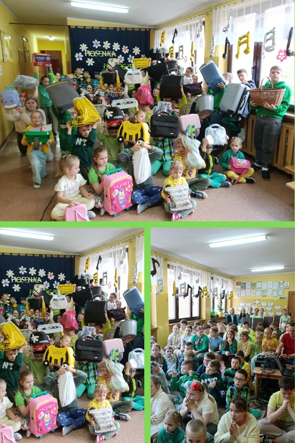 A skoro w kalendarzu i w przyrodzie wiosenne szaleństwo, to i na dobre zawitało ono do naszej szkoły, bowiem piątek 20 marca był DNIEM BEZ PLECAKA! Więc działo się! W miejsce tradycyjnych plecaków były … wózki dla lalek, lodówki turystyczne, dziecięce traktorki, szuflady, skrzynki na narzędzia czy wiaderka. Pomysłowość naszych uczniów robiła wrażenie!