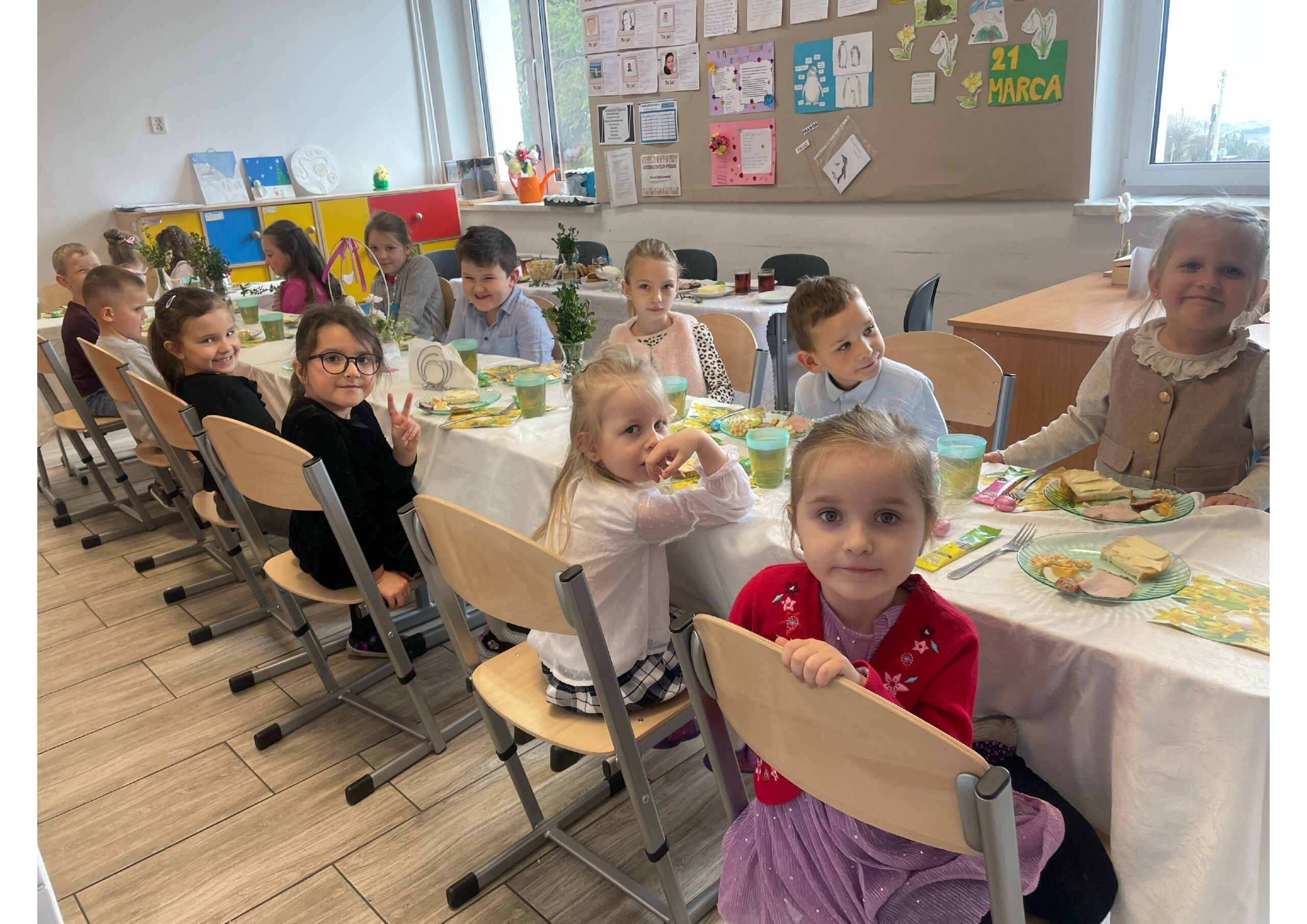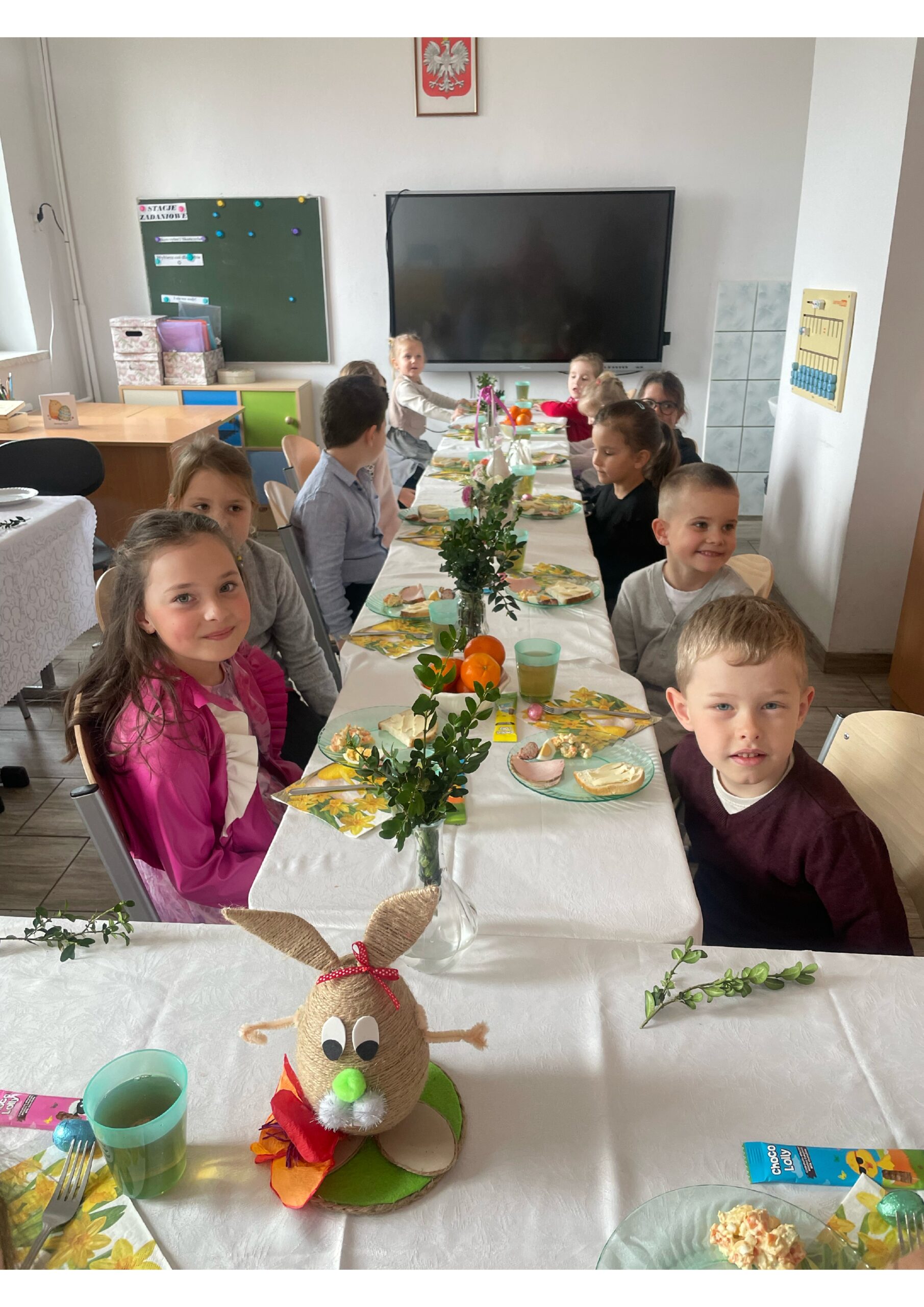 W dniu 1 kwietnia 2026 roku w oddziale przedszkolnym odbyło się uroczyste wielkanocne śniadanie przygotowane przez rodziców dzieci. Spotkanie miało na celu kultywowanie tradycji wielkanocnych oraz stworzenie dzieciom radosnej, świątecznej atmosfery.