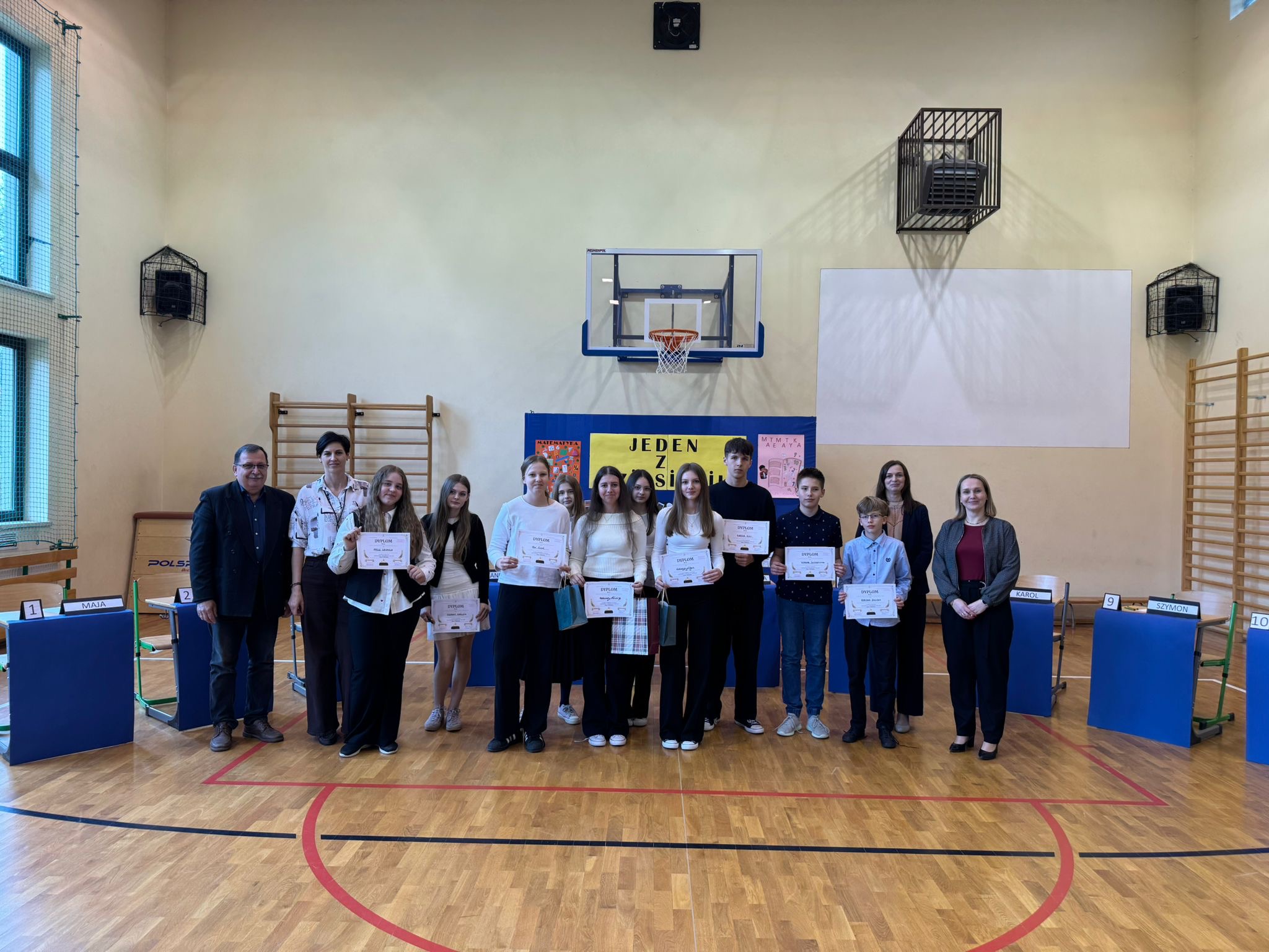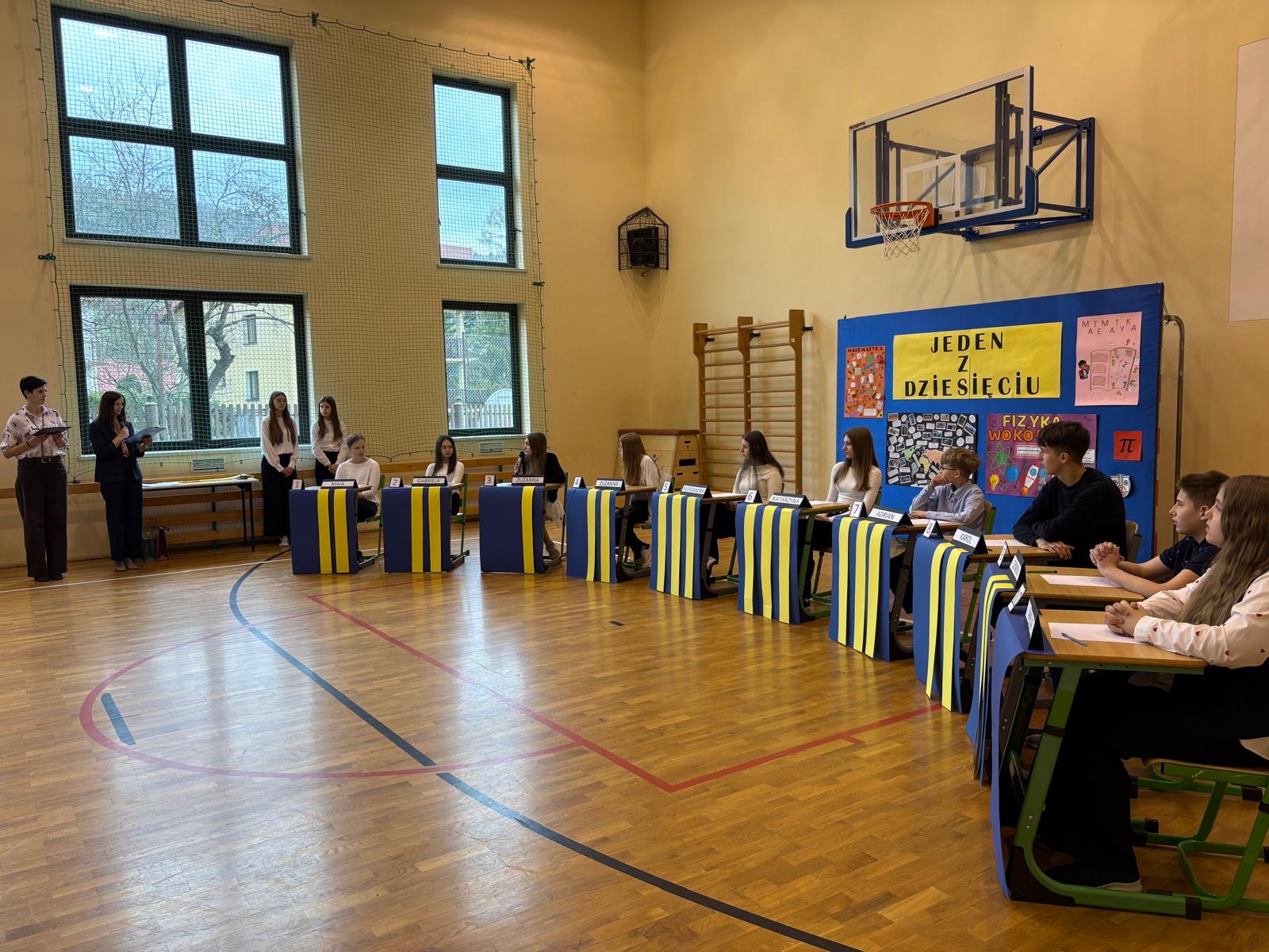 Do etapu finałowego zakwalifikowało się dziesięcioro uczniów. Uczestnicy odpowiadali na pytania sprawdzające wiedzę z matematyki, geografii, a także – po raz pierwszy- z fizyki.Uczestników gorąco wspierali kibice z klas III–VIII, tworząc świetną atmosferę!