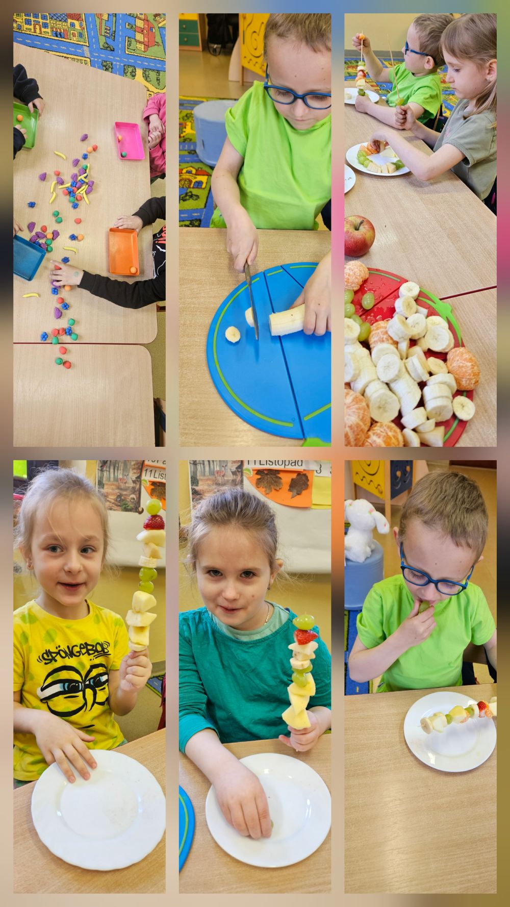 W dniach 6-10 kwietnia dzieci z grupy Sówek rozmawiały o tym, jak ważne jest zdrowe odżywianie. Dzieci poznały zasady zdrowej diety, uczyły się rozpoznawać warzywa i owoce oraz dowiedziały się, dlaczego warto jeść je każdego dnia. W tym czasie grupa Sówek realizowała również program „Skąd się biorą produkty ekologiczne”, którego celem jest zwiększenie świadomości i wiedzy dzieci na temat rolnictwa ekologicznego oraz kształtowanie właściwych nawyków żywieniowych. Nie zabrakło także działań praktycznych. Sówki przygotowały własne, kolorowe szaszłyki owocowe. Zakończeniem tygodnia był Dzień Zielony. Wszystkie dzieci przyszły ubrane na zielono i poszukiwały zielonych przedmiotów w sali. Następnie wybraliśmy się na spacer, aby odnaleźć jak najwięcej zieleni w najbliższym otoczeniu. Podczas wyprawy dzieci zobaczyły m. in.: