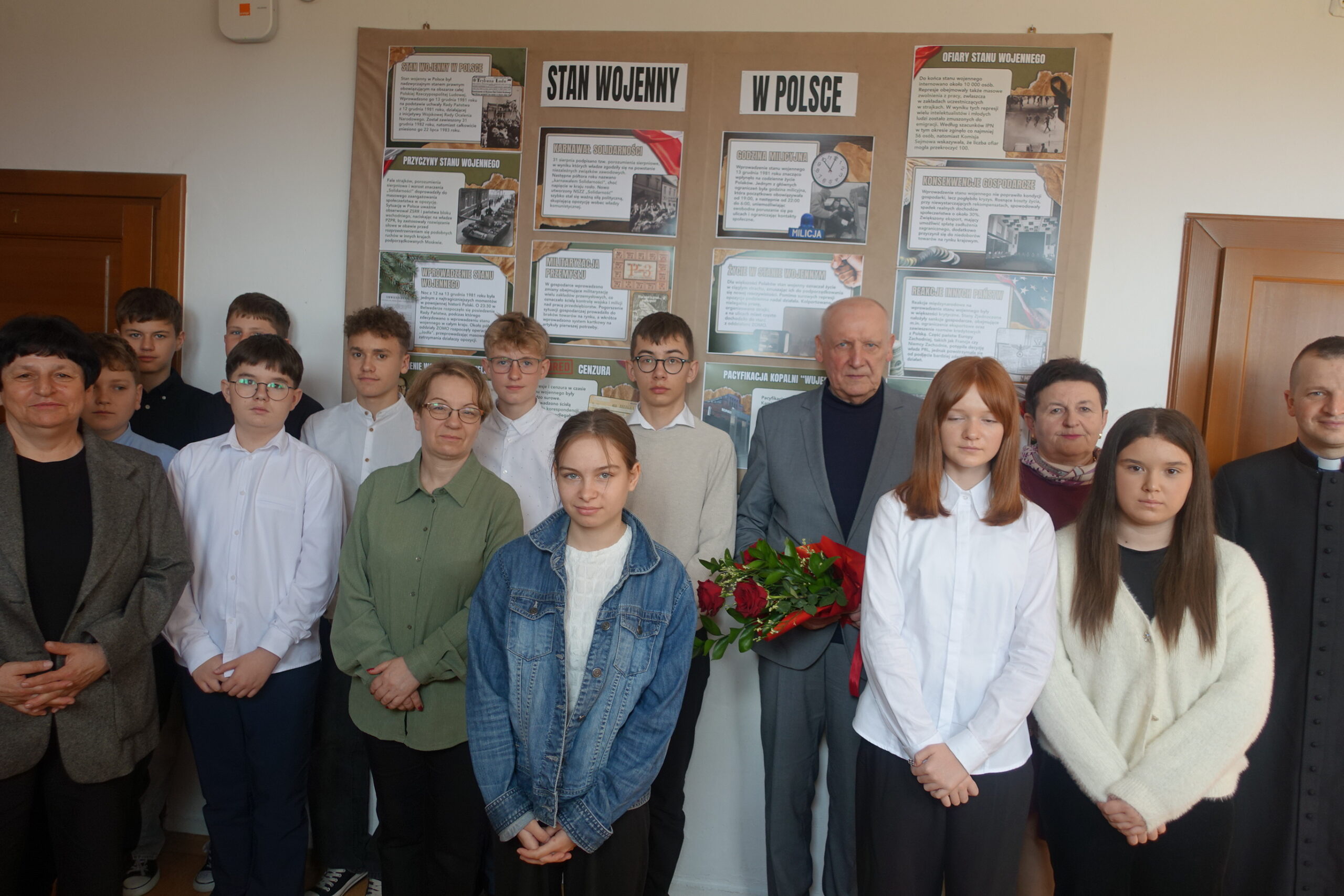 W dniu 17 kwietnia 2026 r. odbyło się wyjątkowe spotkanie z Andrzejem Szkaradkiem – twórcą NSZZ „Solidarność” na terenie Nowosądecczyzny. Wydarzenie było cenną lekcją historii dla uczniów klasy VII i VIII. Gość opowiedział o okolicznościach powstania „Solidarności”, a także przybliżył realia życia w czasie stanu wojennego. Jego wspomnienia i osobiste doświadczenia pozwoliły uczniom lepiej zrozumieć trudny okres w historii Polski oraz znaczenie walki o wolność i prawa obywatelskie. Uczniowie aktywnie włączyli się w przebieg spotkania, przygotowując prezentację poświęconą omawianej tematyce, która stanowiła doskonałe uzupełnienie wystąpienia gościa. Spotkanie było wartościową lekcją historii oraz okazją do bezpośredniego kontaktu ze świadkiem ważnych wydarzeń, które ukształtowały współczesną Polskę.