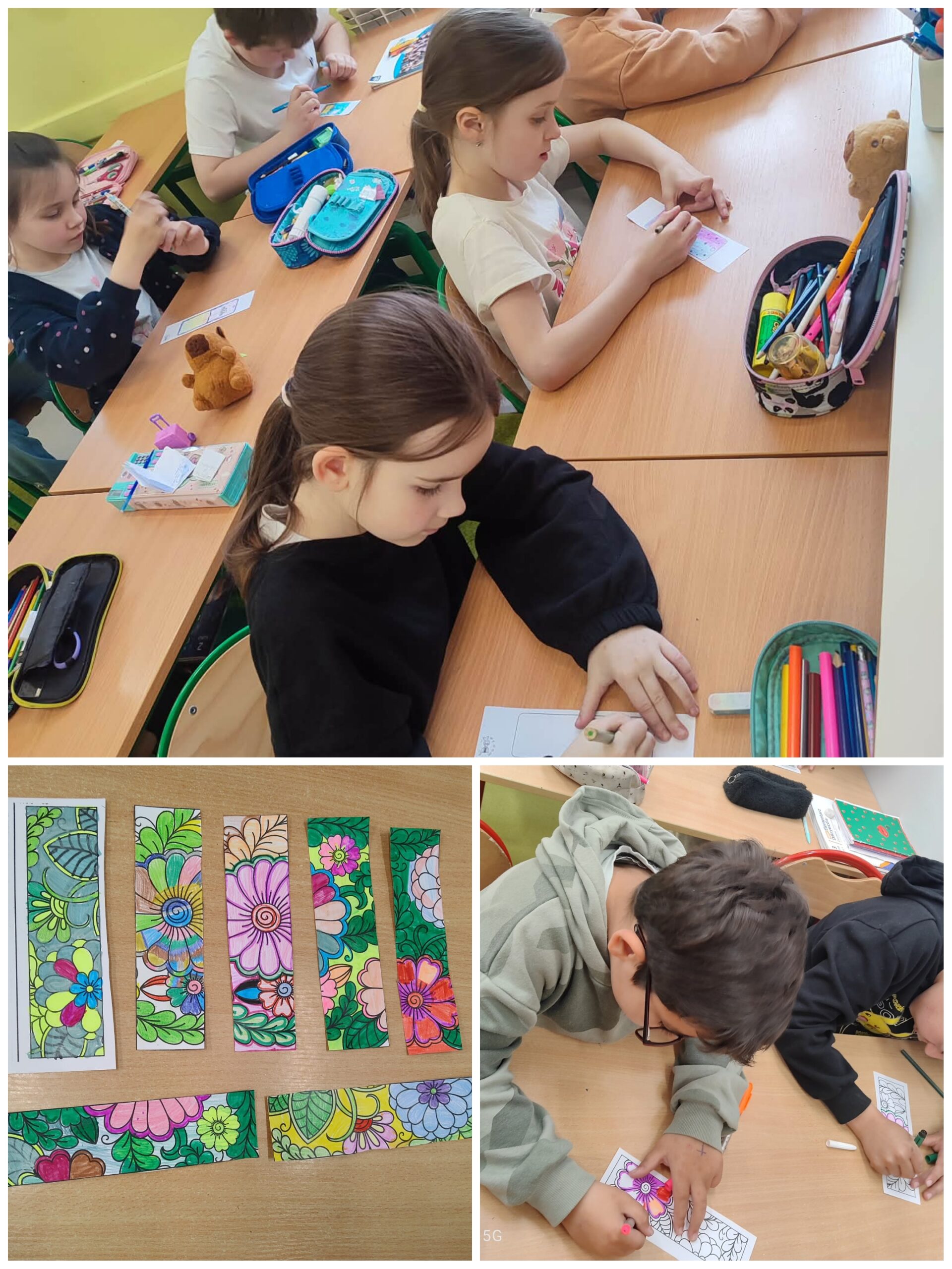 Uczniowie klas I–III wykonali również zakładki do książek, które zachęcają do codziennego czytania i dbania o książki.