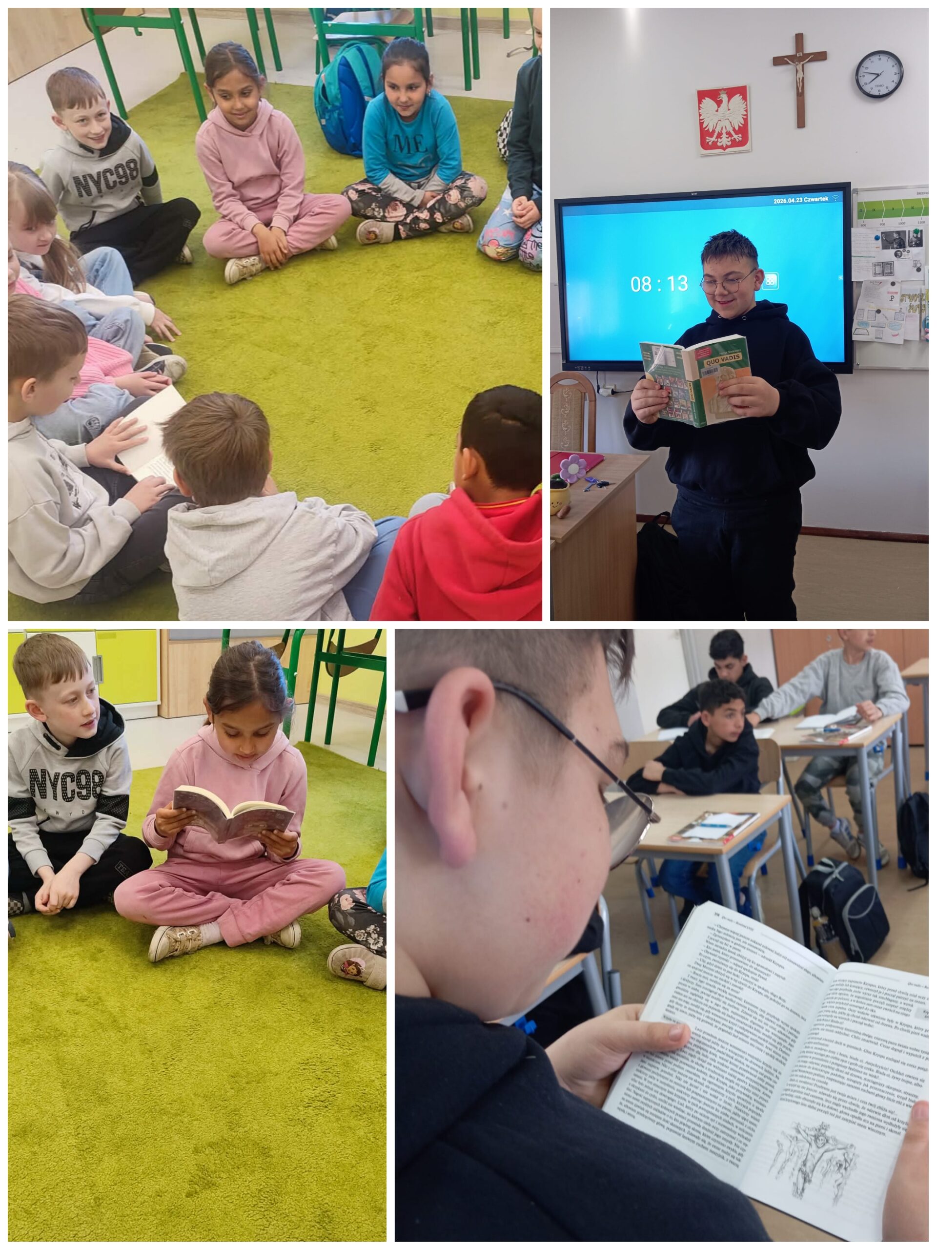 W ramach akcji czytelniczej wszyscy uczniowie naszej szkoły przez 10 minut na dwóch pierwszych lekcjach czytali wybrane fragmenty książek, co było okazją do wspólnego kontaktu z literaturą i promowania czytelnictwa.