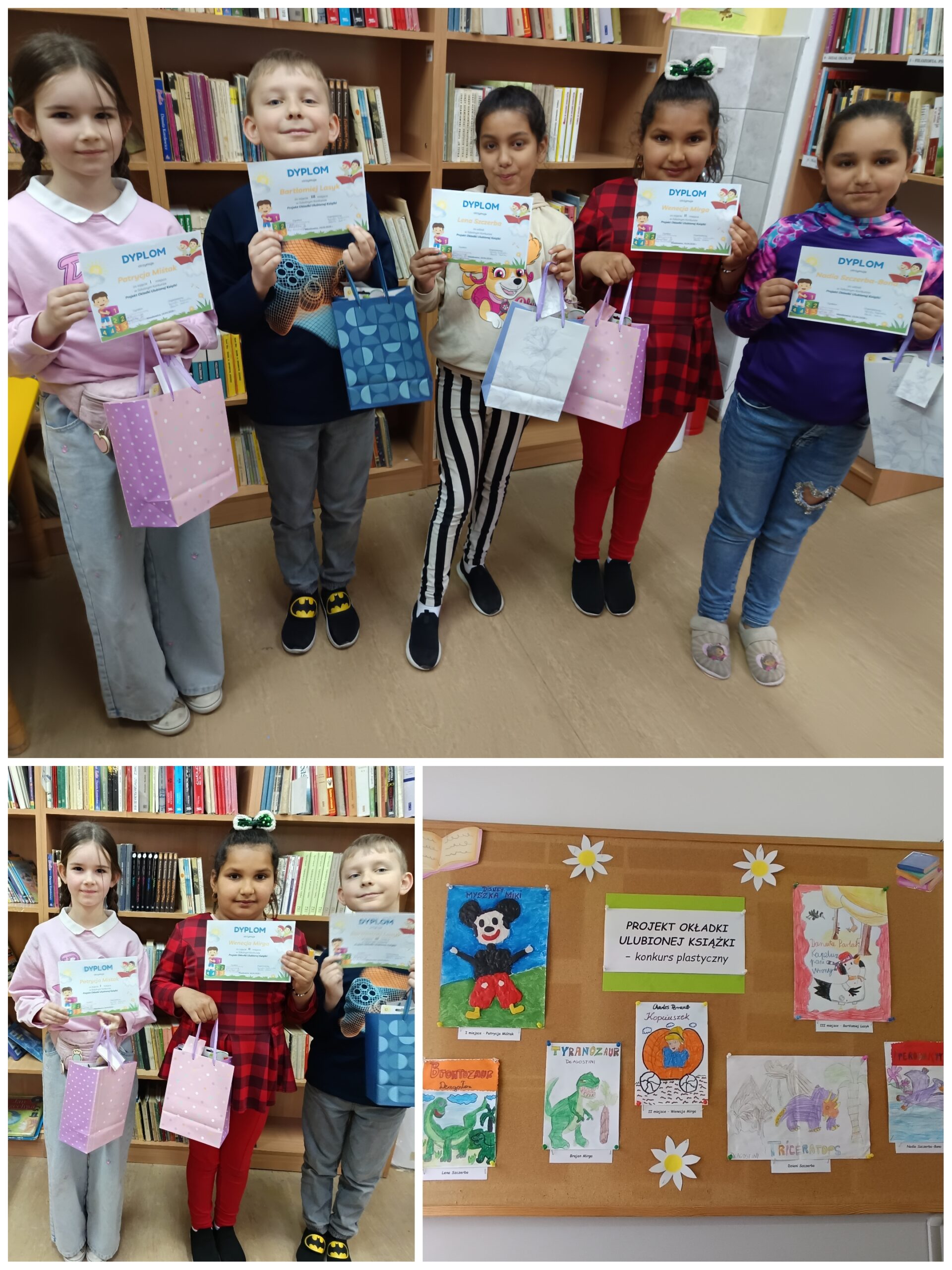 Jednym z nich był konkurs plastyczny dla klas I–III pt. „Projekt okładki ulubionej książki”. Uczniowie wykazali się dużą kreatywnością i pomysłowością, tworząc ciekawe i kolorowe prace. Komisja konkursowa wyłoniła zwycięzców: