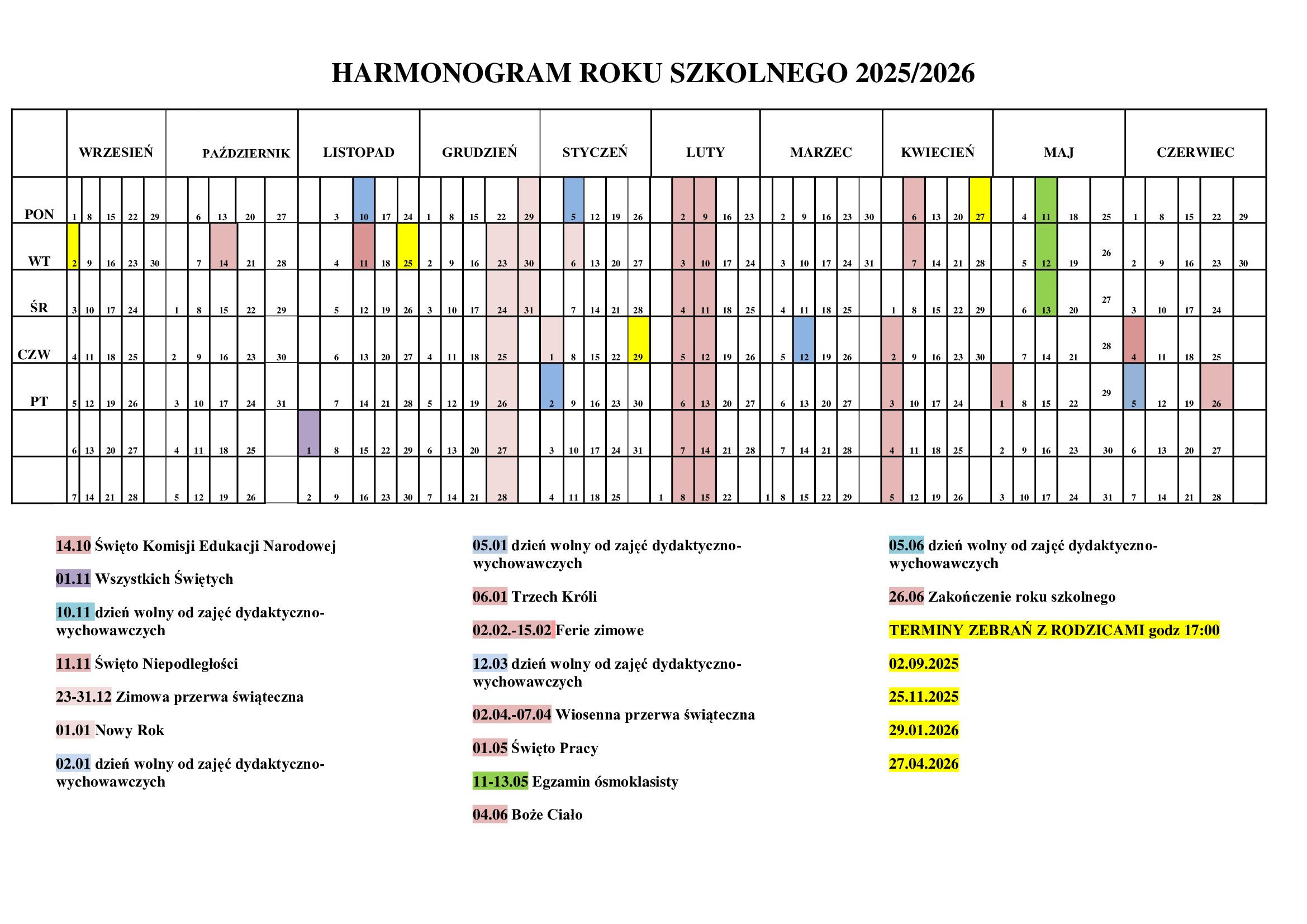 Kalendarz roku szkolnego 2025/2026